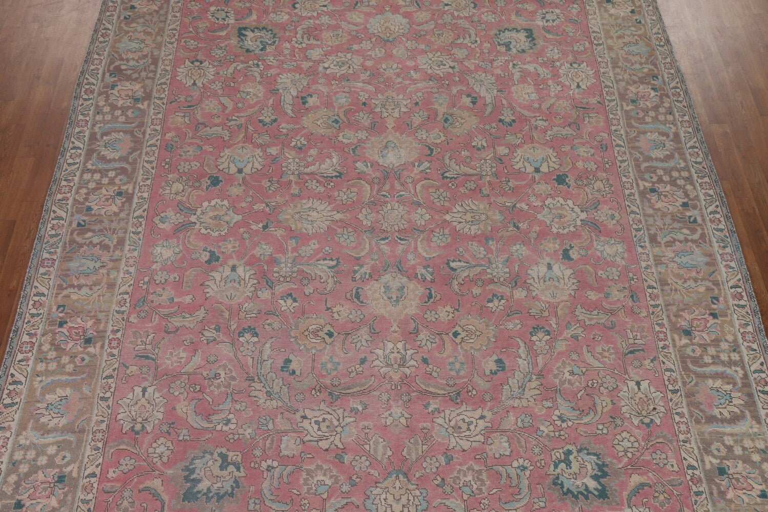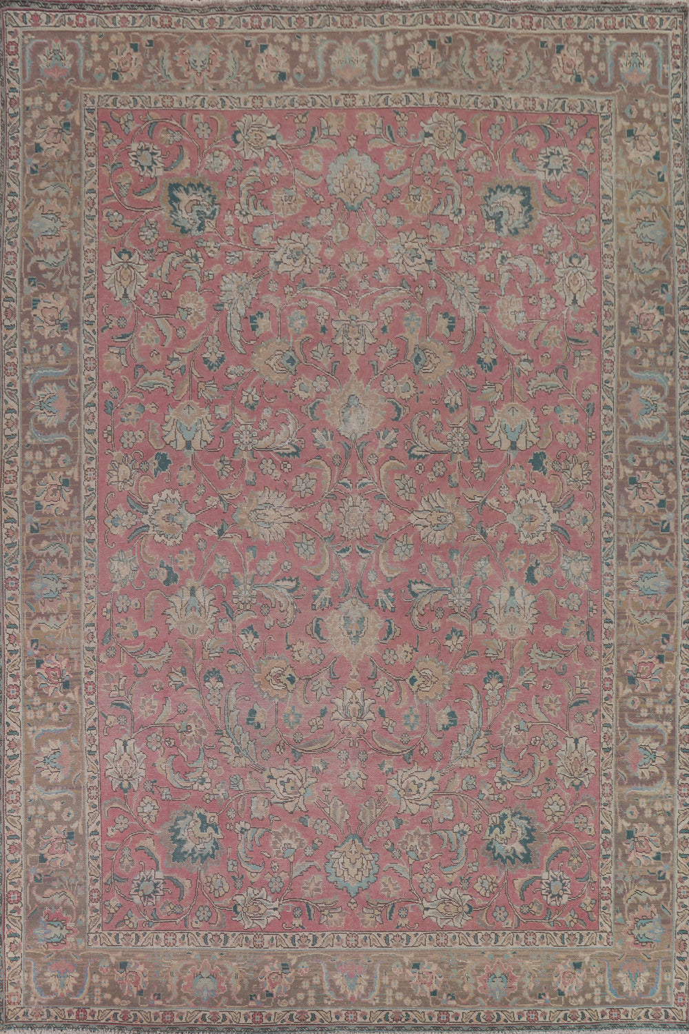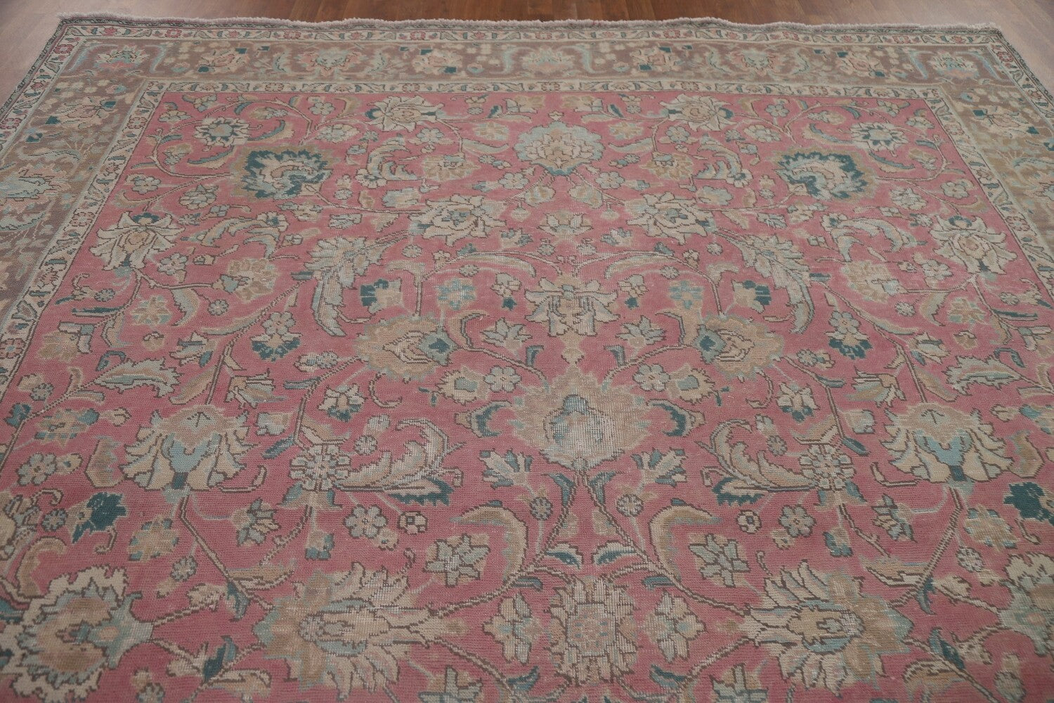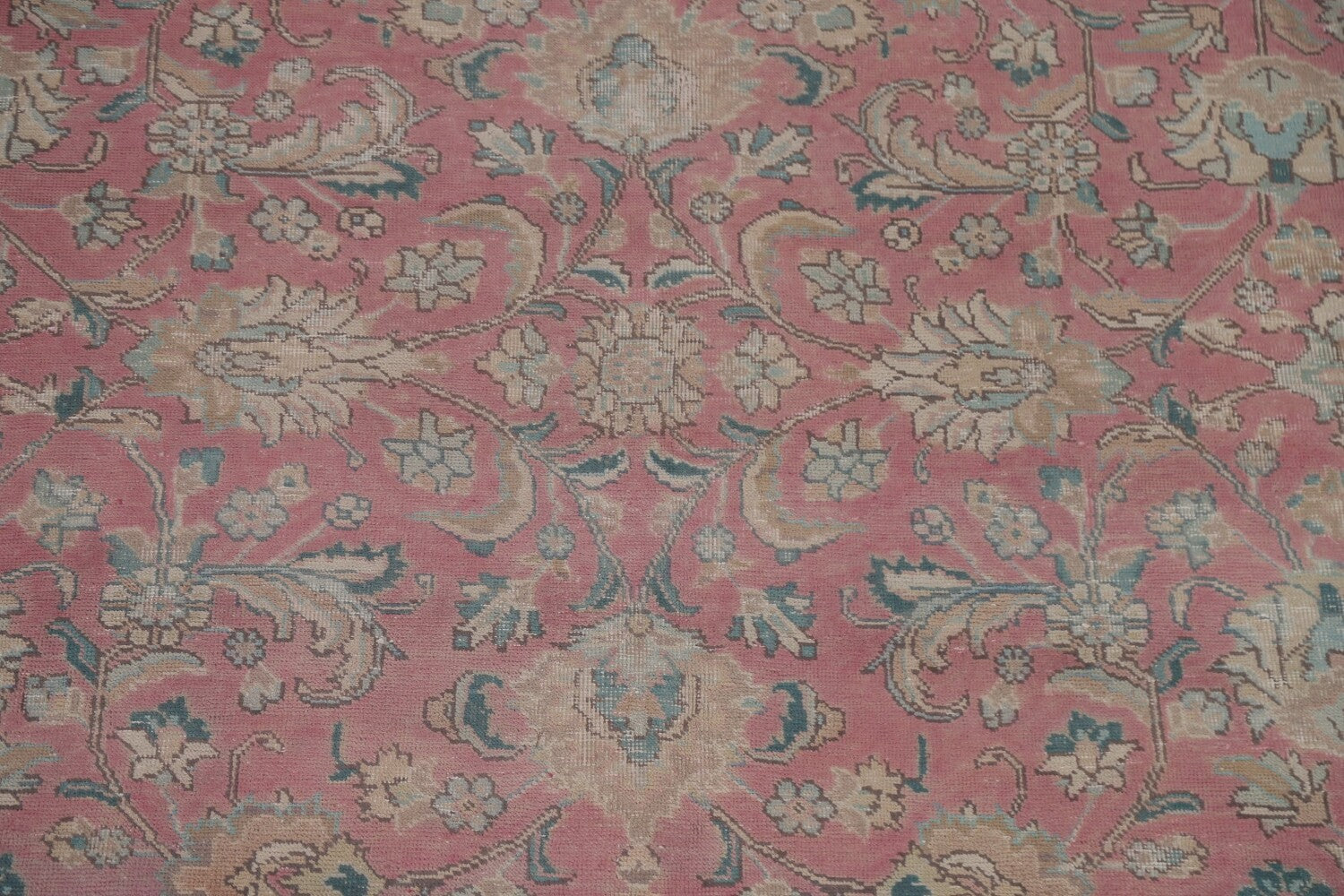 A Beautiful Genuine Persia ( Persia ) Tabriz rug is Hand Knotted by skillful weavers in Persia ( Persia ) with 100% Wool Material. This rug is in Very Good (Low Pile-Repair) condition. dimensions are 12' 5'' X 9' 6'' in foot and 378 X 290 in centimeter. the primary color is Pink.