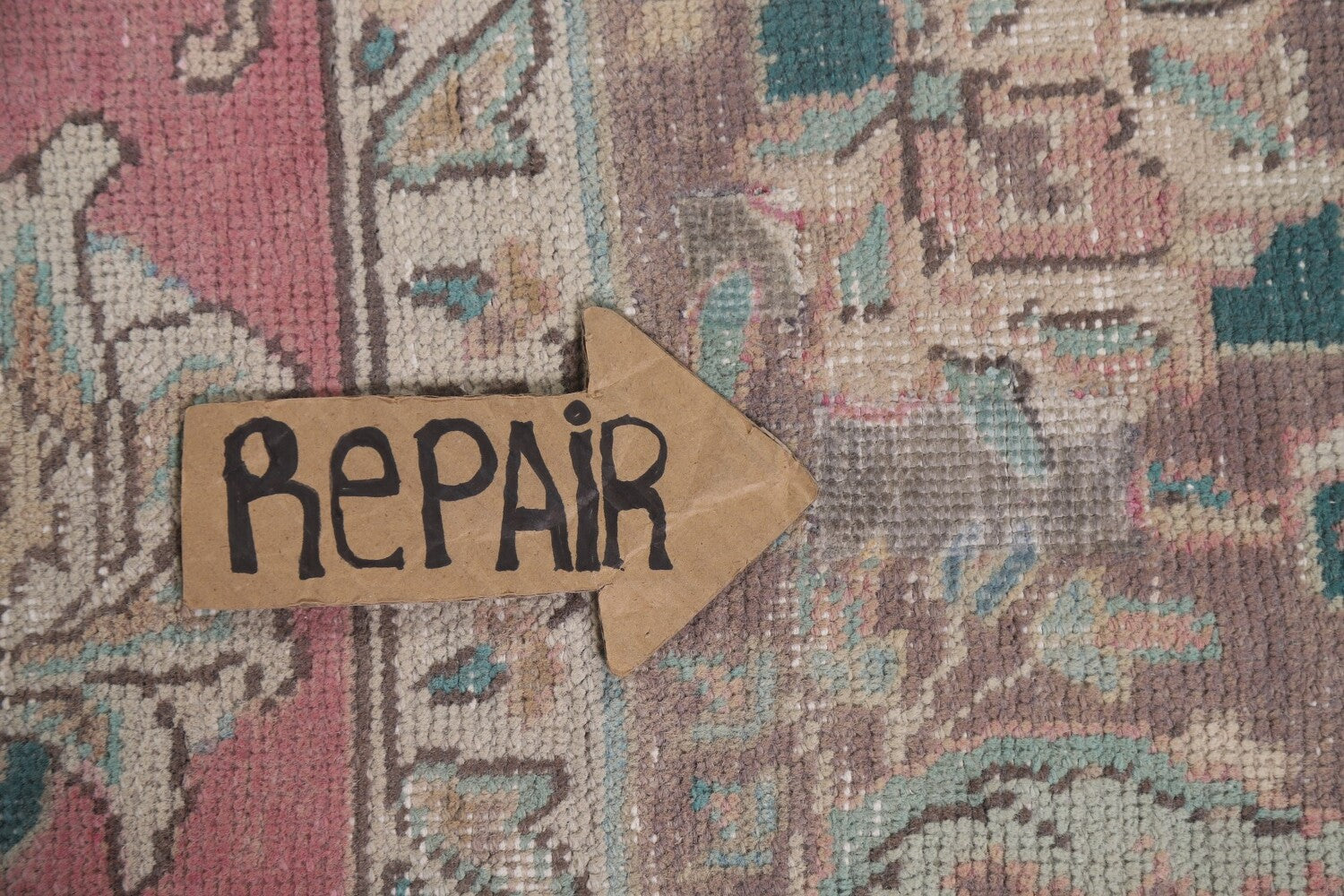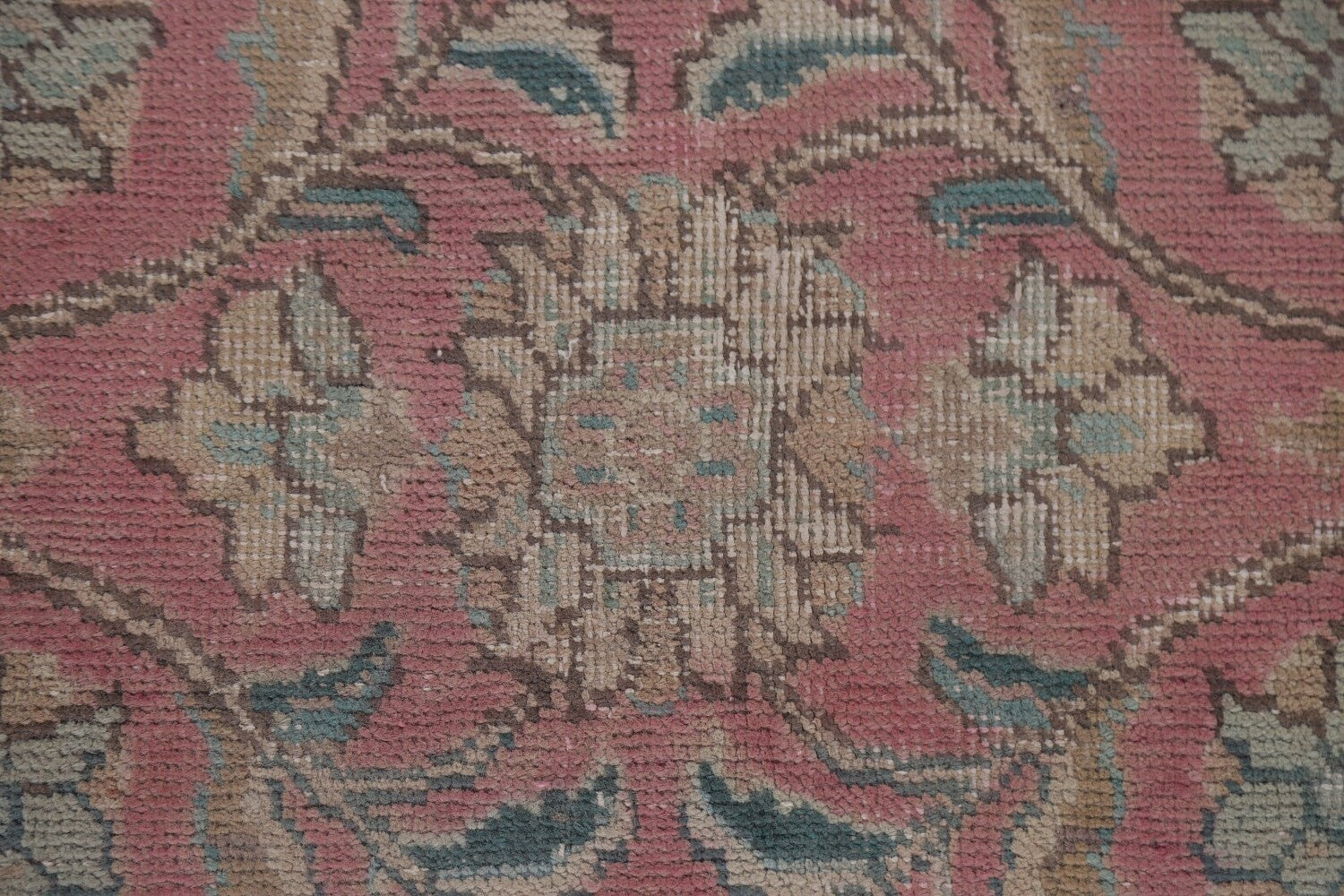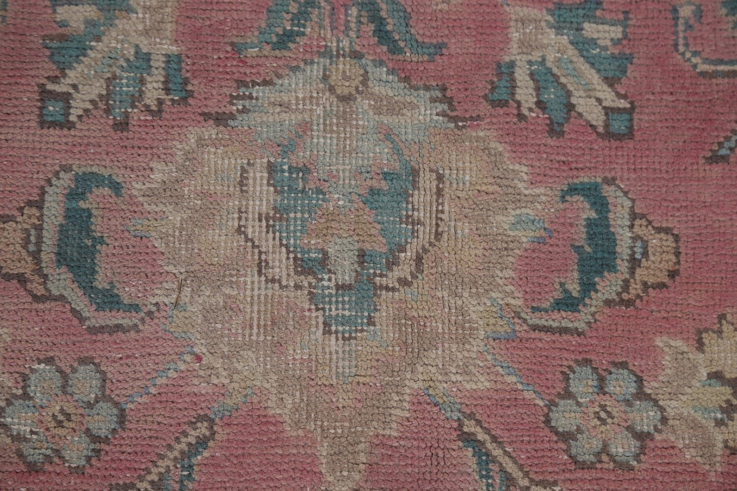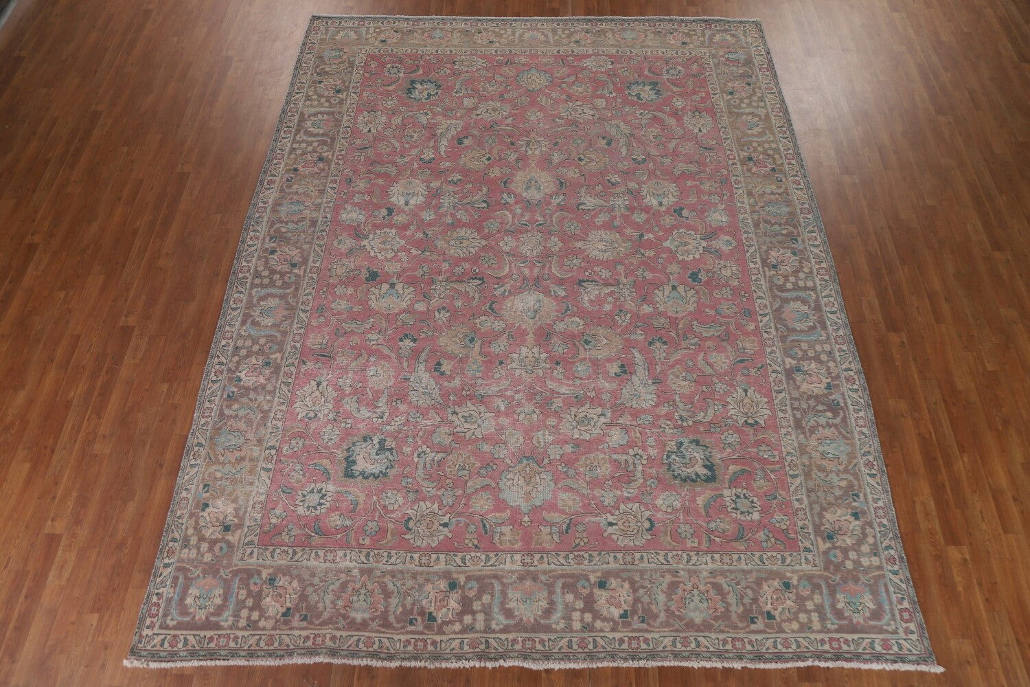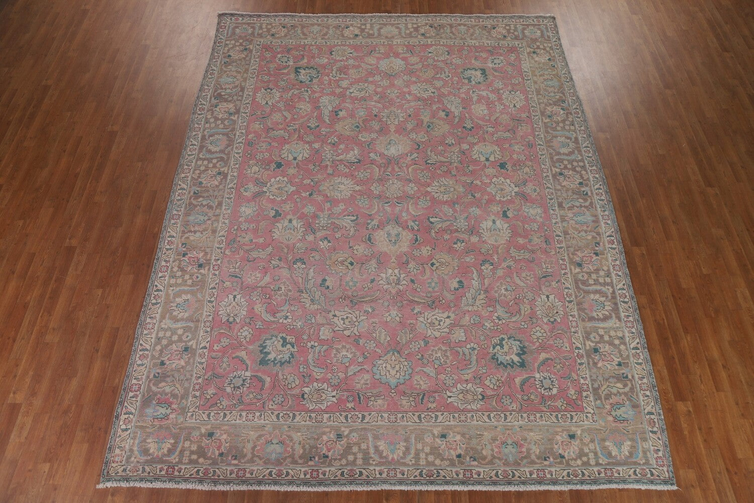 A Beautiful Genuine Persia ( Persia ) Tabriz rug is Hand Knotted by skillful weavers in Persia ( Persia ) with 100% Wool Material. This rug is in Very Good (Low Pile-Repair) condition. dimensions are 12' 5'' X 9' 6'' in foot and 378 X 290 in centimeter. the primary color is Pink.