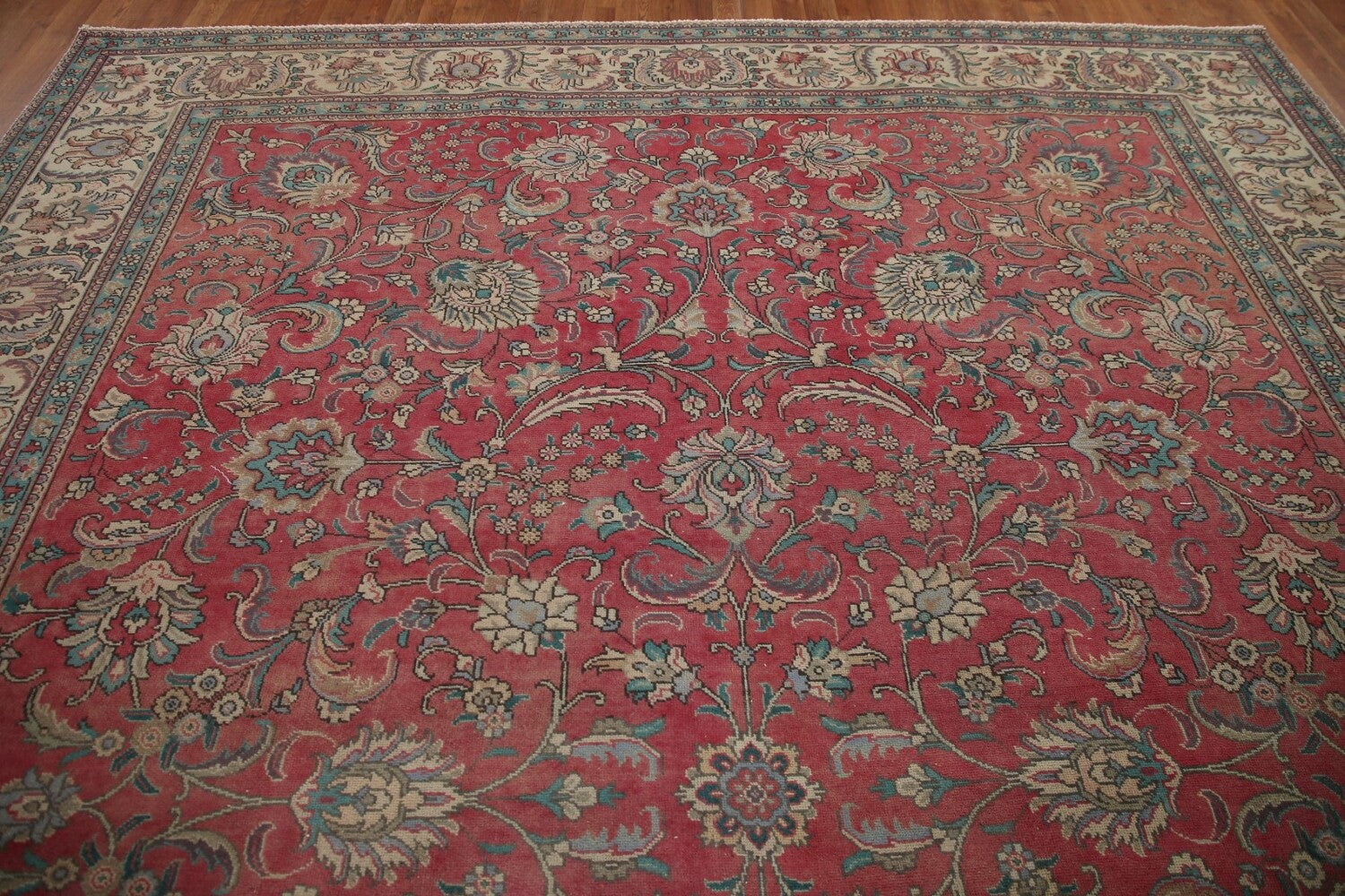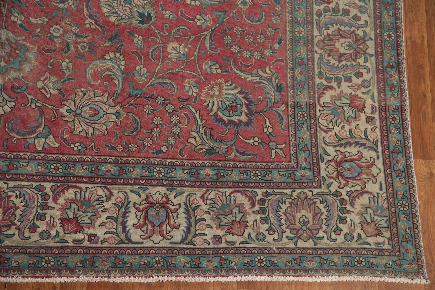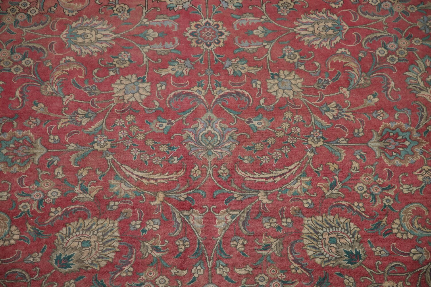 A Beautiful Genuine Persia ( Persia ) Tabriz rug is Hand Knotted by skillful weavers in Persia ( Persia ) with 100% Wool Material. This rug is in Very Good (Low Pile) condition. dimensions are 12' 7'' X 9' 11'' in foot and 384 X 302 in centimeter. the primary color is Pink.