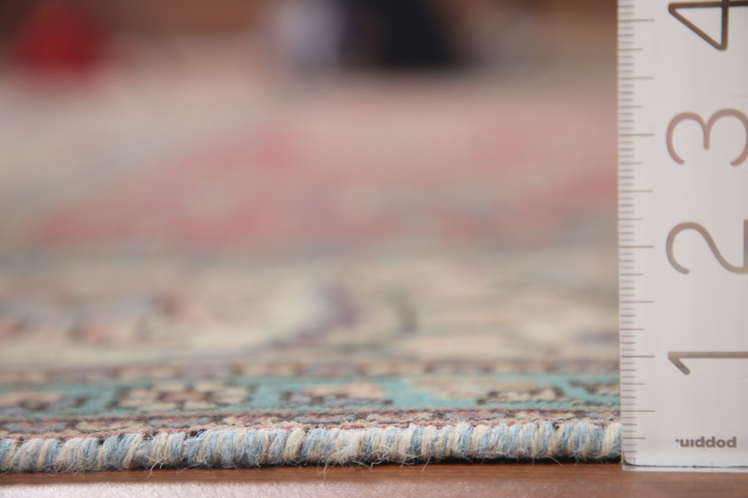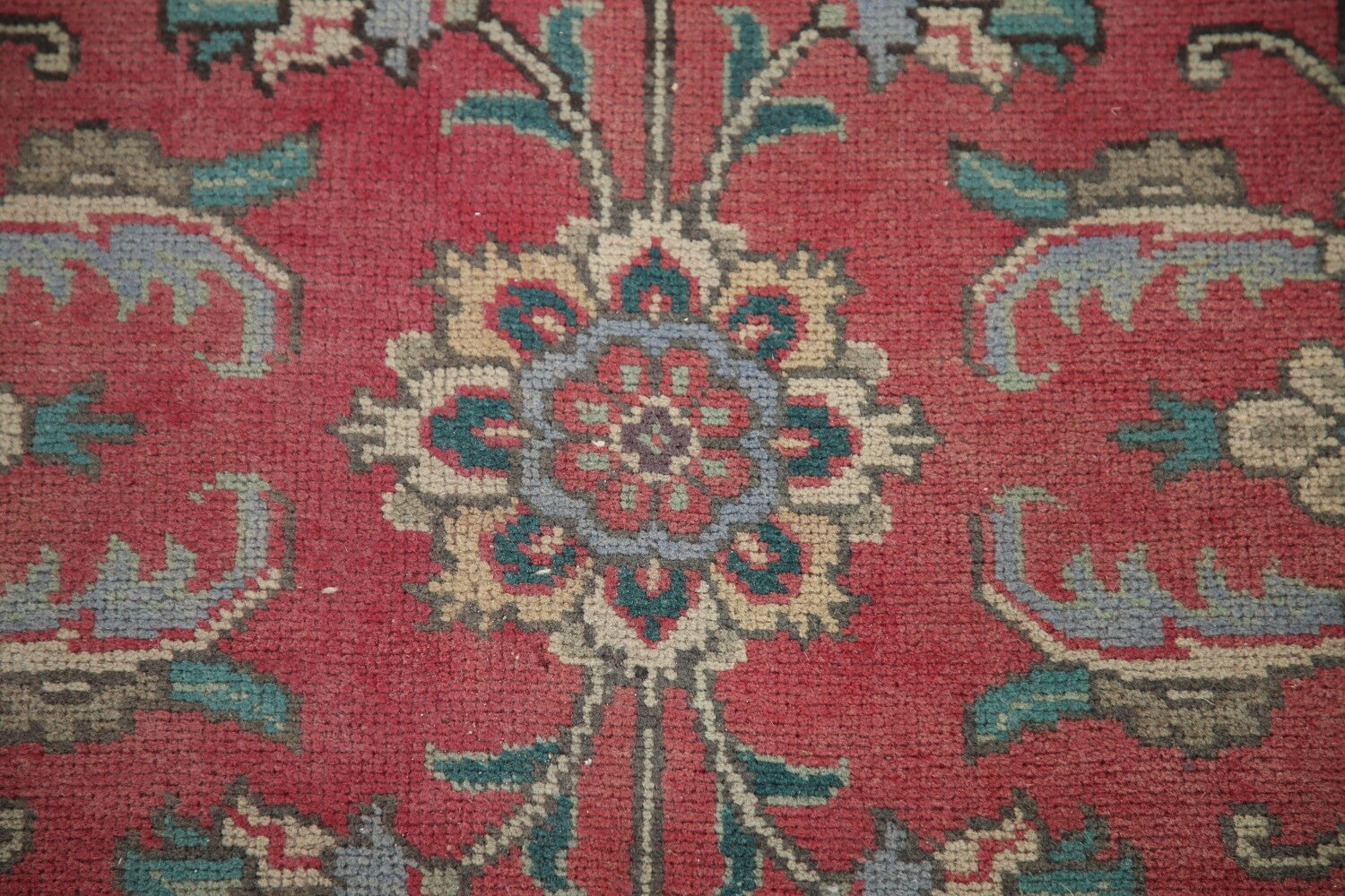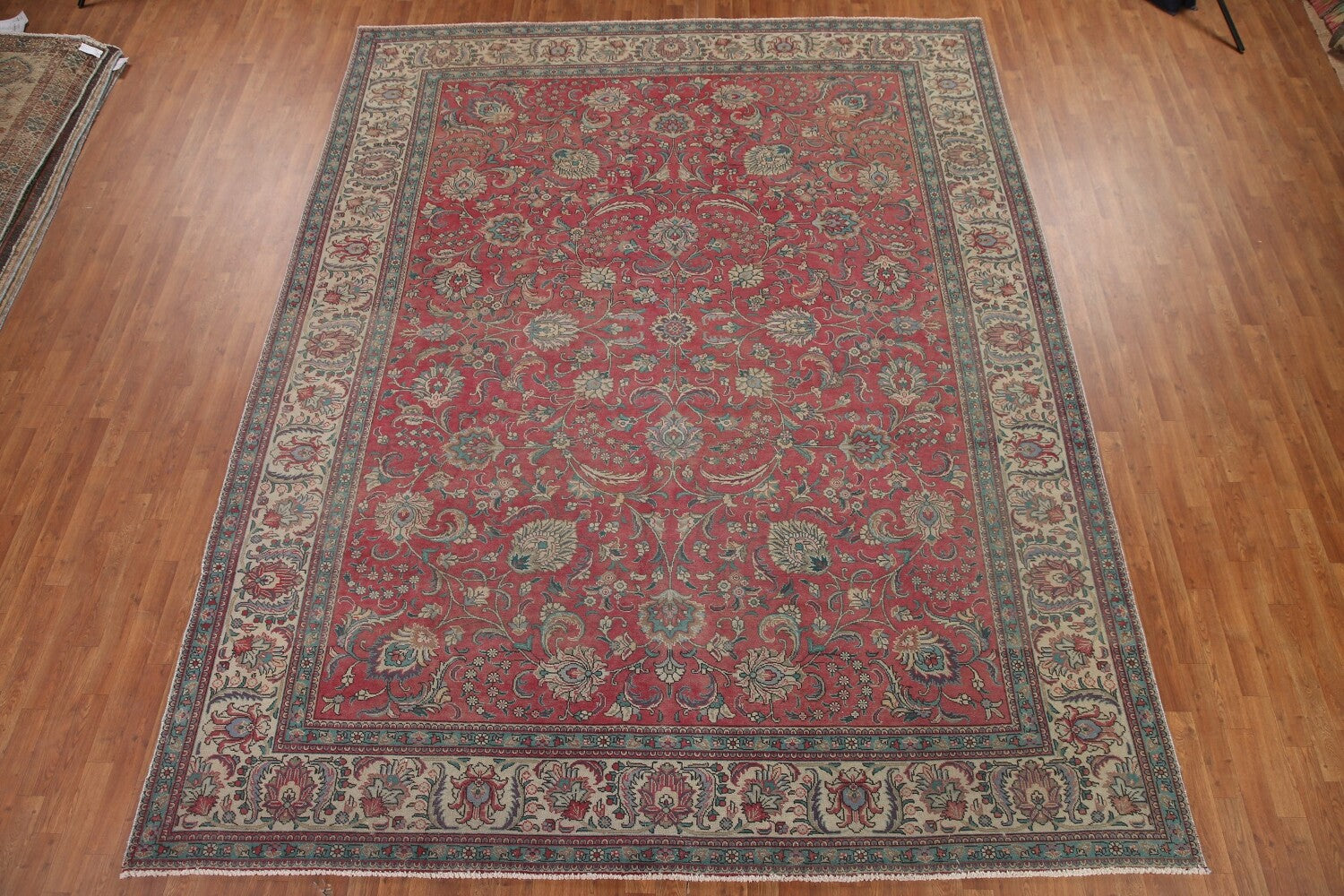 A Beautiful Genuine Persia ( Persia ) Tabriz rug is Hand Knotted by skillful weavers in Persia ( Persia ) with 100% Wool Material. This rug is in Very Good (Low Pile) condition. dimensions are 12' 7'' X 9' 11'' in foot and 384 X 302 in centimeter. the primary color is Pink.