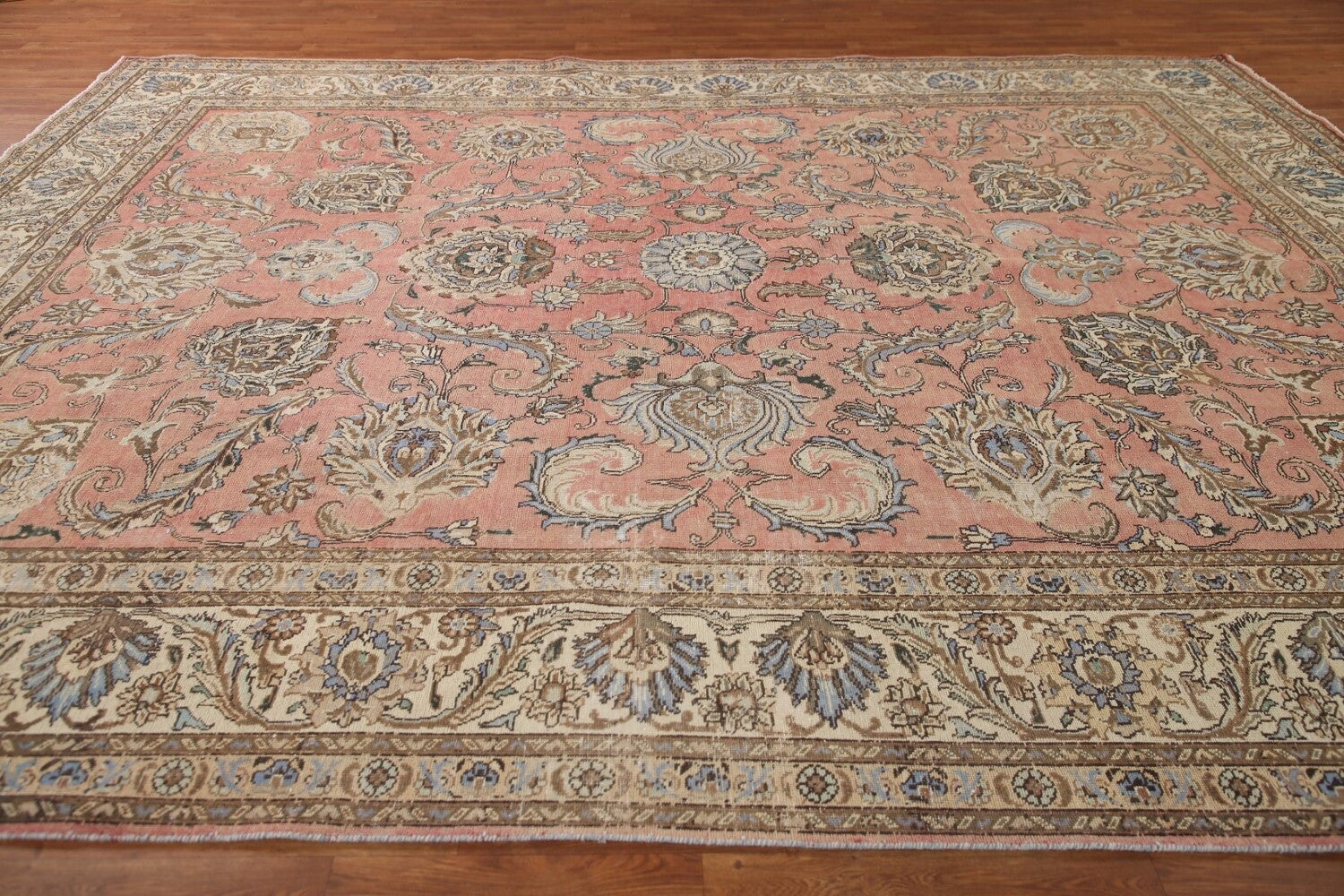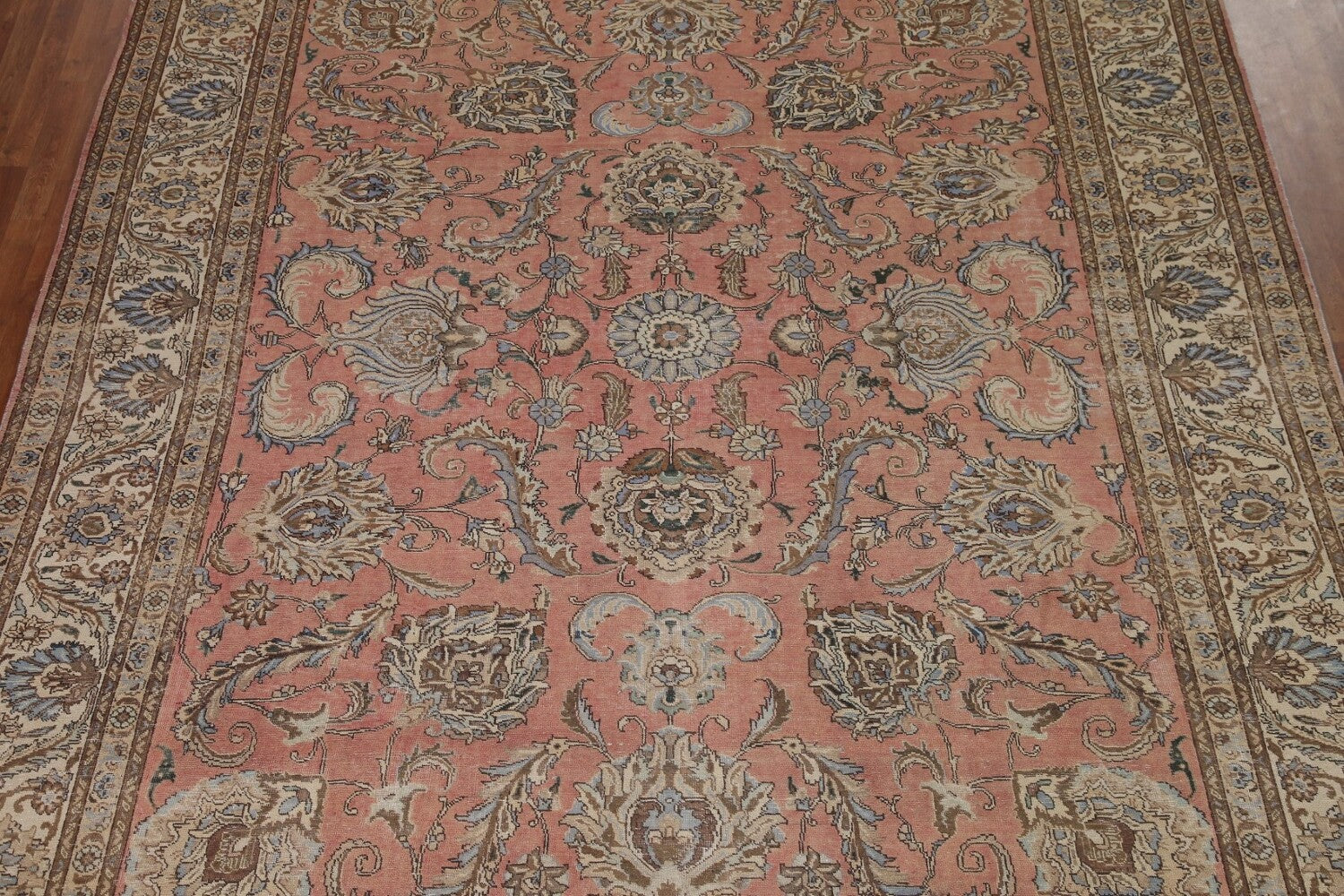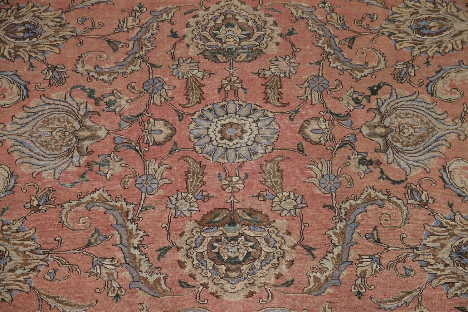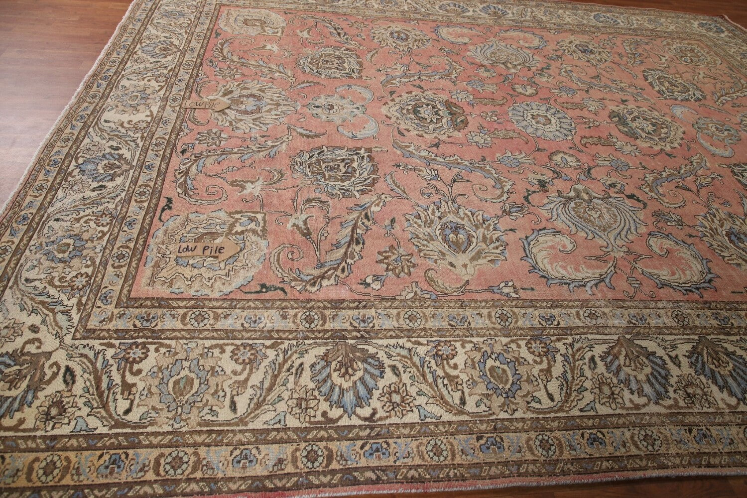 A Beautiful Genuine Persia ( Persia ) Tabriz rug is Hand Knotted by skillful weavers in Persia ( Persia ) with 100% Wool Material. This rug is in Very Good (Low Pile) condition. dimensions are 12' 10'' X 10' 4'' in foot and 391 X 315 in centimeter. the primary color is Pink.