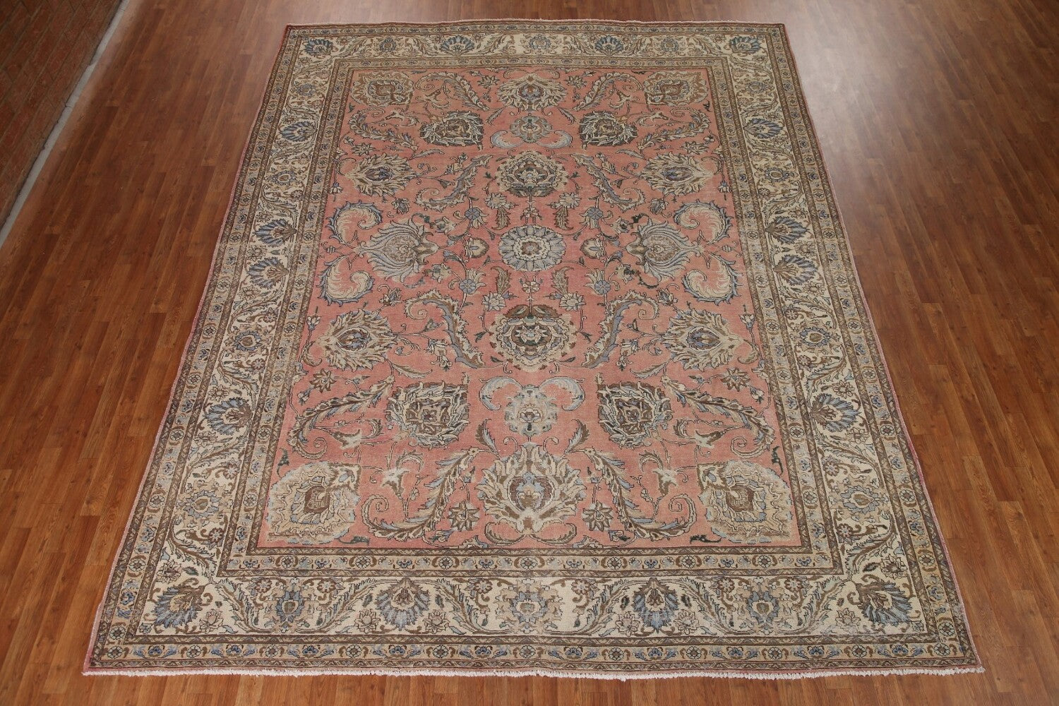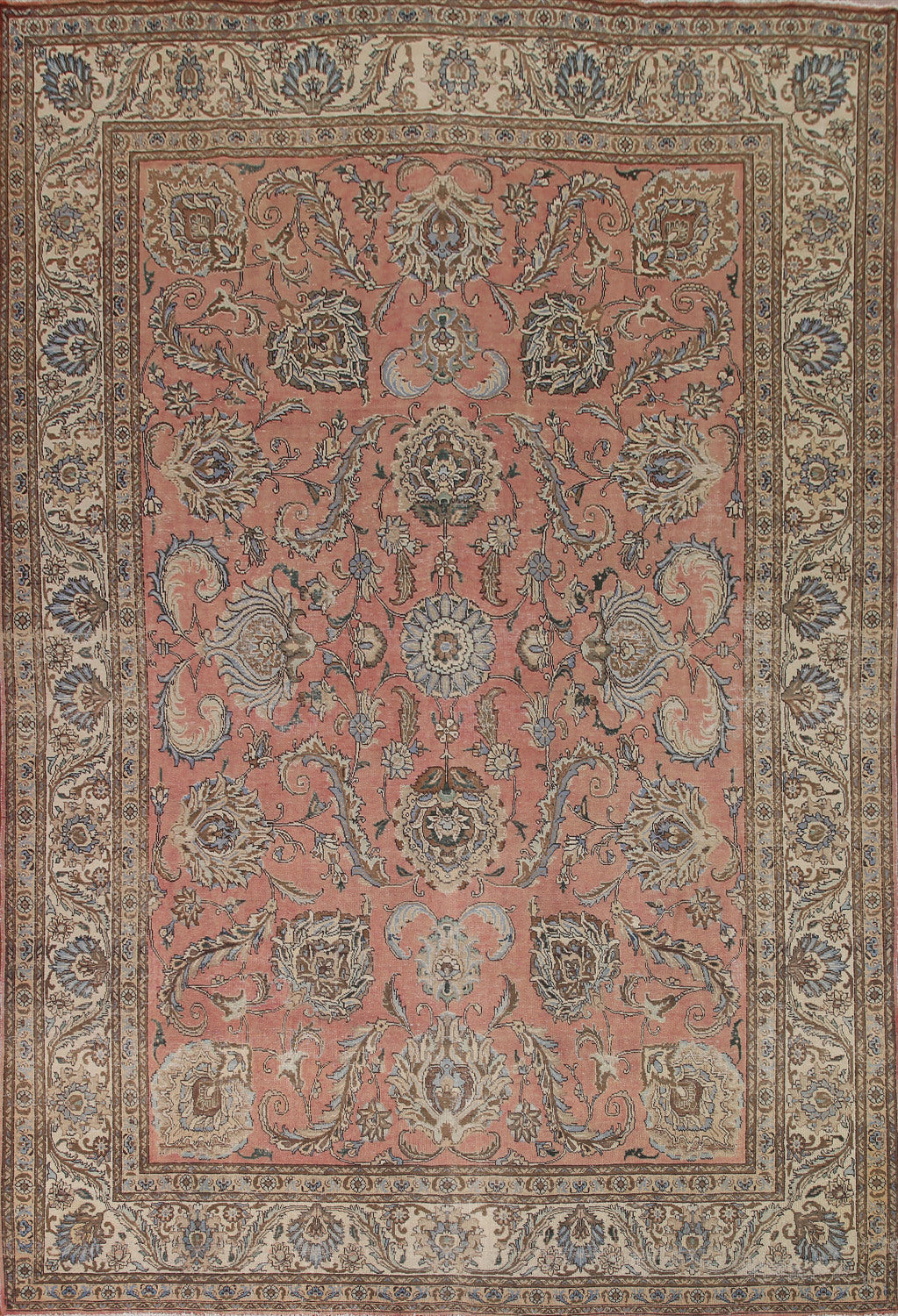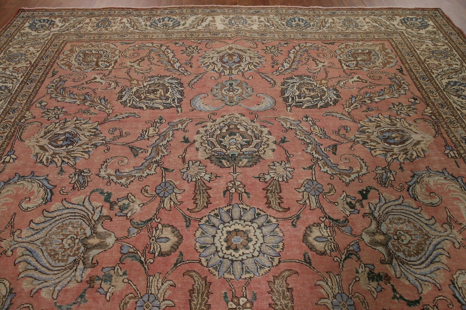 A Beautiful Genuine Persia ( Persia ) Tabriz rug is Hand Knotted by skillful weavers in Persia ( Persia ) with 100% Wool Material. This rug is in Very Good (Low Pile) condition. dimensions are 12' 10'' X 10' 4'' in foot and 391 X 315 in centimeter. the primary color is Pink.