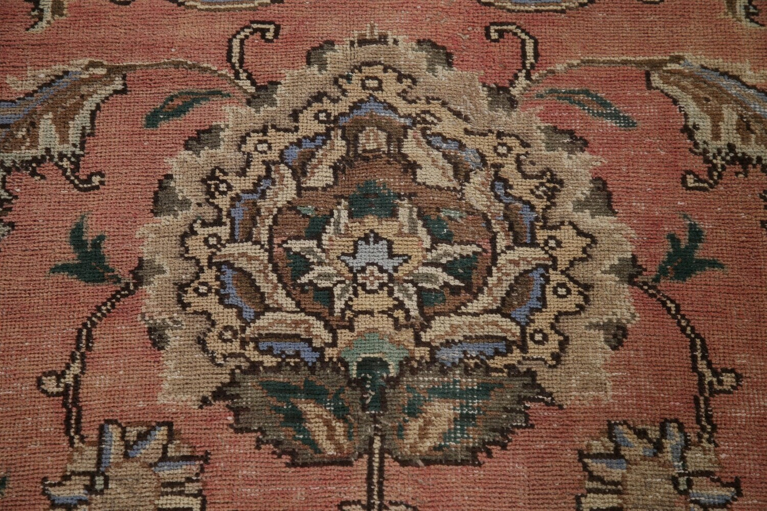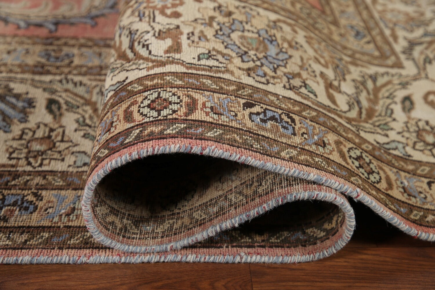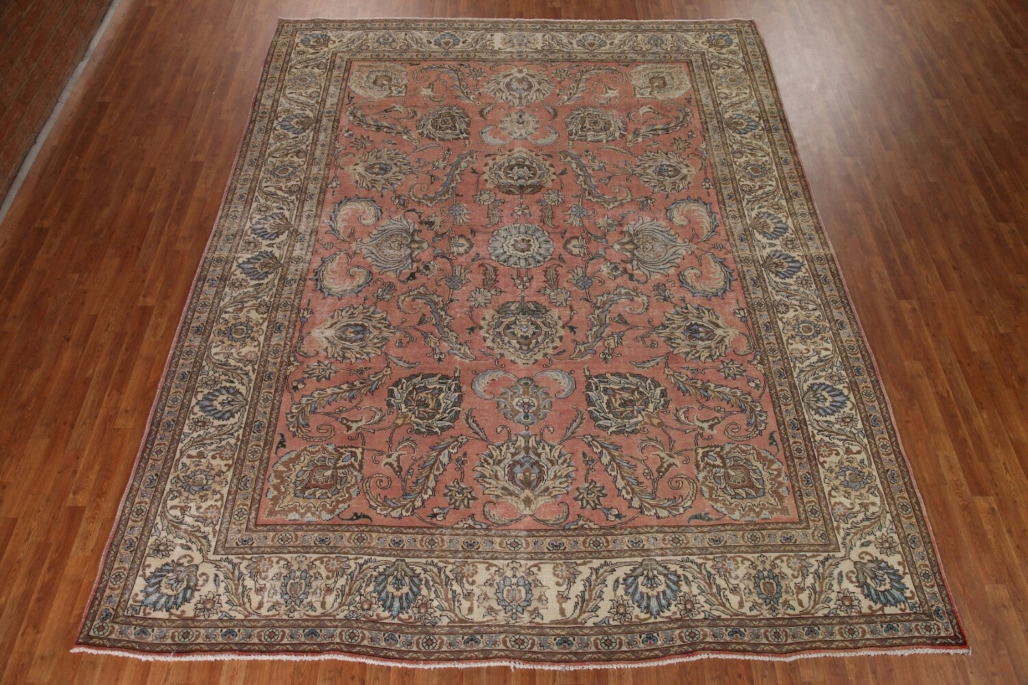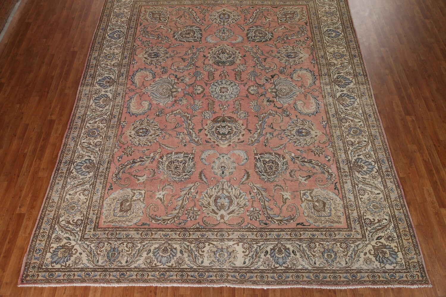 A Beautiful Genuine Persia ( Persia ) Tabriz rug is Hand Knotted by skillful weavers in Persia ( Persia ) with 100% Wool Material. This rug is in Very Good (Low Pile) condition. dimensions are 12' 10'' X 10' 4'' in foot and 391 X 315 in centimeter. the primary color is Pink.