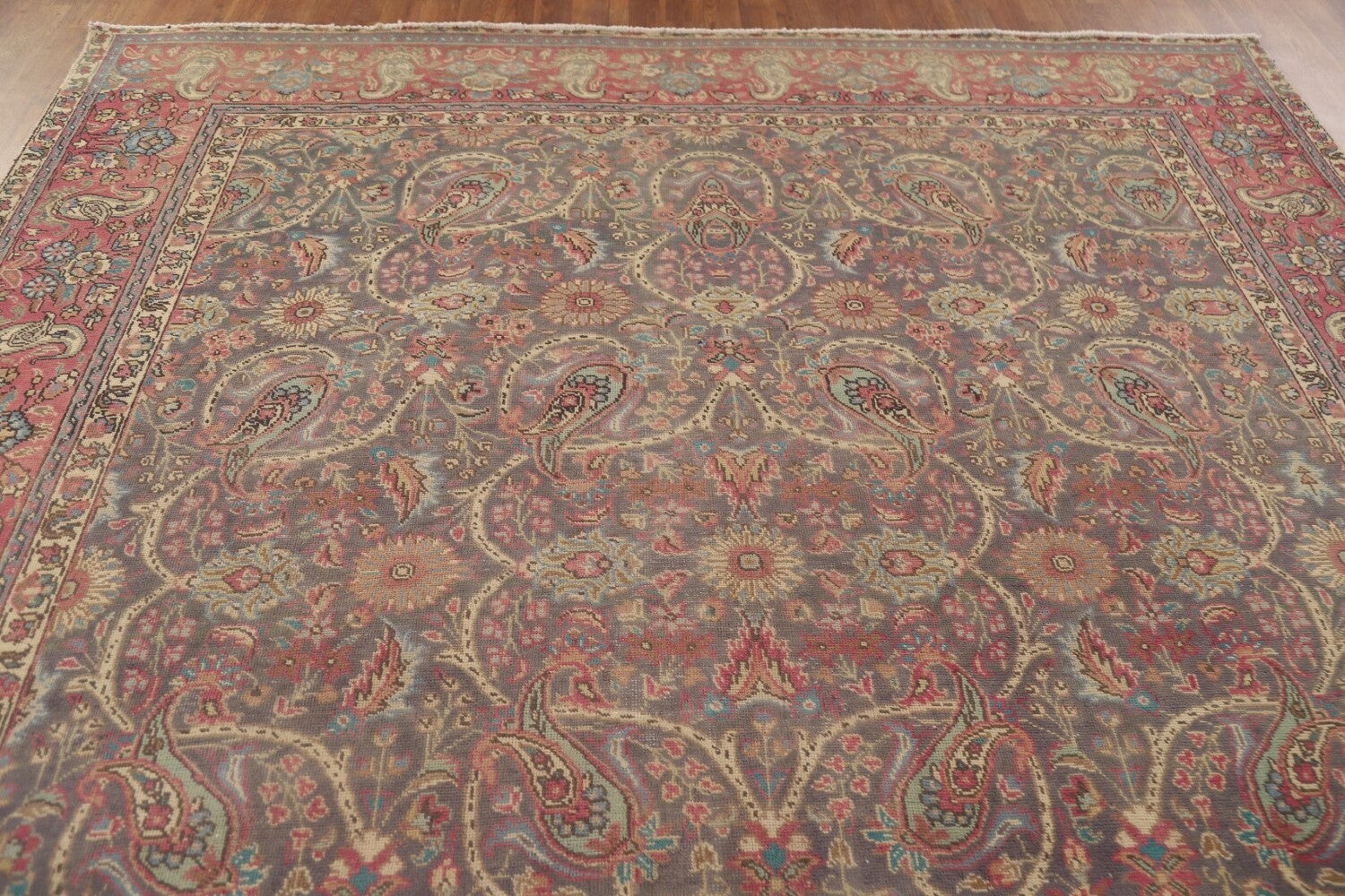 A Beautiful Genuine Persia ( Persia ) Tabriz rug is Hand Knotted by skillful weavers in Persia ( Persia ) with 100% Wool Material. This rug is in Very Good (Evenly Low Pile) condition. dimensions are 11' 0'' X 8' 3'' in foot and 335 X 251 in centimeter. the primary color is Greys & Charcoal.