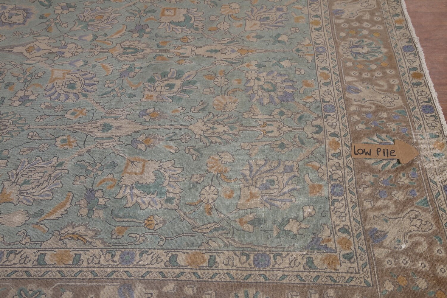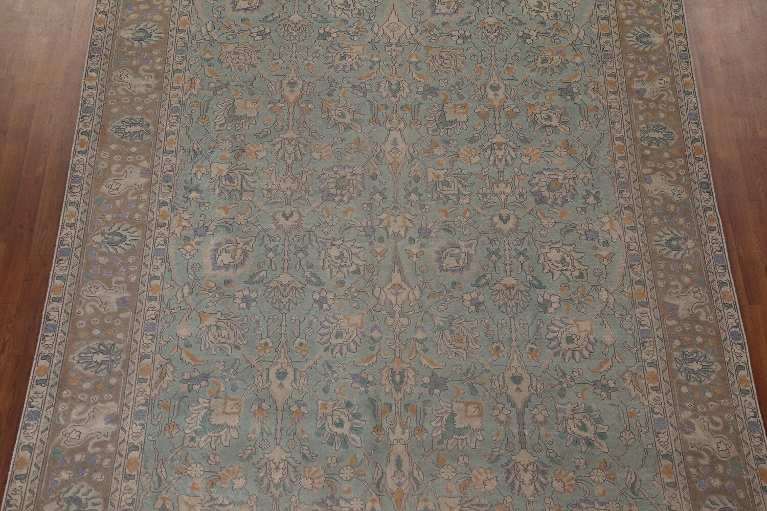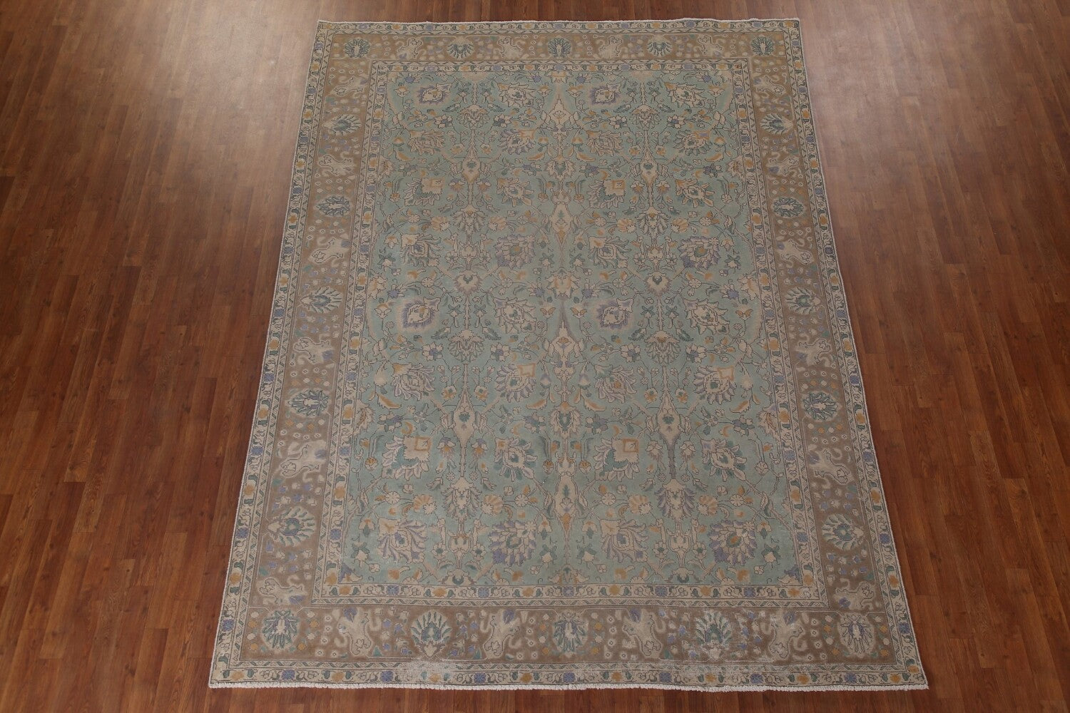A Beautiful Genuine Persia ( Persia ) Tabriz rug is Hand Knotted by skillful weavers in Persia ( Persia ) with 100% Wool Material. This rug is in Very Good (Low Pile) condition. dimensions are 10' 10'' X 8' 0'' in foot and 330 X 244 in centimeter. the primary color is Green.