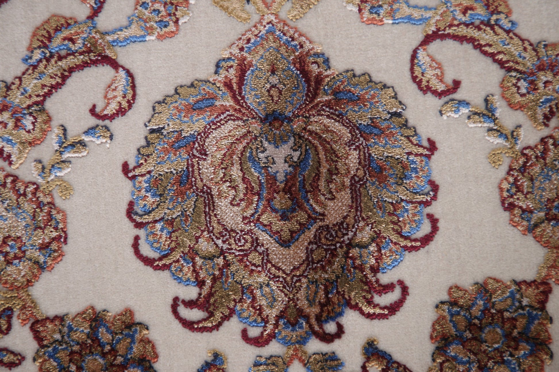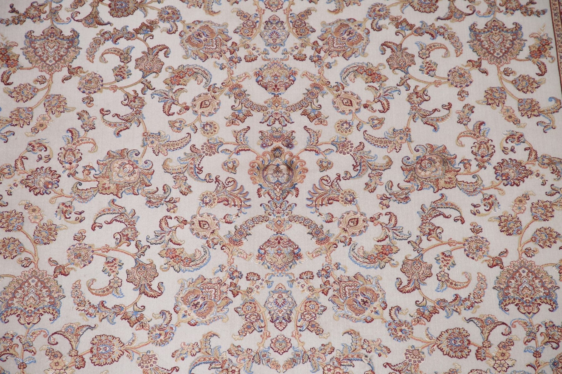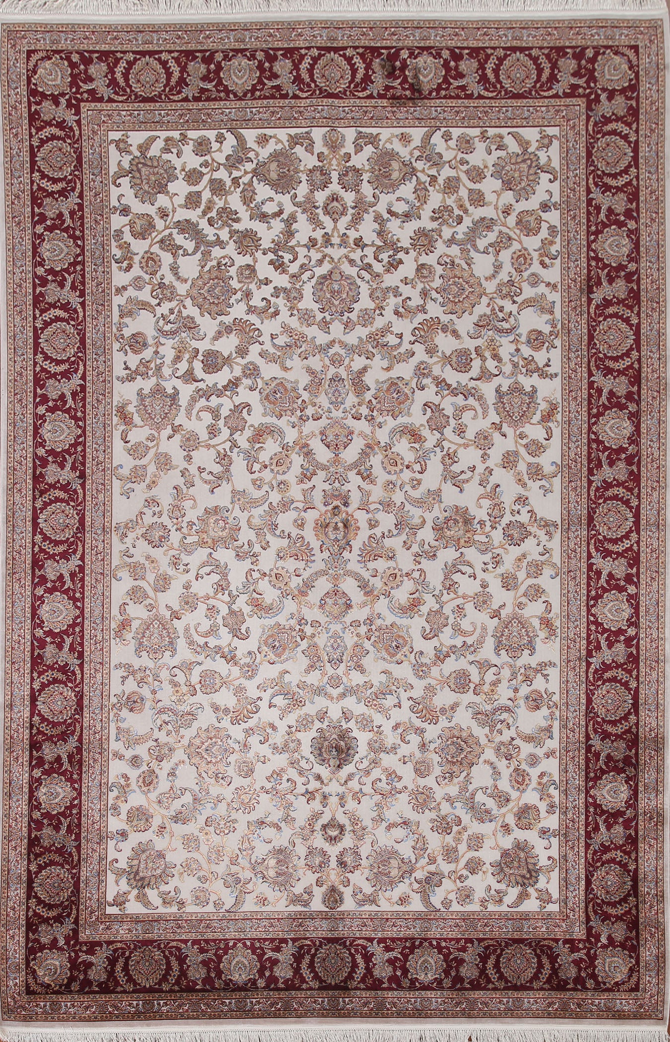 A Beautiful Genuine Turkey Tabriz rug is Machine Made by skillful weavers in Turkey with 90% Silk - 10% Polyester Material. This rug is in condition. dimensions are 9' 8'' X 6' 5'' in foot and 295 X 196 in centimeter. the primary color is Beige & Ivories.