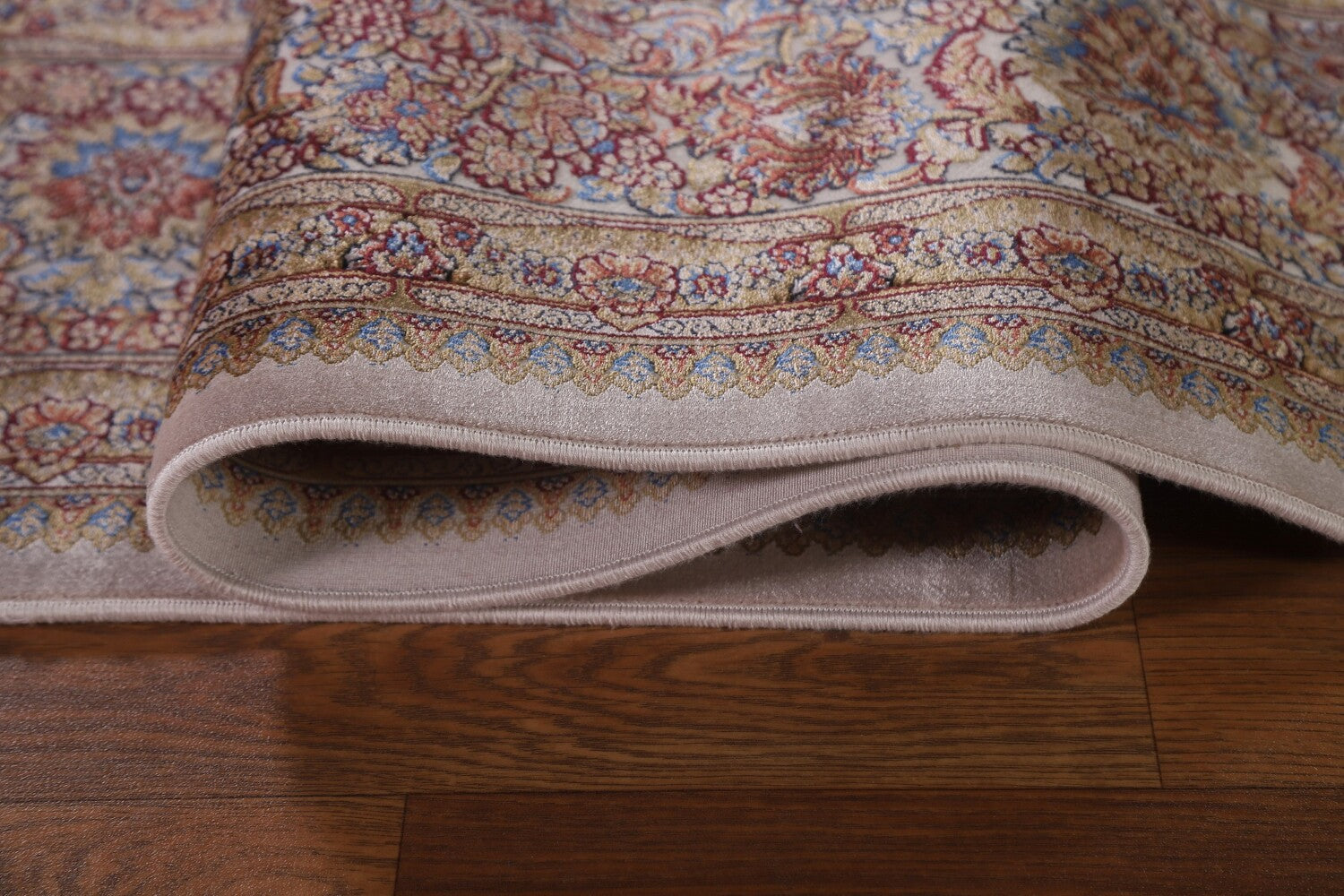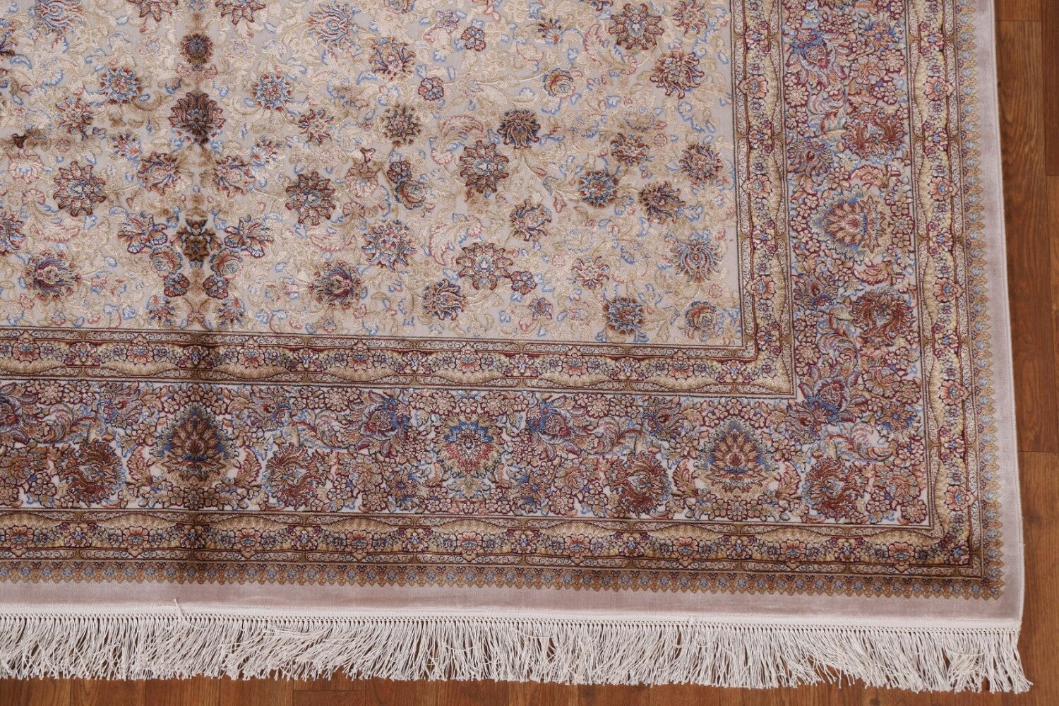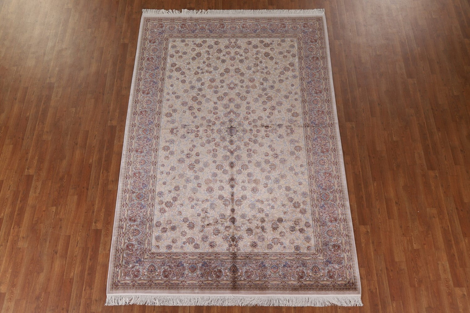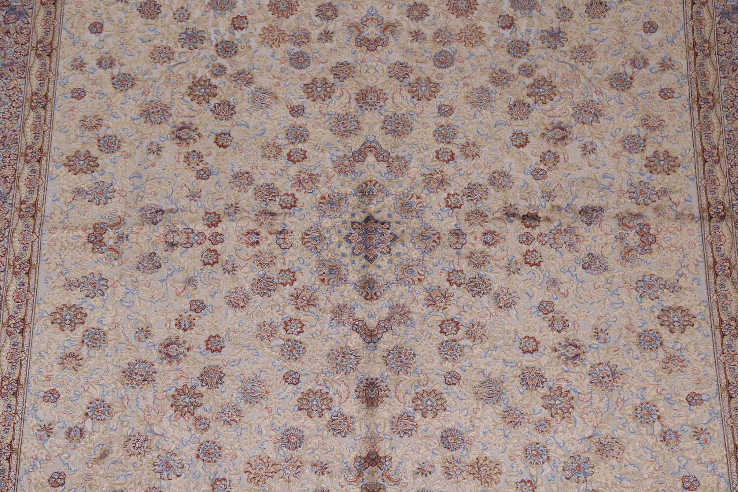 A Beautiful Genuine Turkey Tabriz rug is Machine Made by skillful weavers in Turkey with 90% Silk - 10% Polyester Material. This rug is in condition. dimensions are 9' 8'' X 6' 6'' in foot and 295 X 198 in centimeter. the primary color is Beige & Ivories.