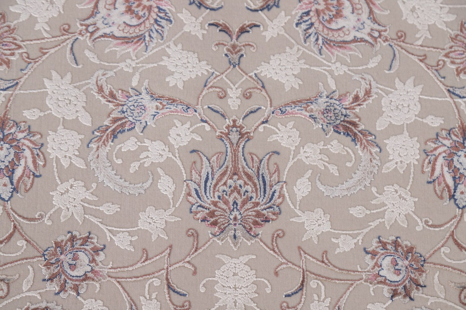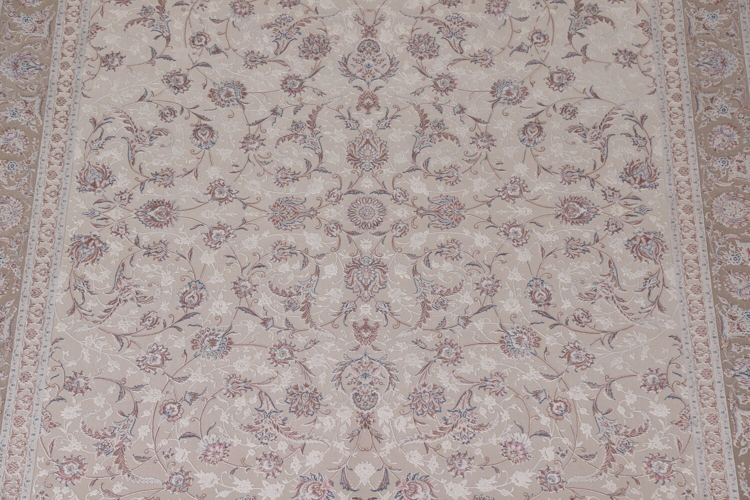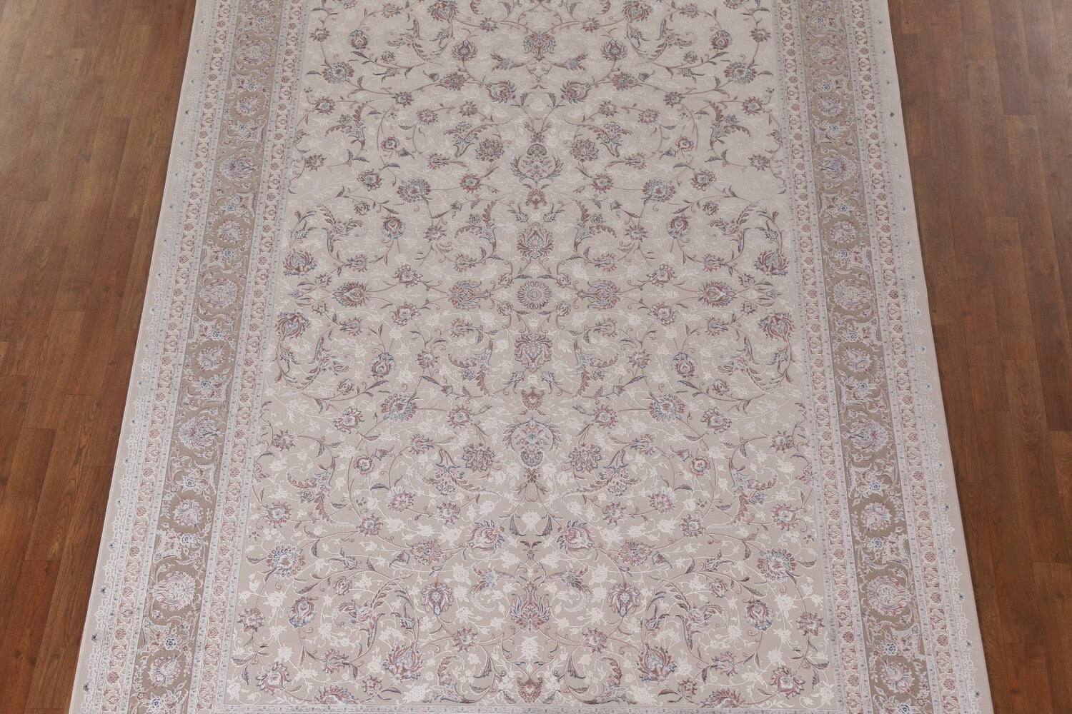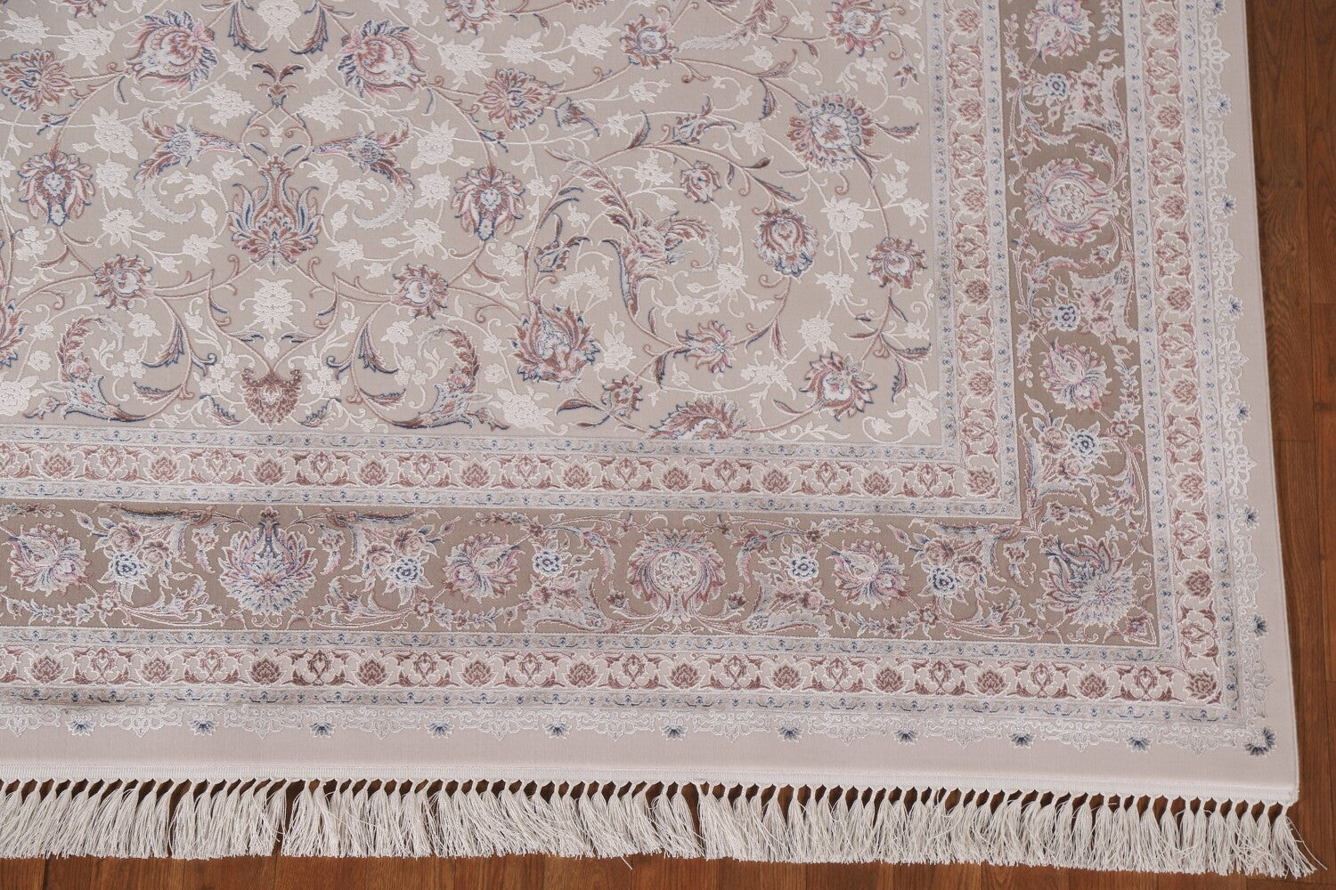 A Beautiful Genuine Turkey Tabriz rug is Machine Made by skillful weavers in Turkey with 90% Silk - 10% Polyester Material. This rug is in condition. dimensions are 9' 7'' X 6' 7'' in foot and 292 X 201 in centimeter. the primary color is Beige & Ivories.