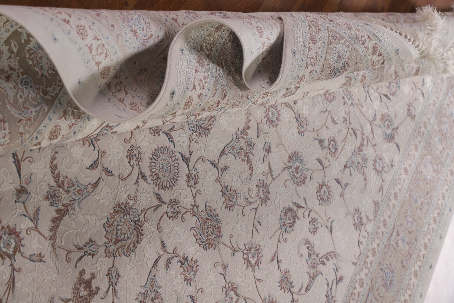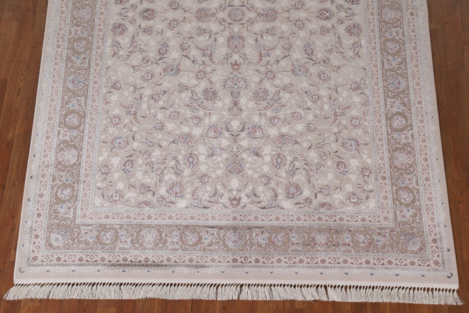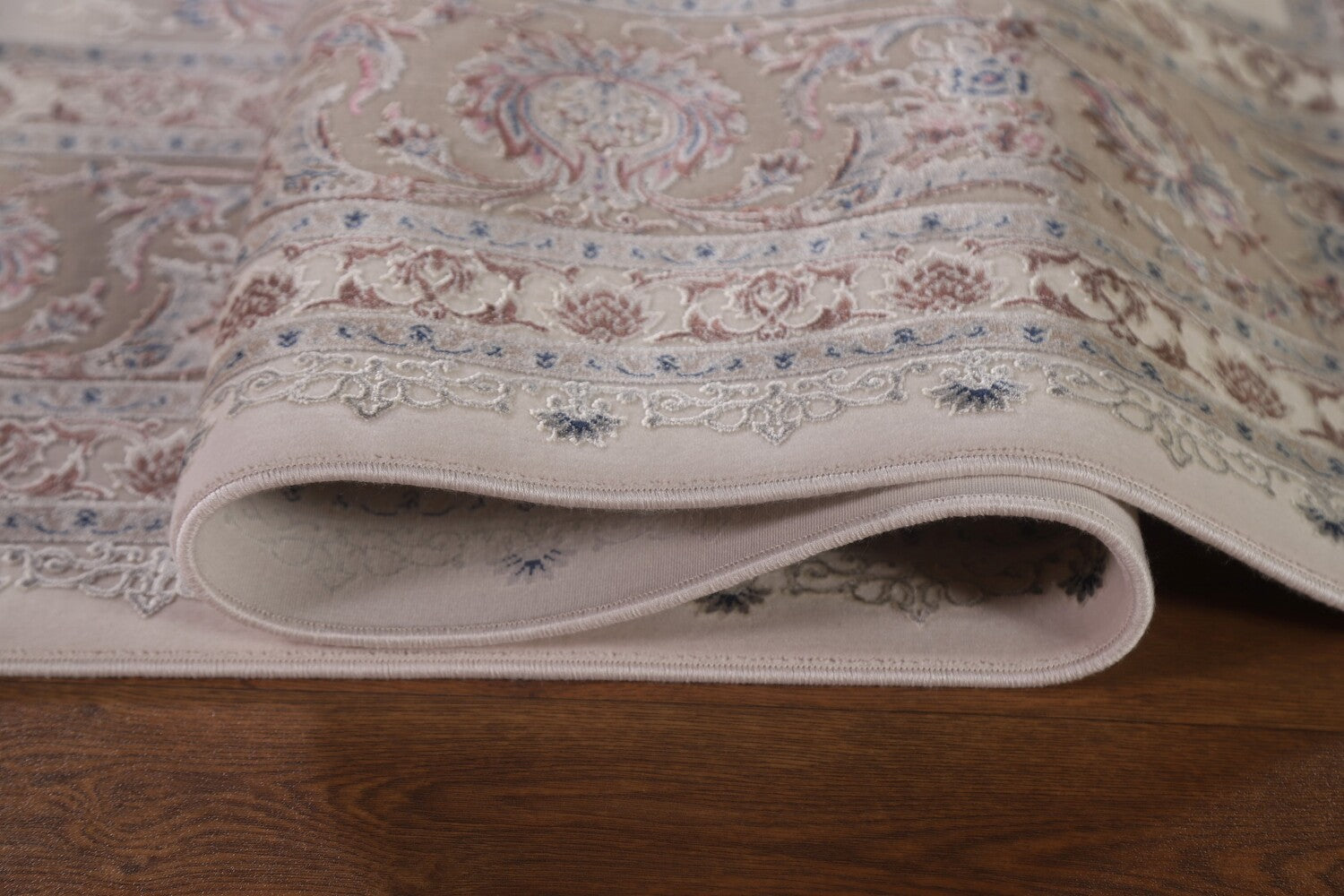 A Beautiful Genuine Turkey Tabriz rug is Machine Made by skillful weavers in Turkey with 90% Silk - 10% Polyester Material. This rug is in condition. dimensions are 9' 7'' X 6' 7'' in foot and 292 X 201 in centimeter. the primary color is Beige & Ivories.
