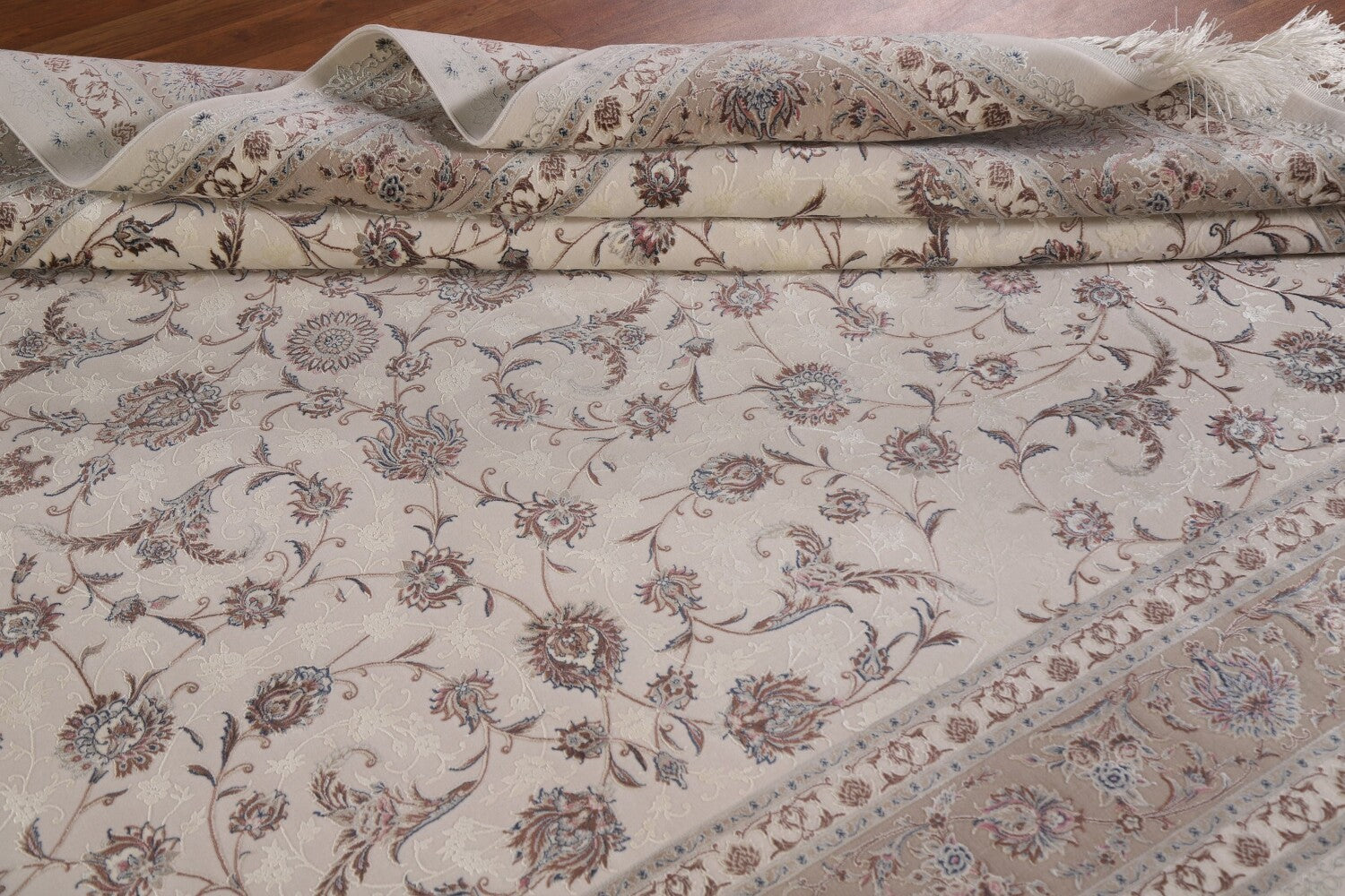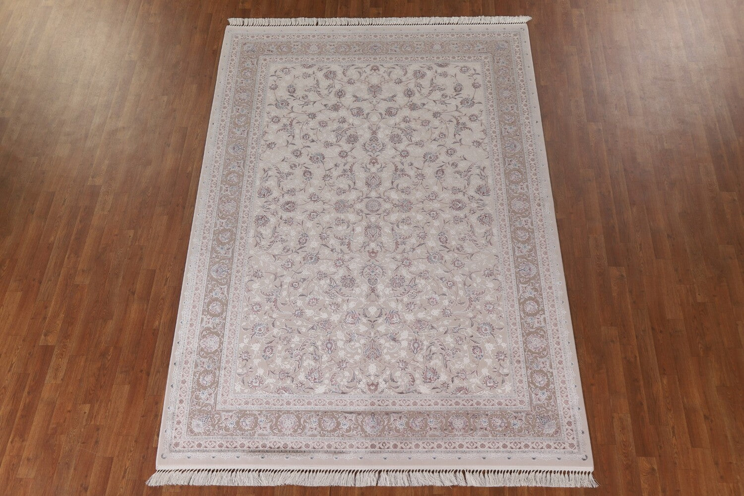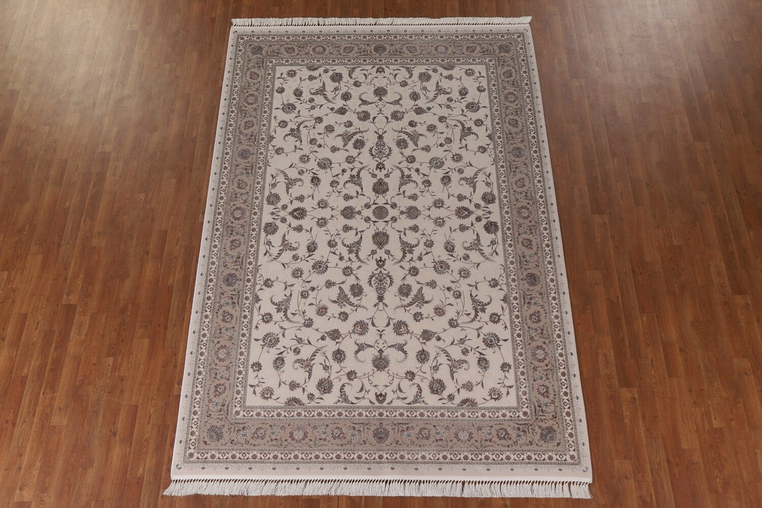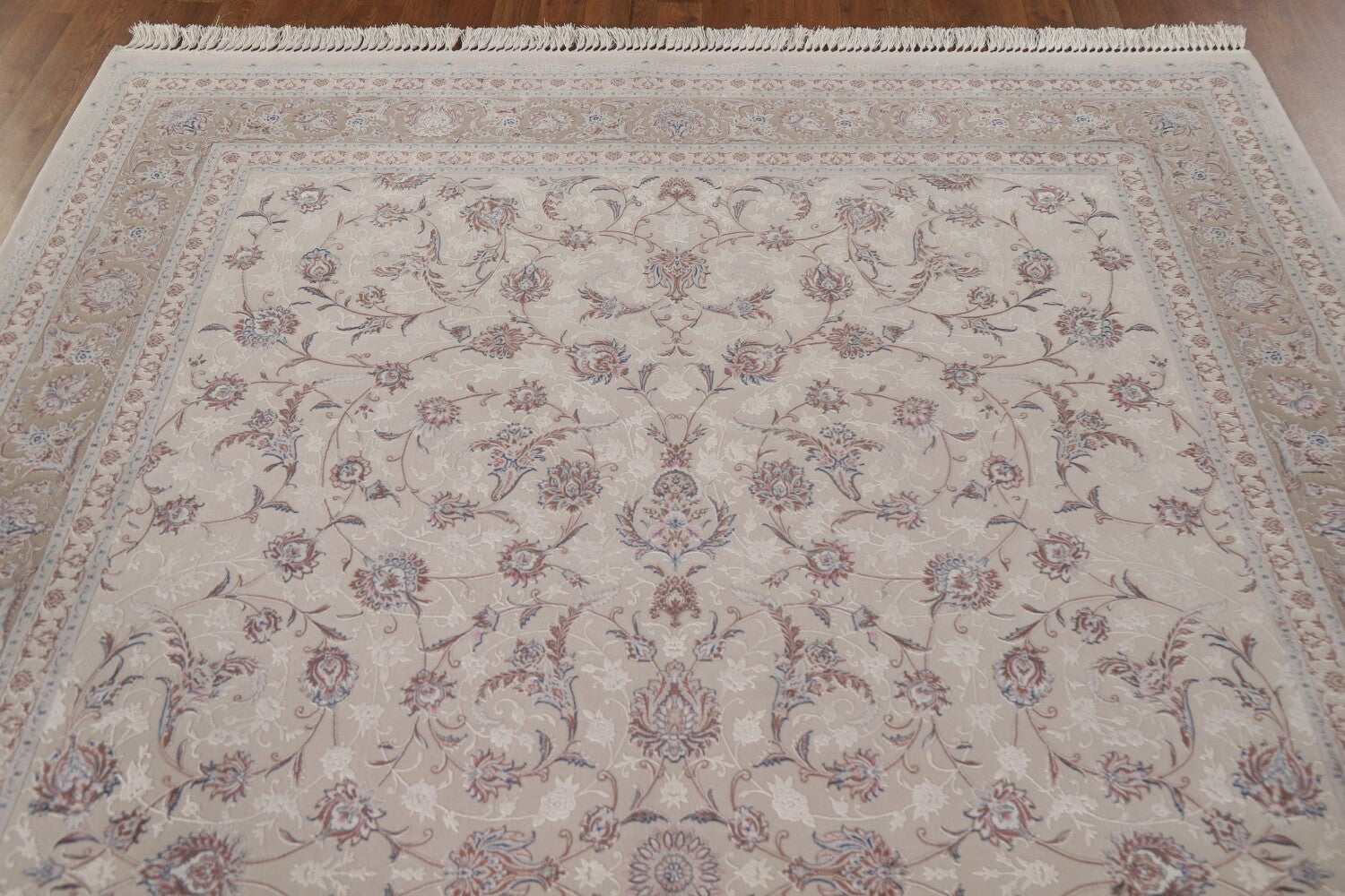 A Beautiful Genuine Turkey Tabriz rug is Machine Made by skillful weavers in Turkey with 90% Silk - 10% Polyester Material. This rug is in condition. dimensions are 9' 7'' X 6' 7'' in foot and 292 X 201 in centimeter. the primary color is Beige & Ivories.