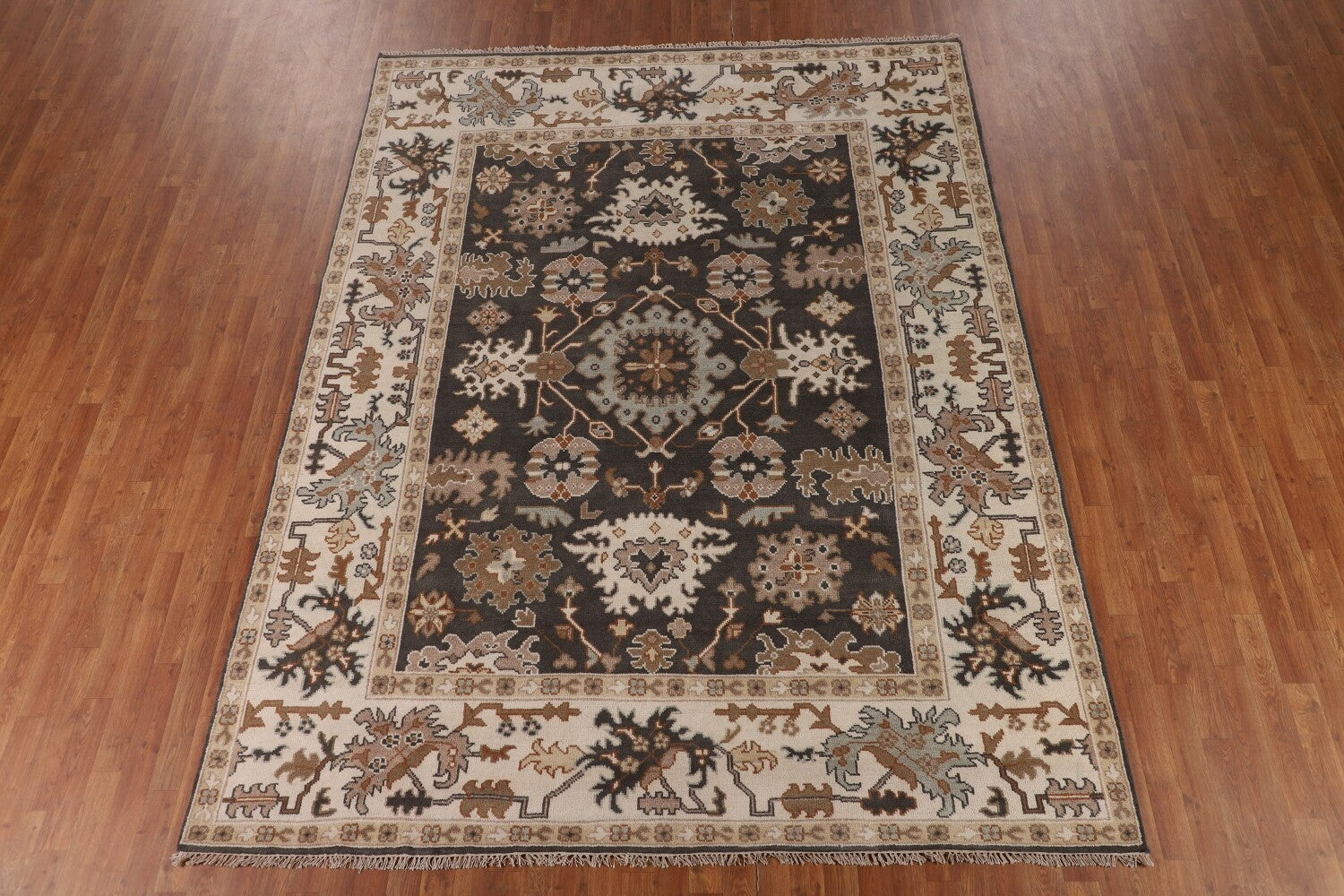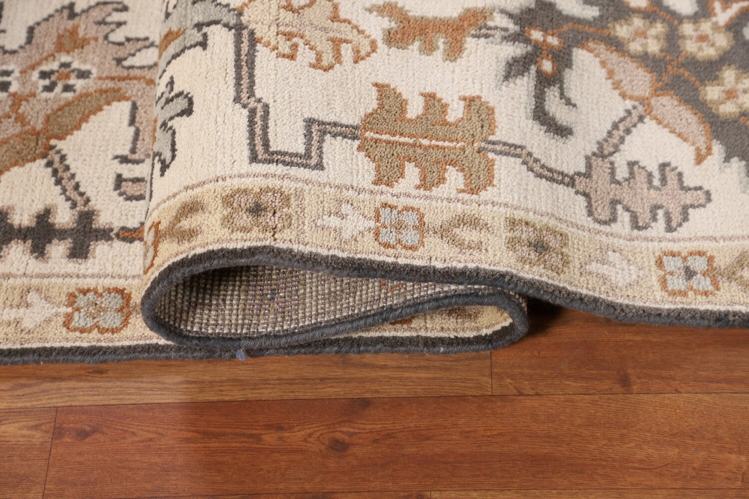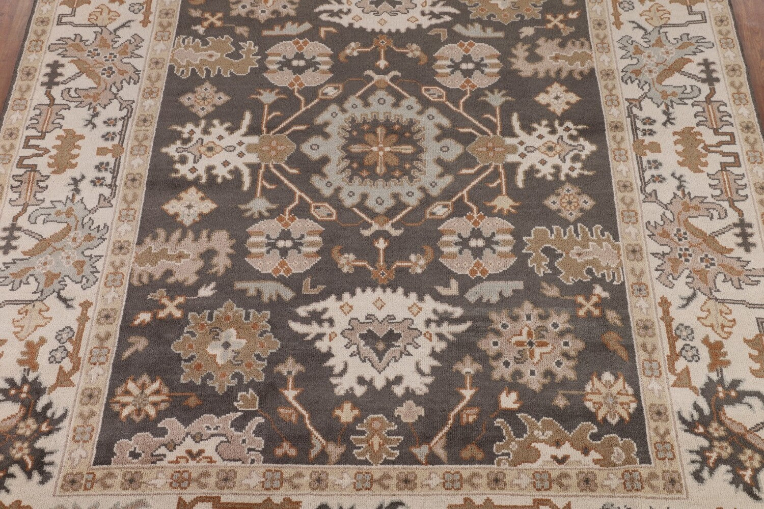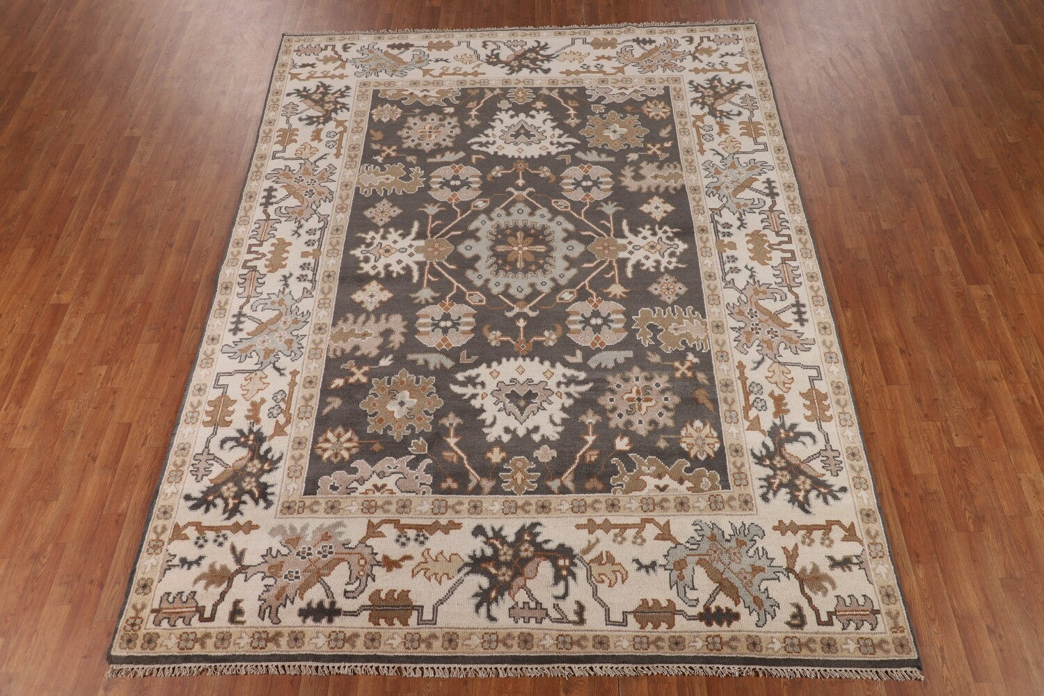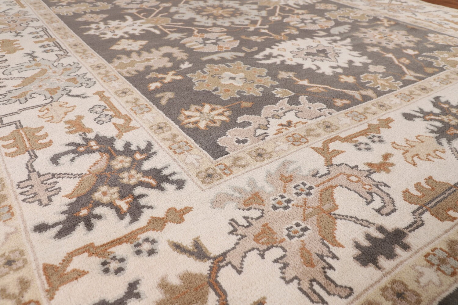 A Beautiful Genuine India Oushak rug is Hand Knotted by skillful weavers in India with 100% Wool Material. This rug is in New, First Quality condition. dimensions are 10' 3'' X 7' 10'' in foot and 312 X 239 in centimeter. the primary color is Greys & Charcoal.