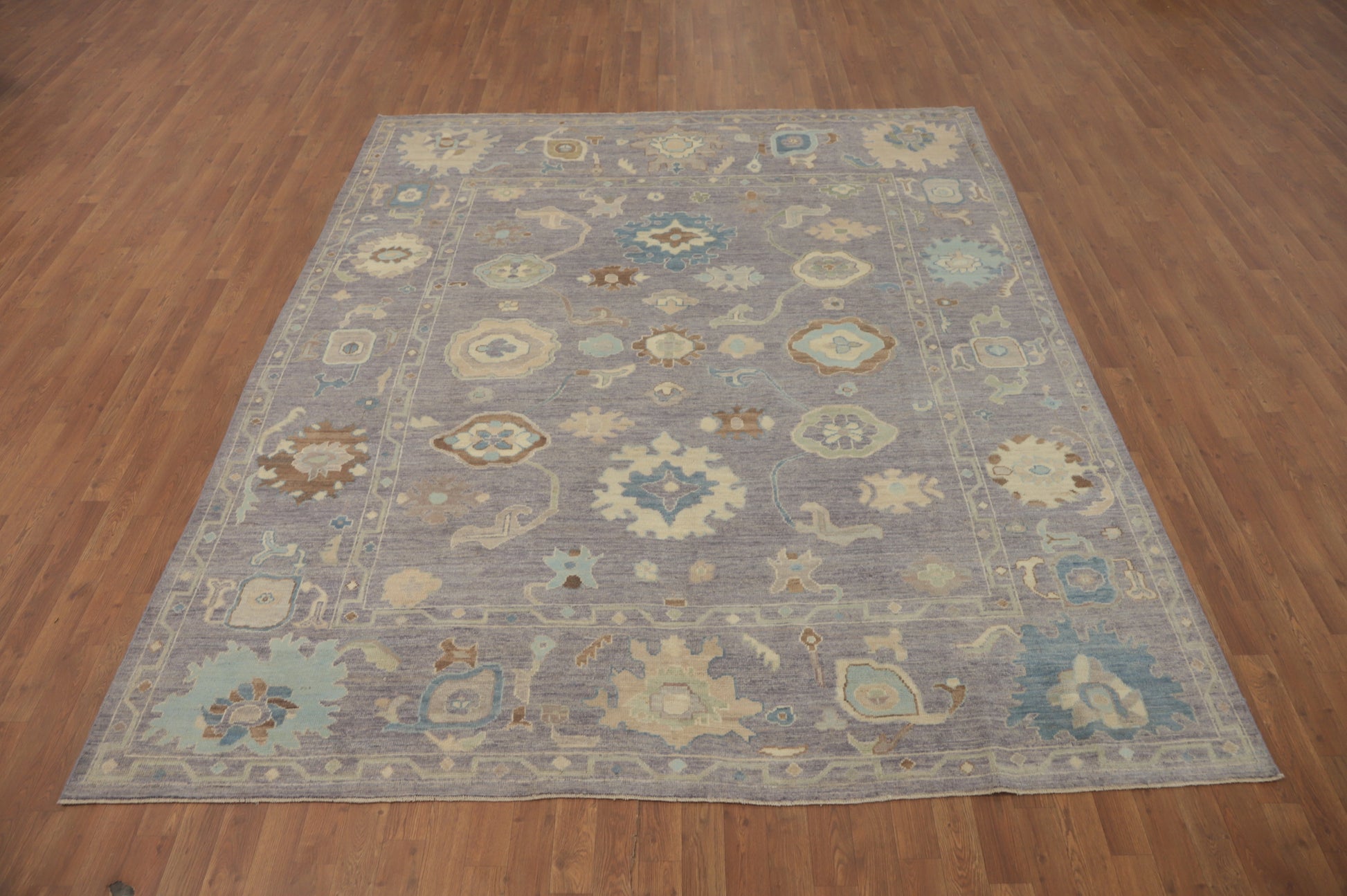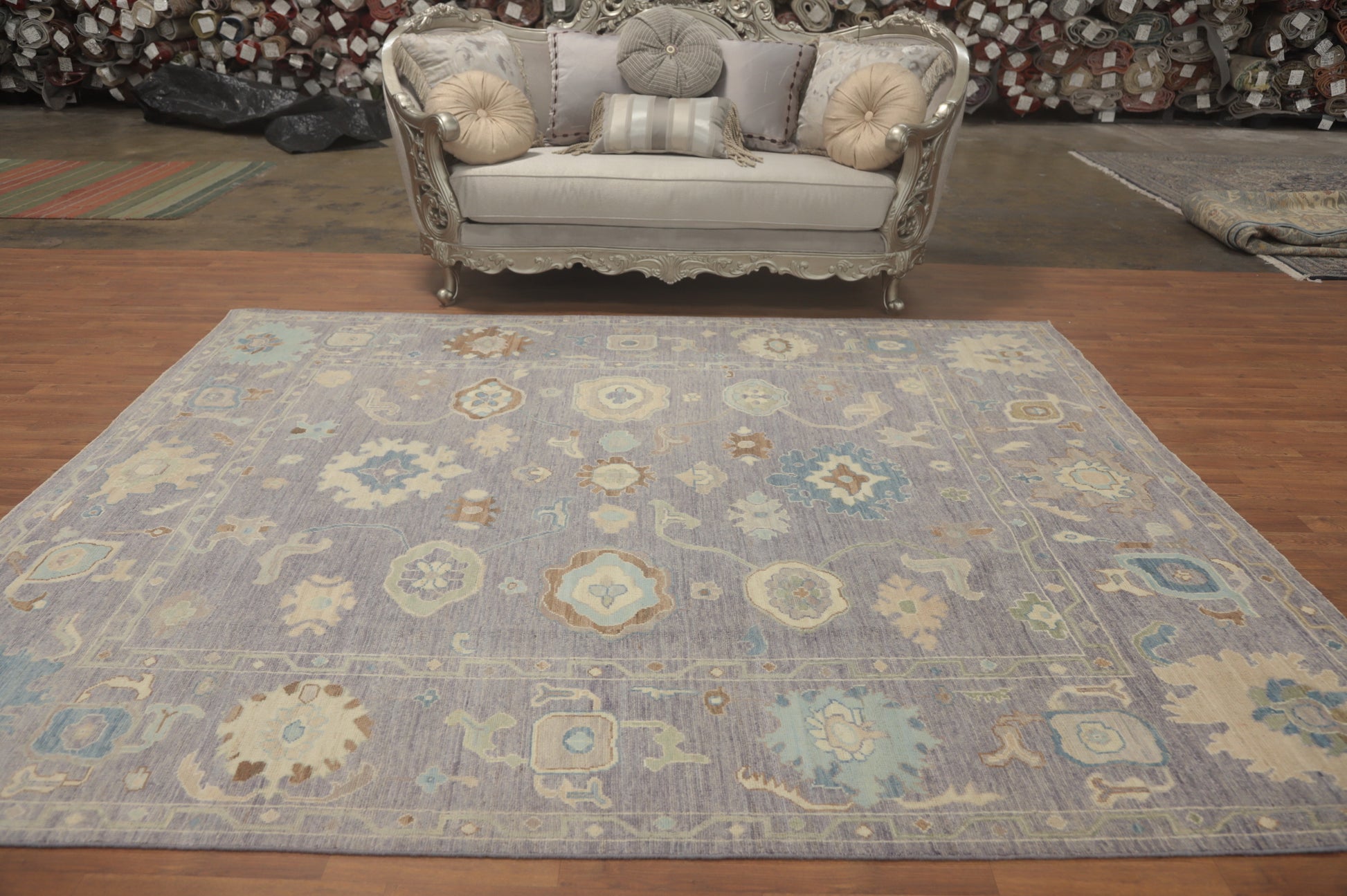 A Beautiful Genuine Turkey Oushak rug is Hand Knotted by skillful weavers in Turkey with 100% Wool Material. This rug is in New, First Quality condition. dimensions are 9' 7'' X 8' 1'' in foot and 292 X 246 in centimeter. the primary color is Purples.