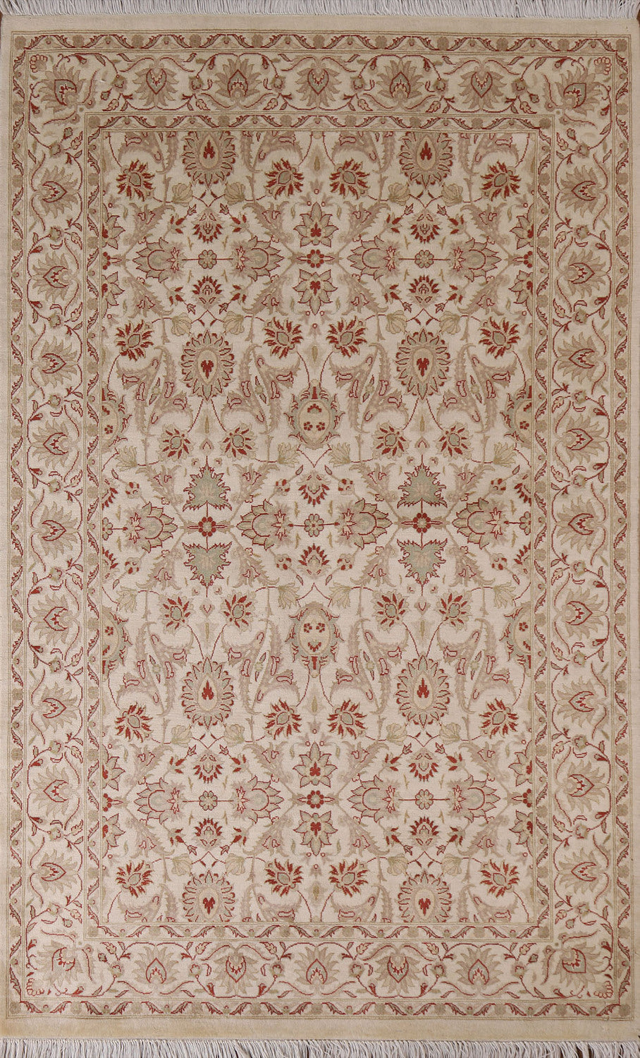 A Beautiful Genuine Pakistan Ziegler rug is Hand Knotted by skillful weavers in Pakistan with 100% Wool Material. This rug is in New, First Quality condition. dimensions are 6' 2'' X 4' 2'' in foot and 188 X 127 in centimeter. the primary color is Beige & Ivories.
