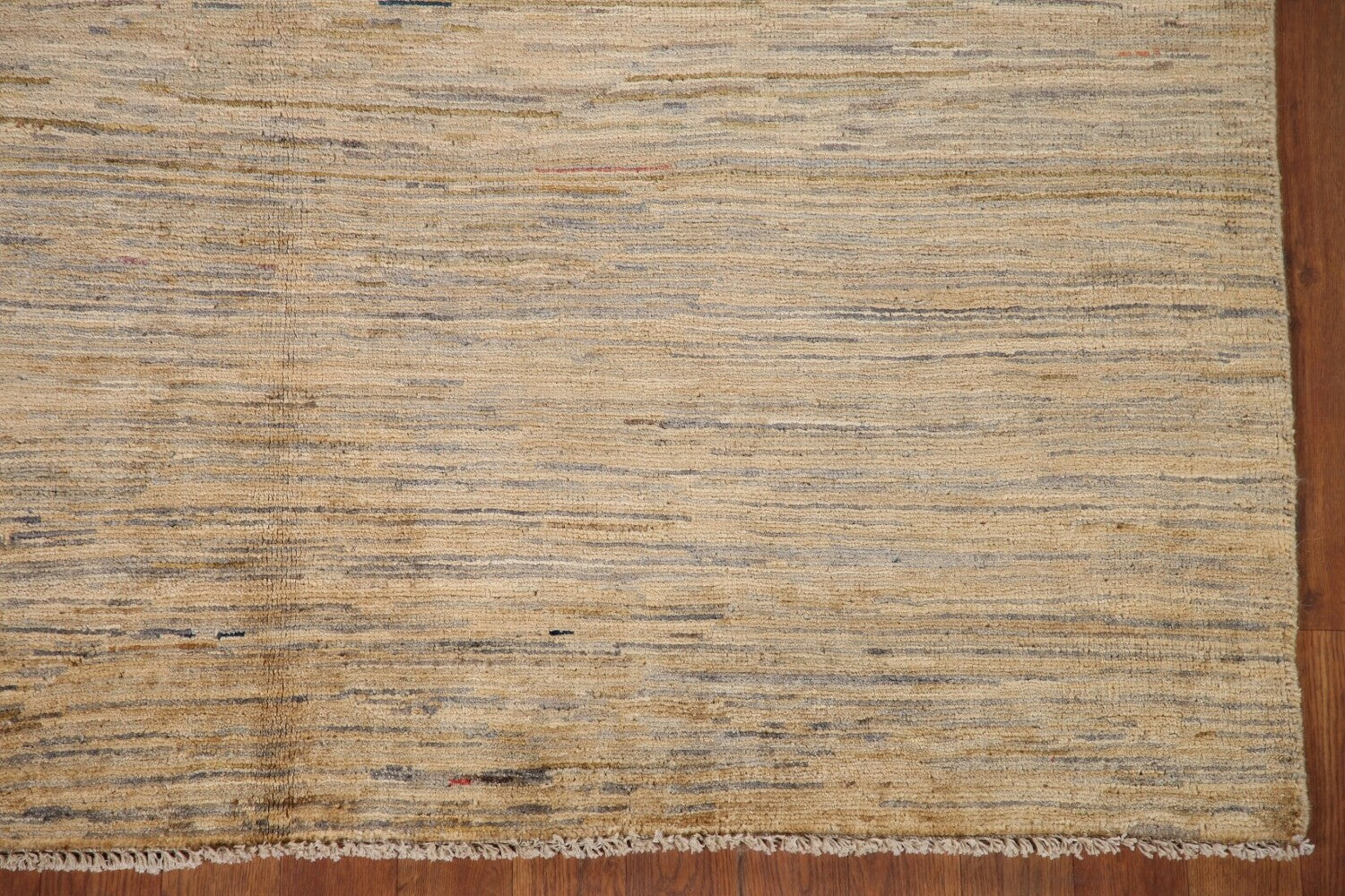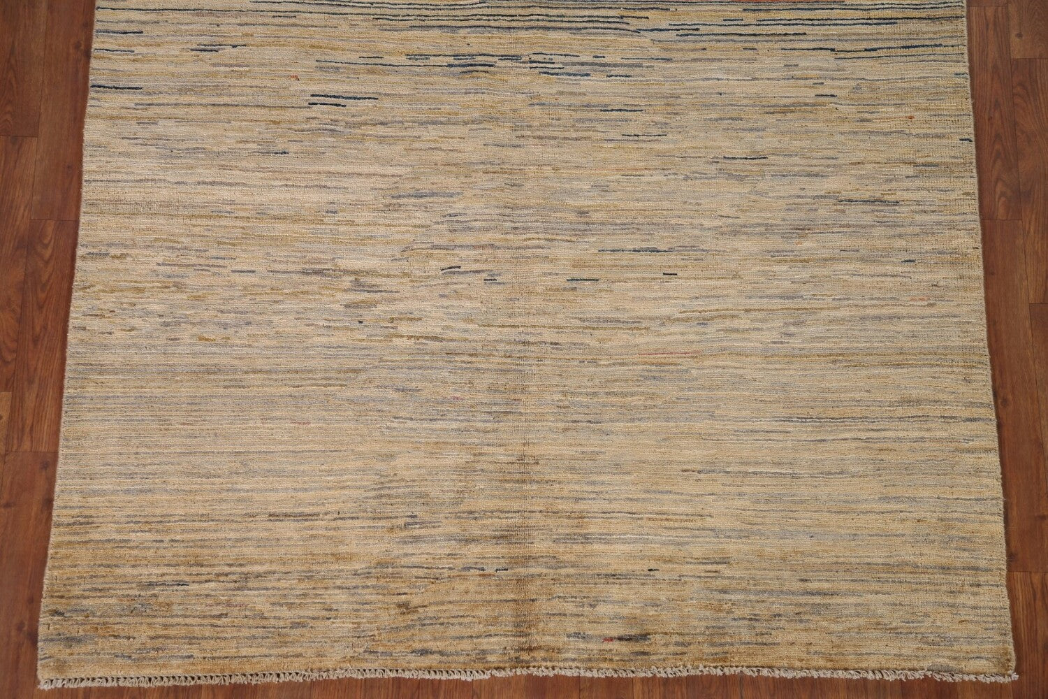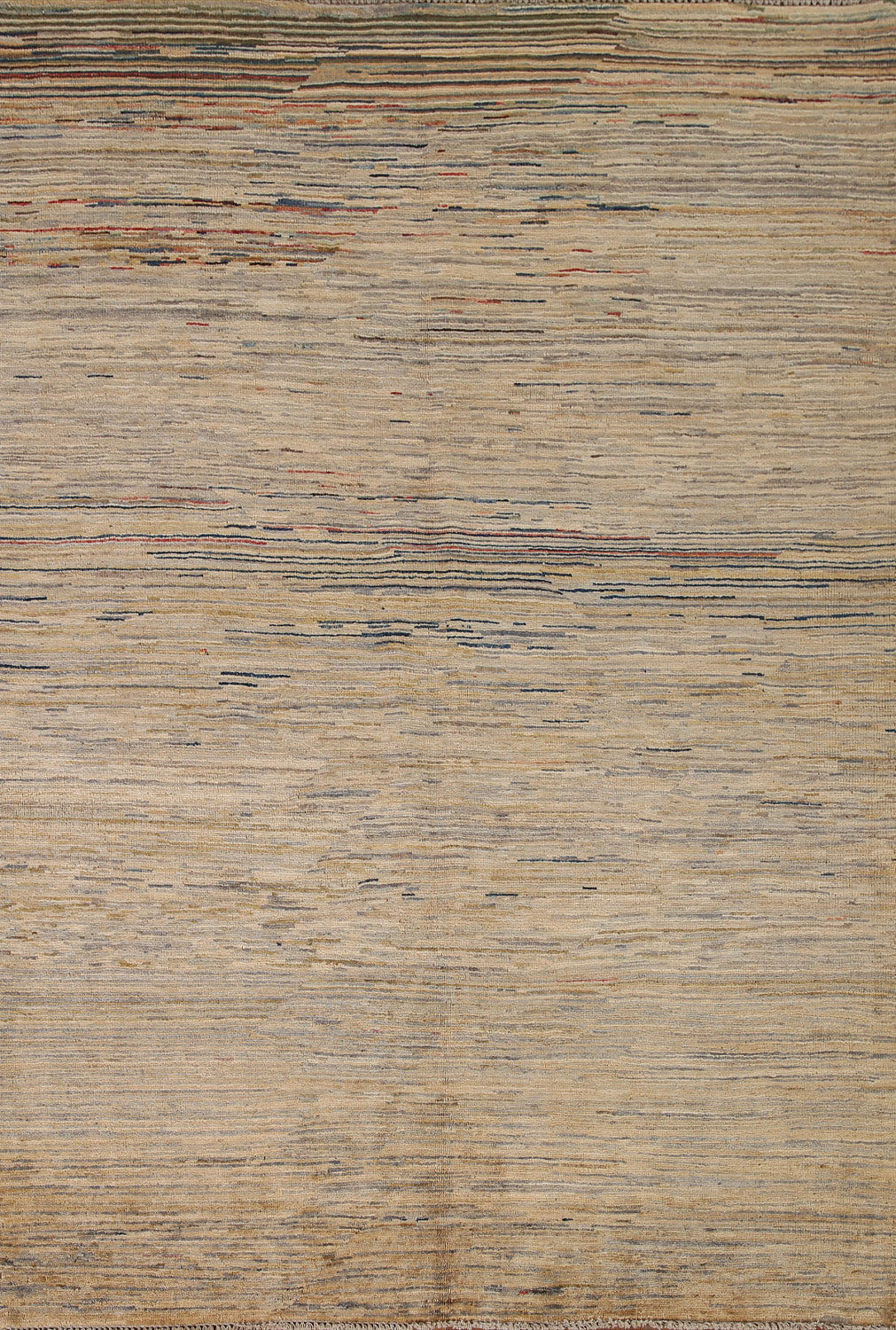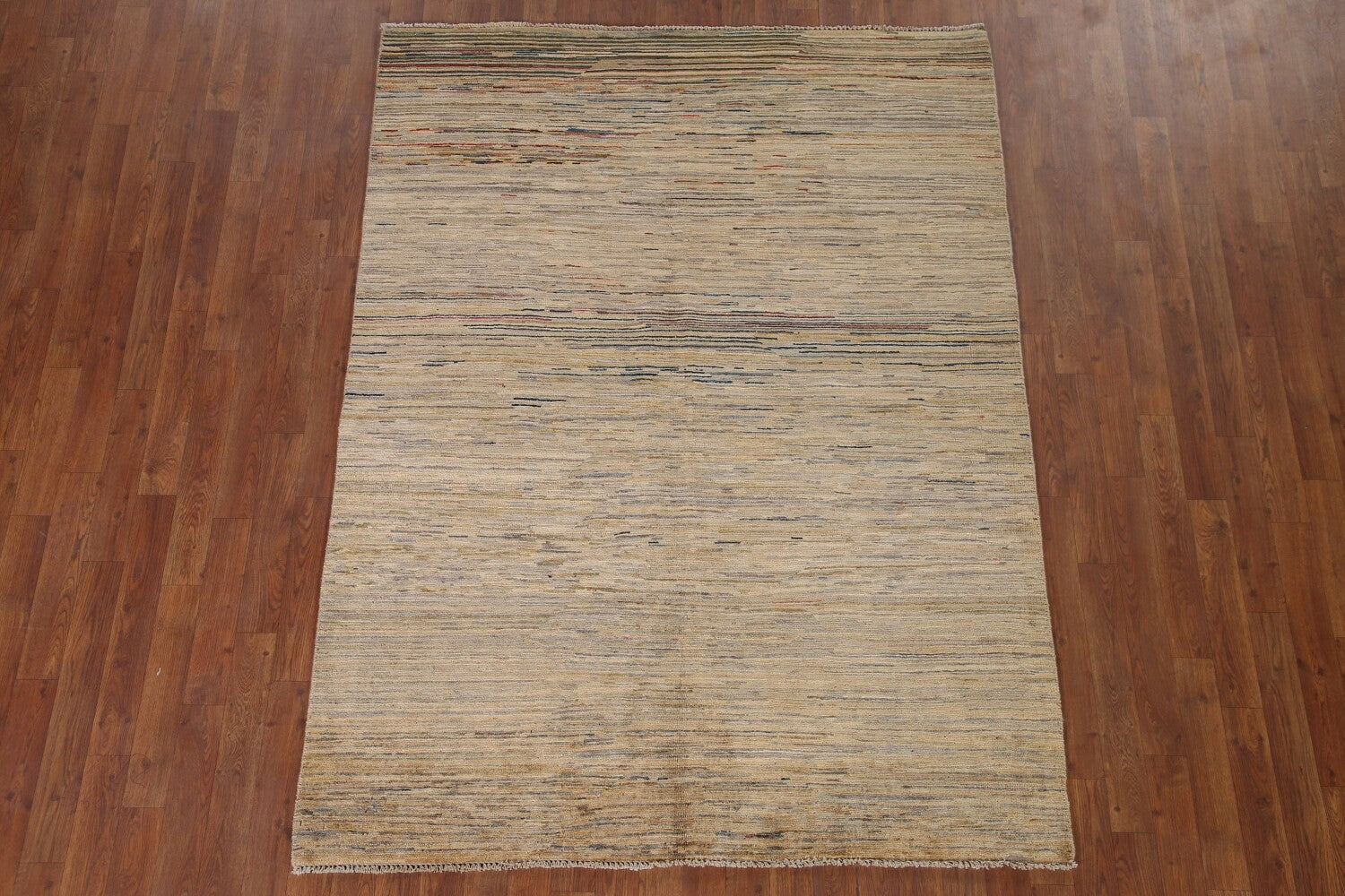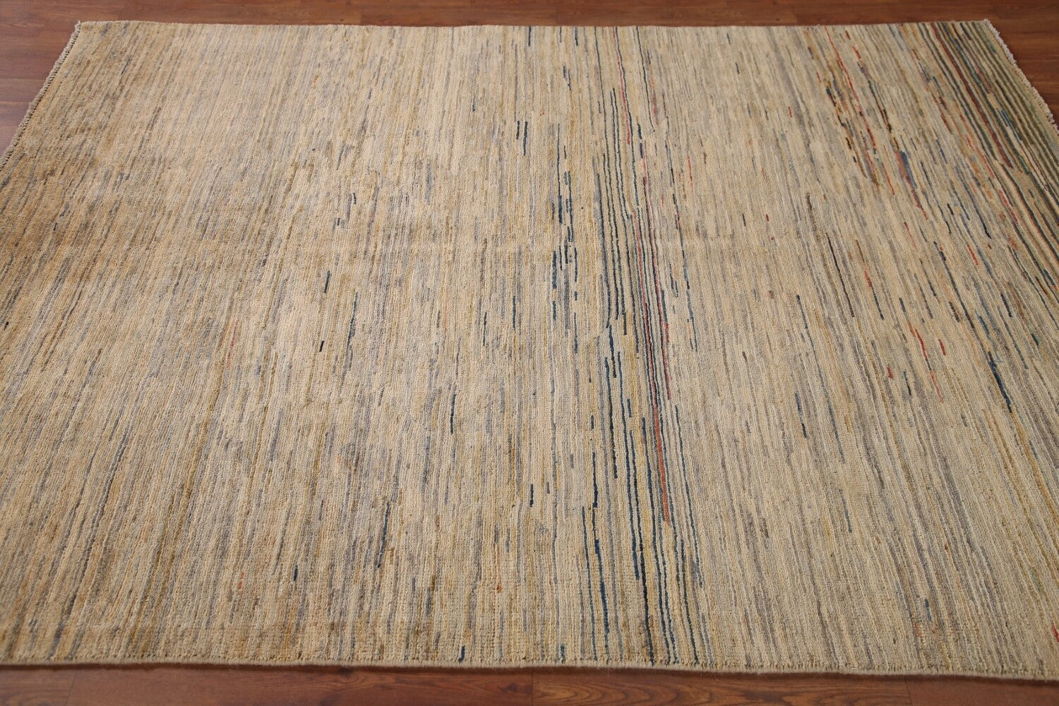 A Beautiful Genuine Pakistan Gabbeh (kashkoli) rug is Hand Knotted by skillful weavers in Pakistan with 100% Wool Material. This rug is in New, First Quality condition. dimensions are 6' 7'' X 4' 11'' in foot and 201 X 150 in centimeter. the primary color is Beige & Ivories.