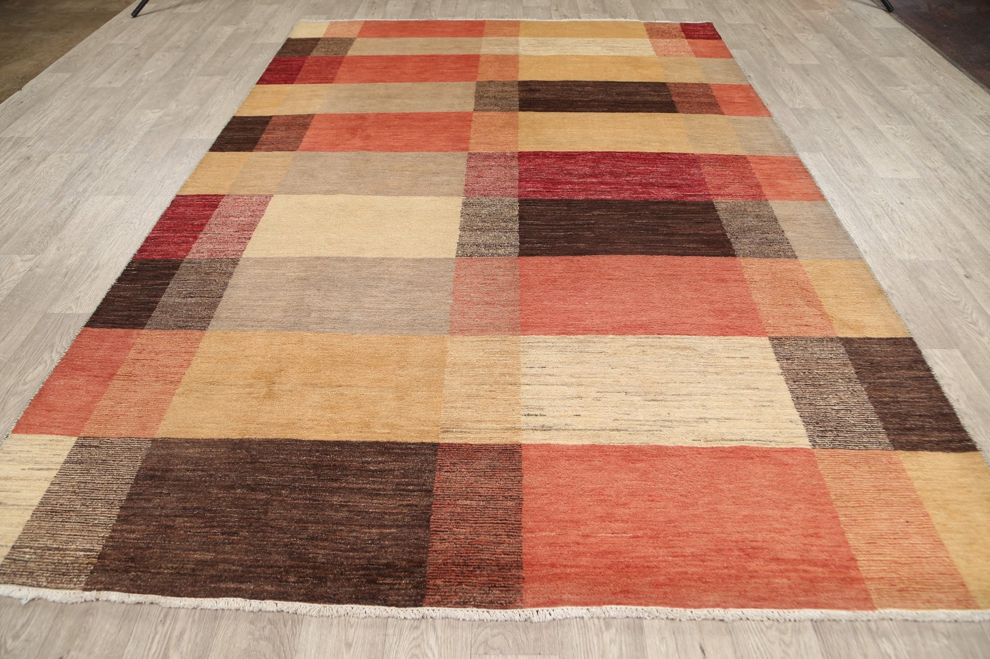 A Beautiful Genuine Pakistan Gabbeh (kashkoli) rug is Hand Knotted by skillful weavers in Pakistan with 100% Wool Material. This rug is in New, First Quality condition. dimensions are 9' 8'' X 6' 7'' in foot and 295 X 201 in centimeter. the primary color is Multi-Colored.