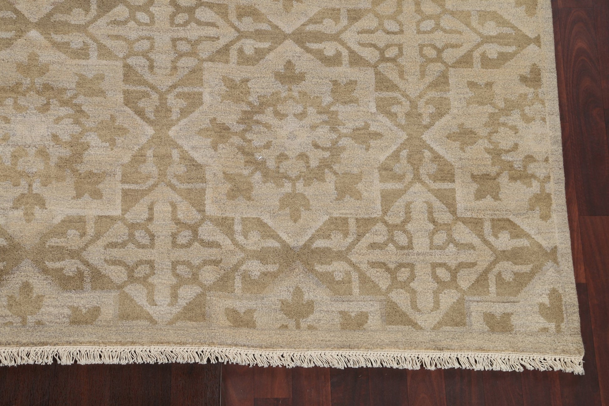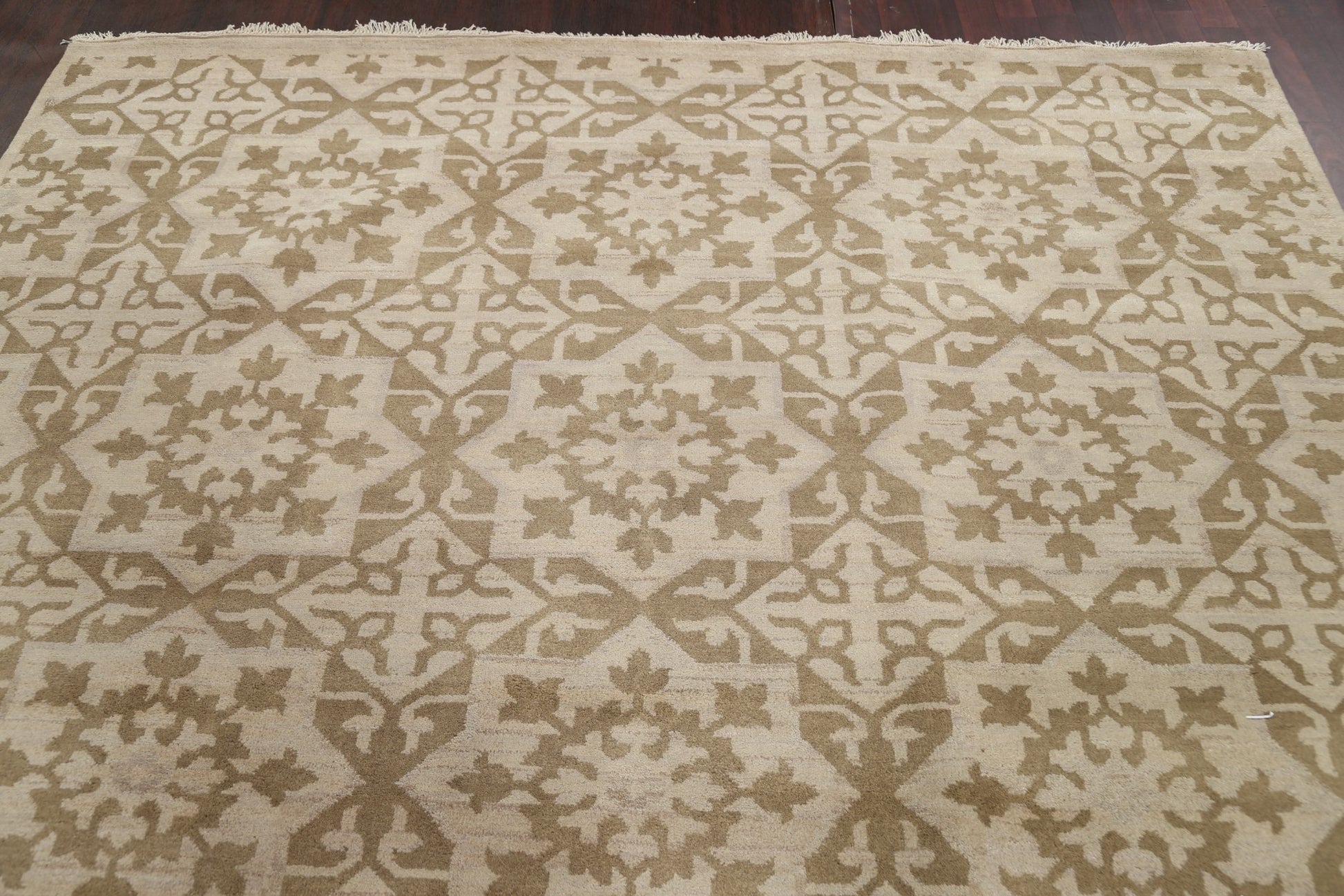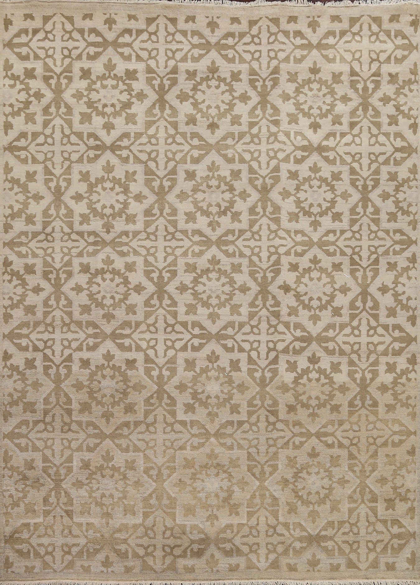 A Beautiful Genuine India Abstract rug is Hand Knotted by skillful weavers in India with 100% Wool Material. This rug is in New, First Quality condition. dimensions are 9' 11'' X 8' 0'' in foot and 302 X 244 in centimeter. the primary color is Beige & Ivories.