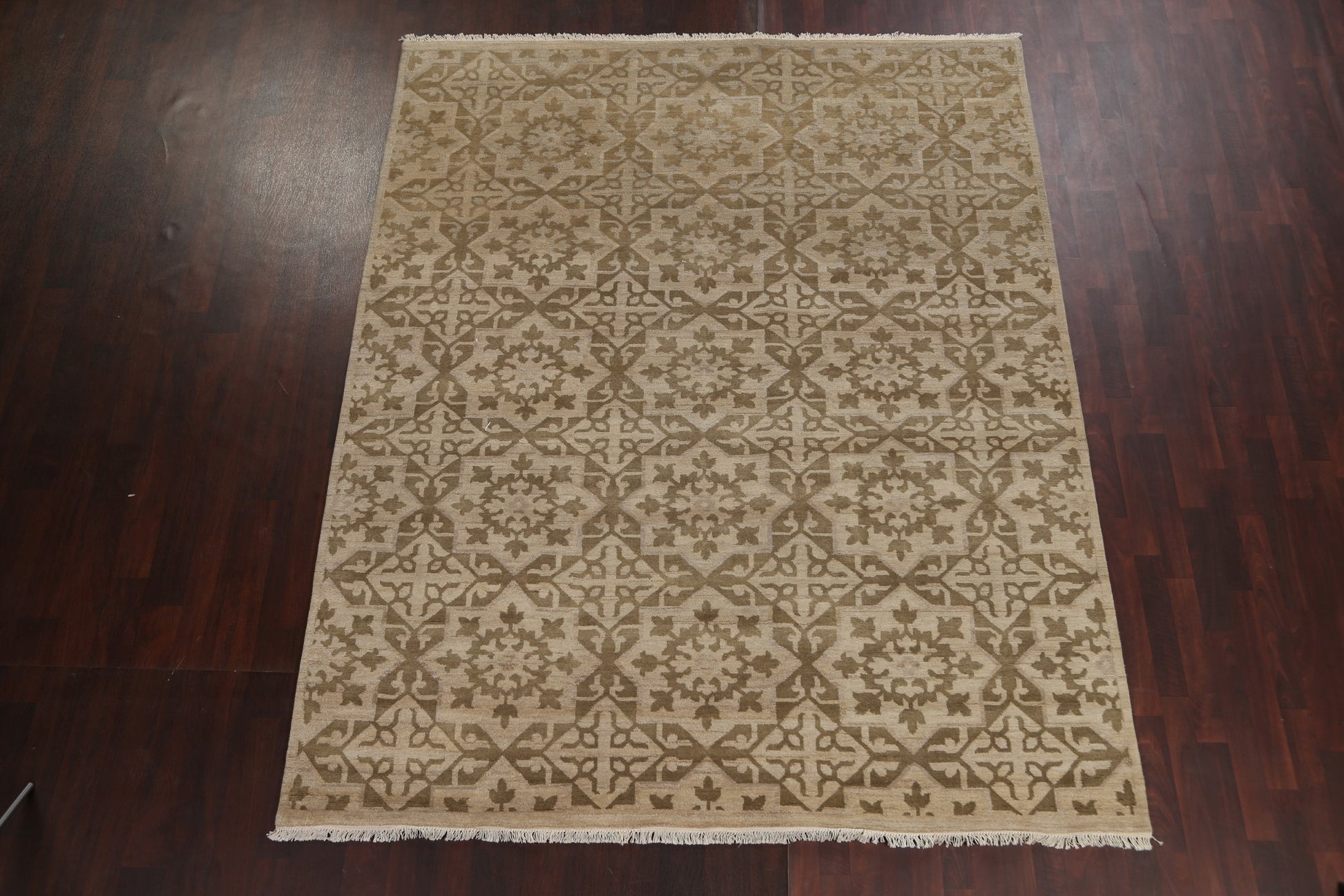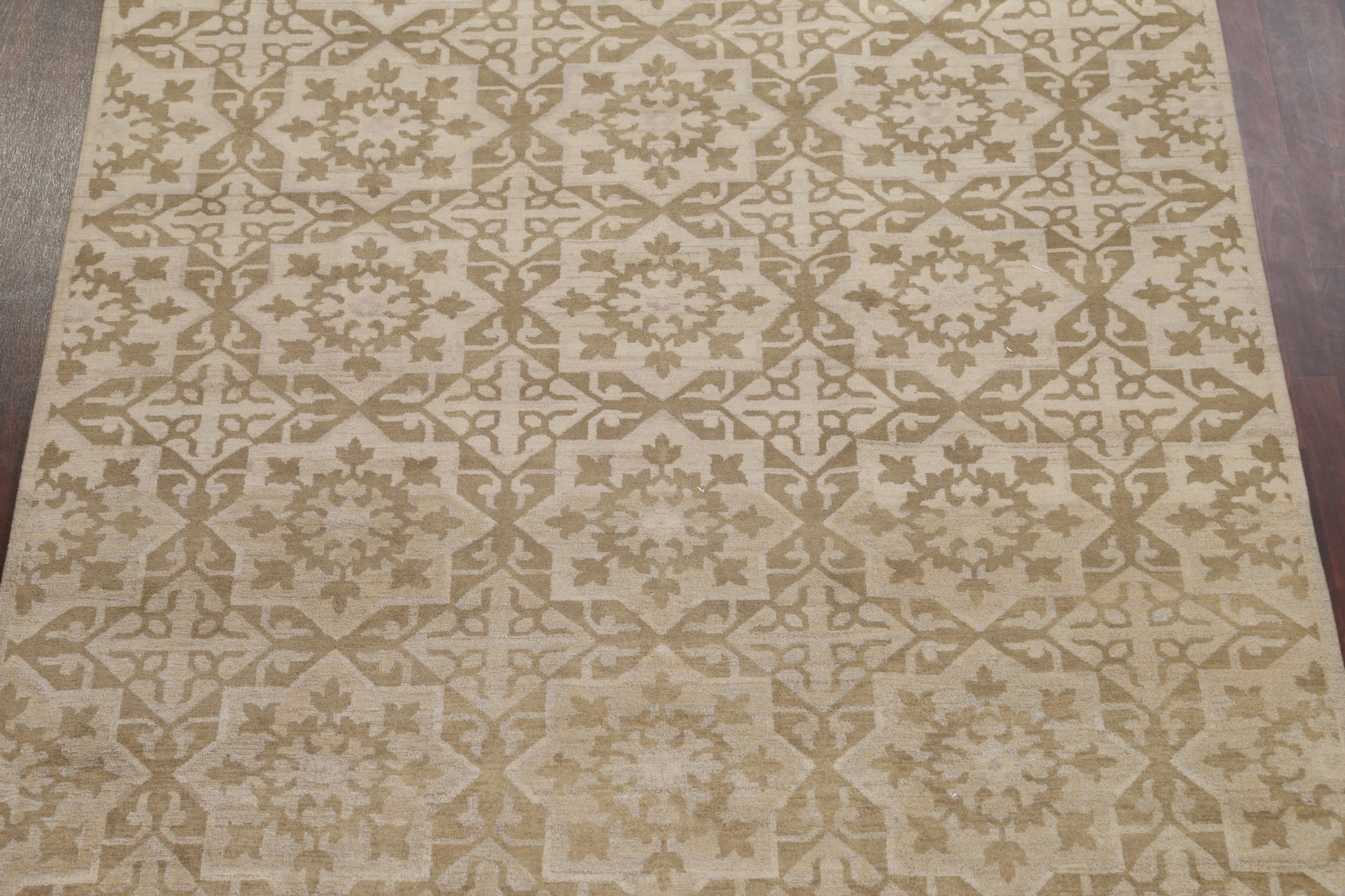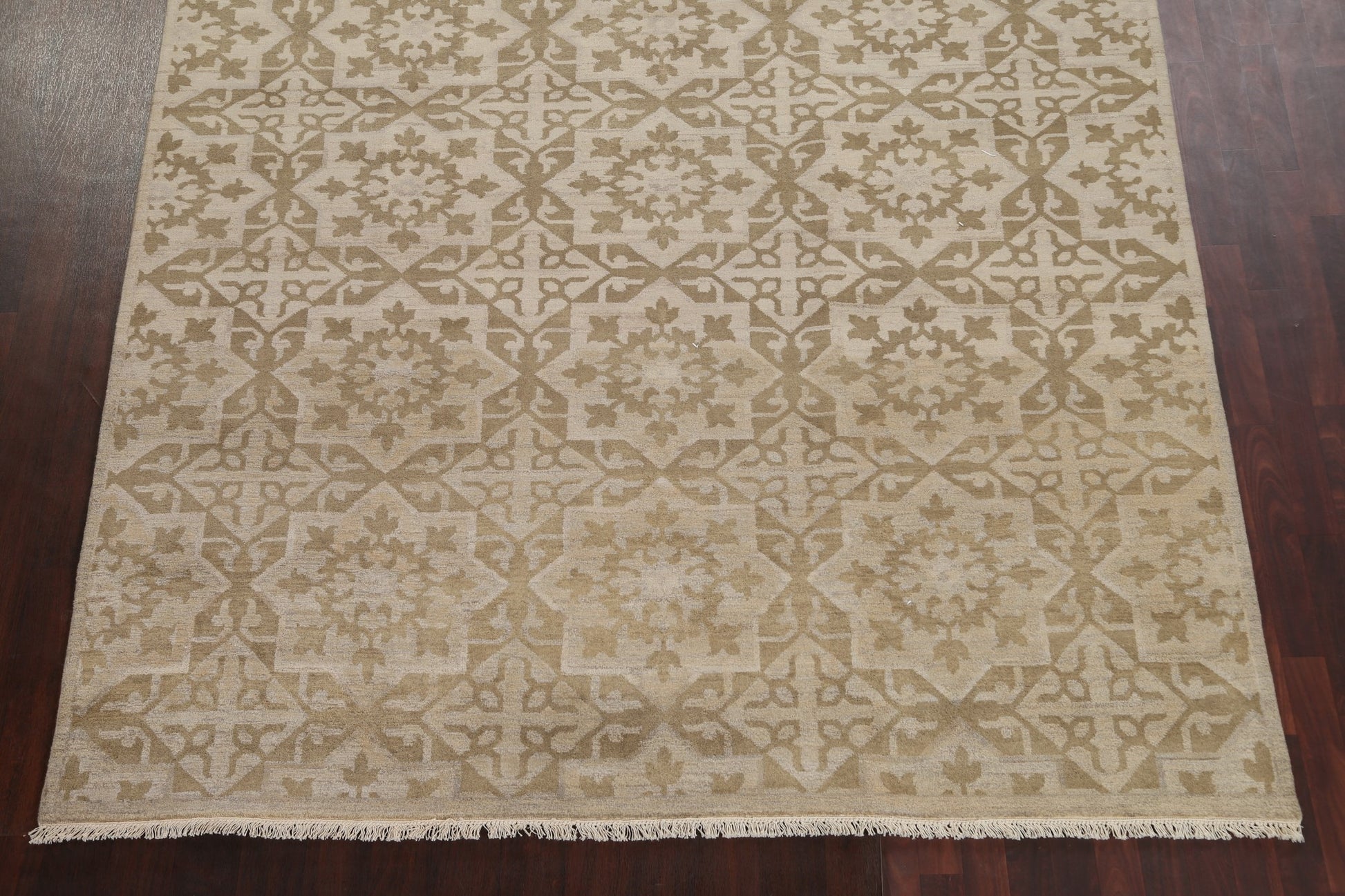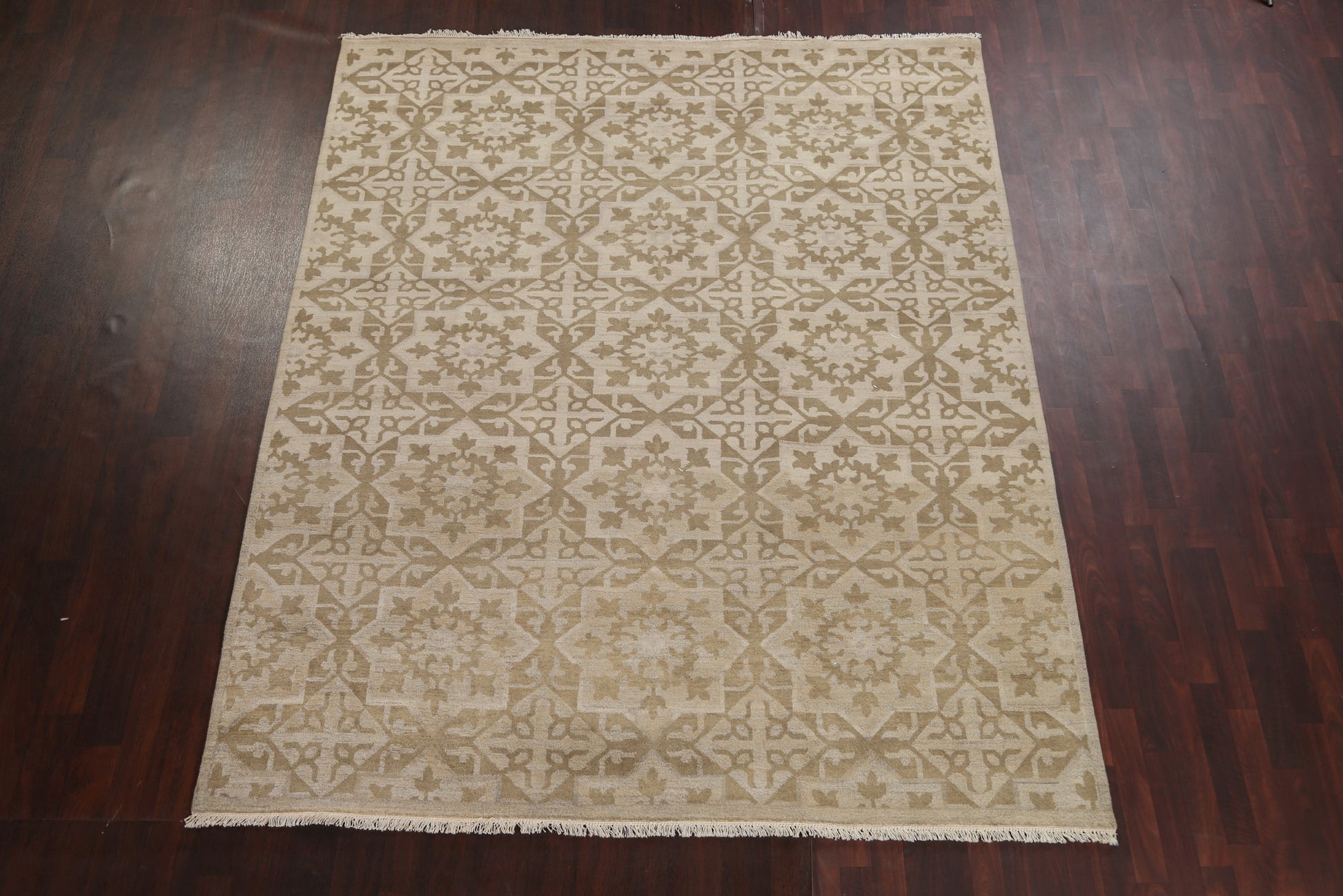 A Beautiful Genuine India Abstract rug is Hand Knotted by skillful weavers in India with 100% Wool Material. This rug is in New, First Quality condition. dimensions are 9' 11'' X 8' 0'' in foot and 302 X 244 in centimeter. the primary color is Beige & Ivories.
