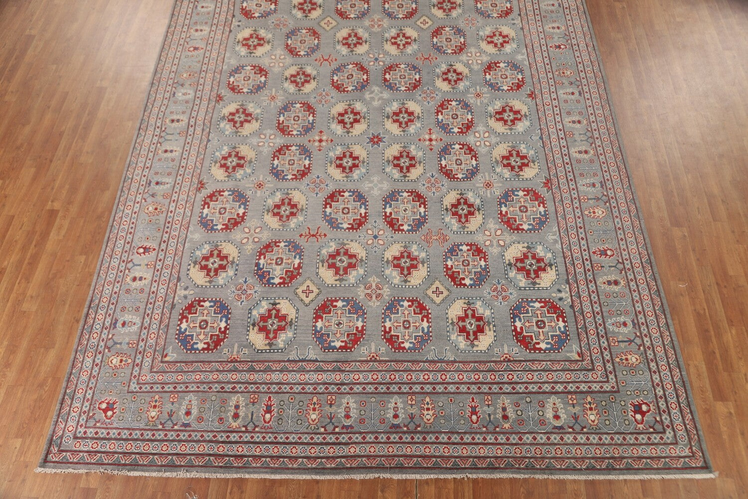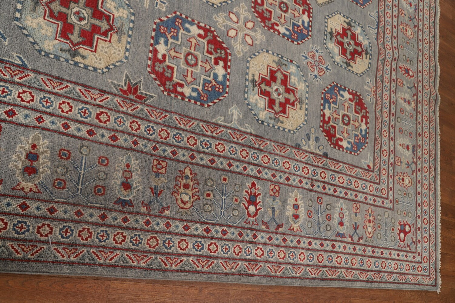 A Beautiful Genuine Pakistan Kazak rug is Hand Knotted by skillful weavers in Pakistan with 100% Wool Material. This rug is in New, First Quality condition. dimensions are 13' 2'' X 10' 0'' in foot and 401 X 305 in centimeter. the primary color is Greys & Charcoal.