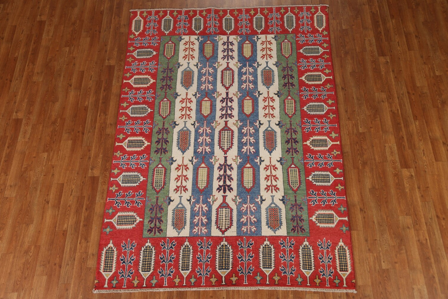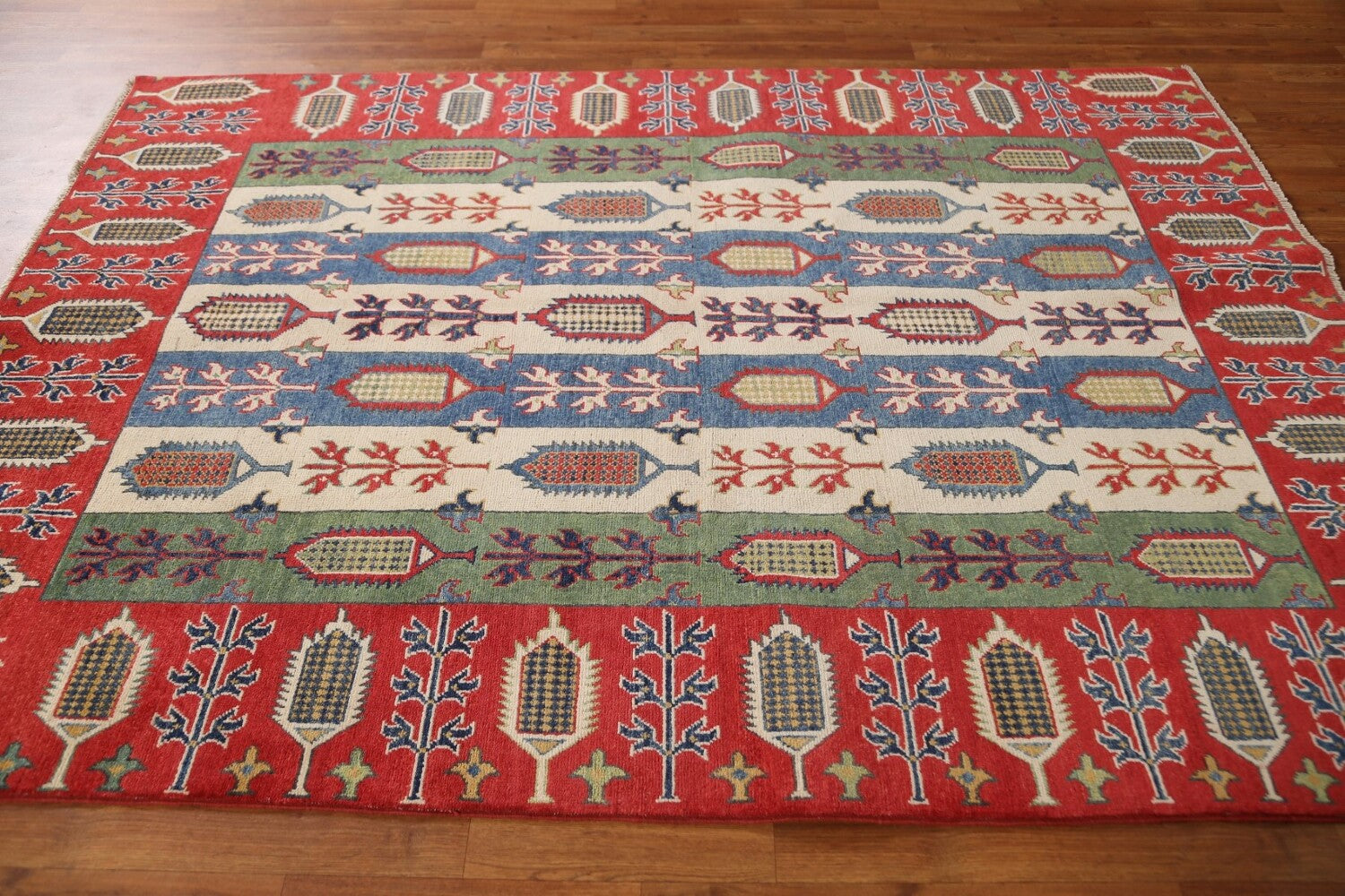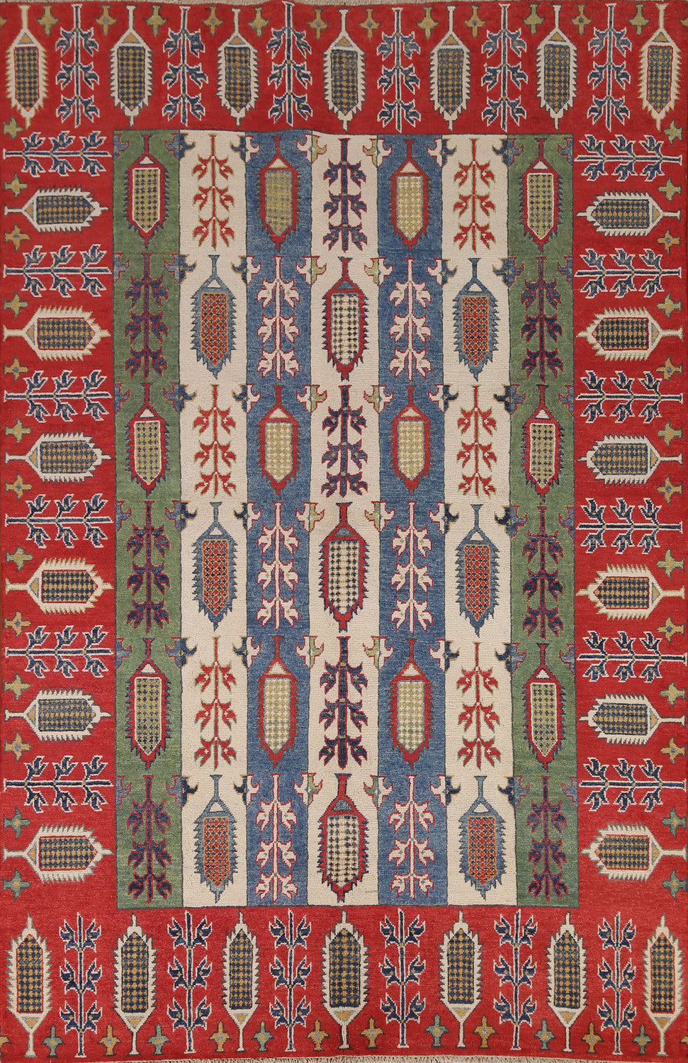 All-Over Geometric Kazak Oriental Area Rug 6x8