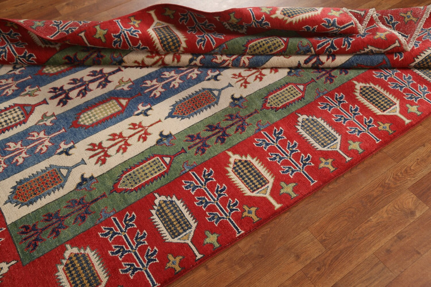 A Beautiful Genuine Pakistan Kazak rug is Hand Knotted by skillful weavers in Pakistan with 100% Wool Material. This rug is in New, First Quality condition. dimensions are 7' 9'' X 5' 7'' in foot and 236 X 170 in centimeter. the primary color is Beige & Ivories.