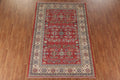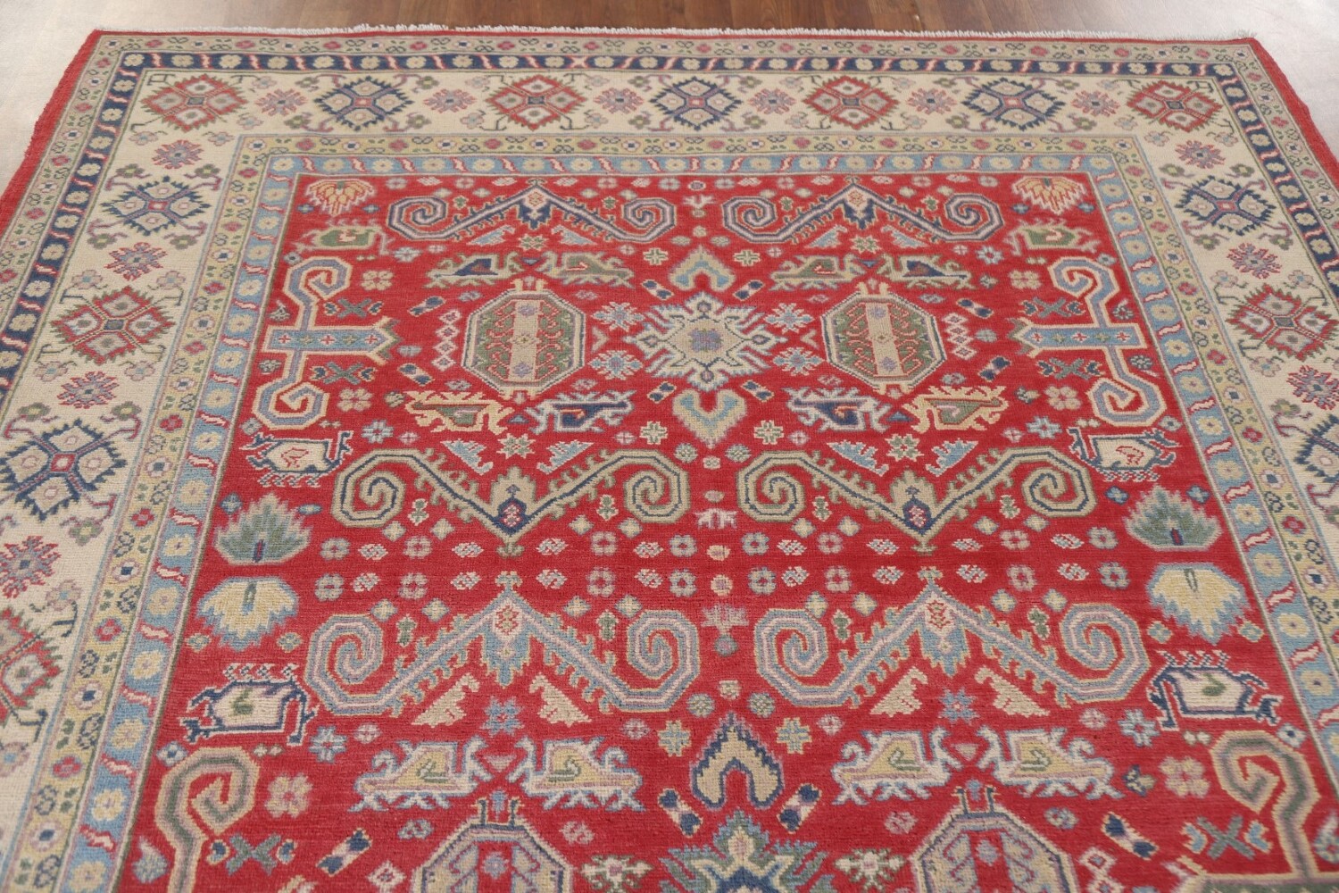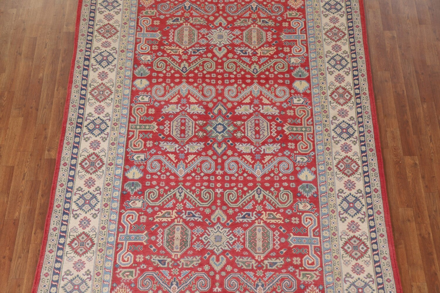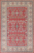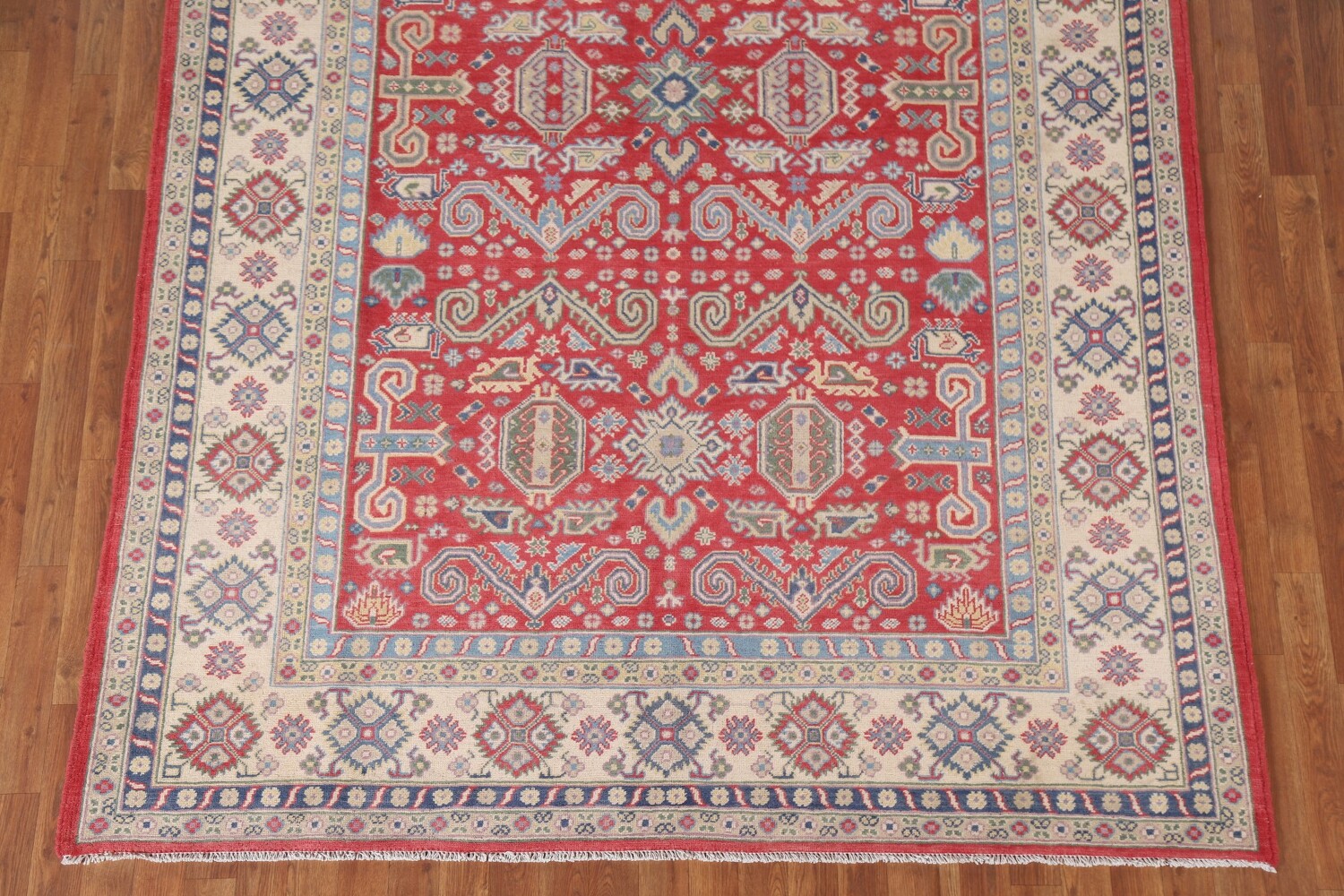 All-Over Geometric Kazak Red Wool Area Rug 7x10