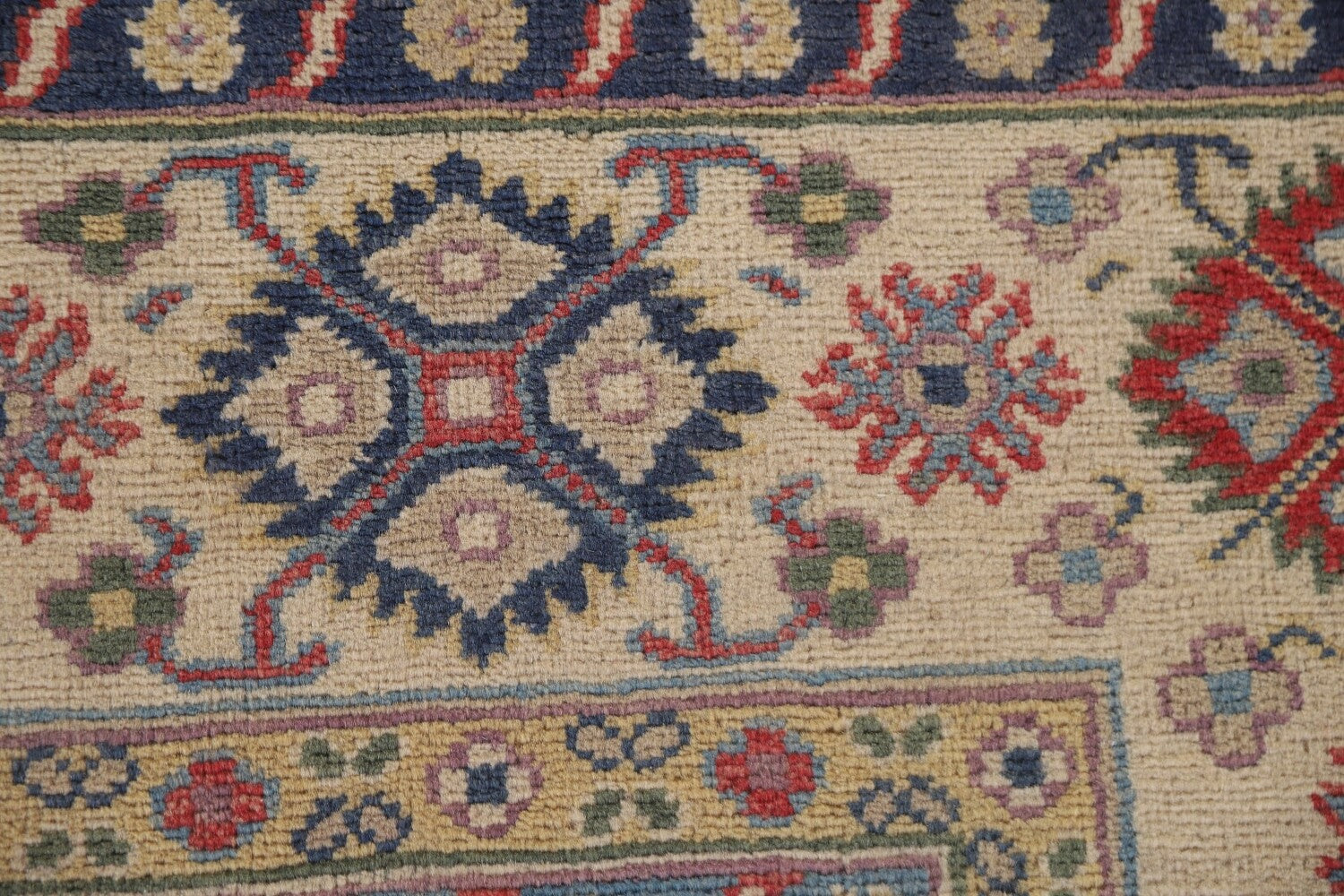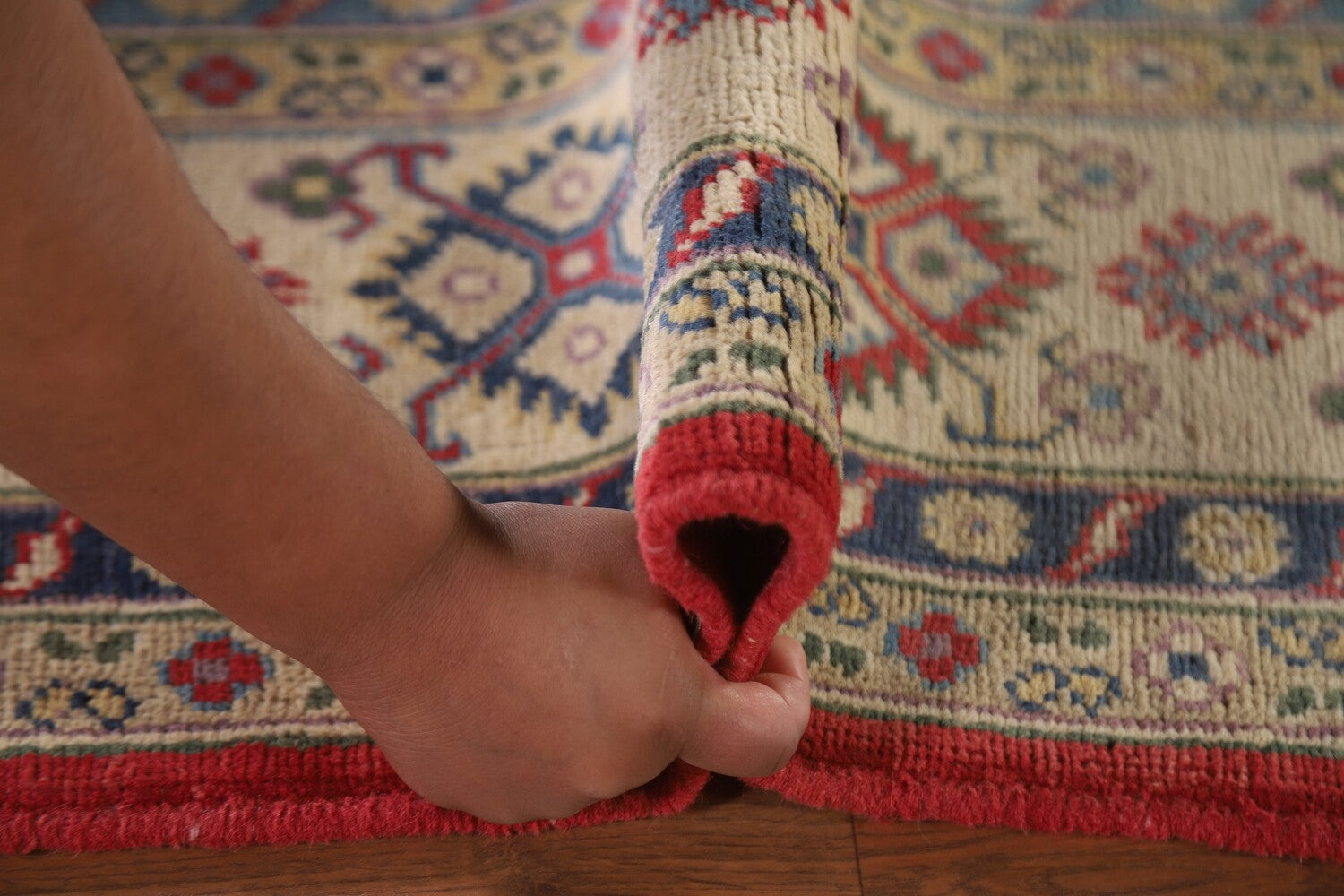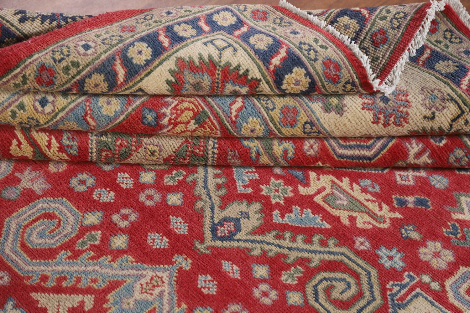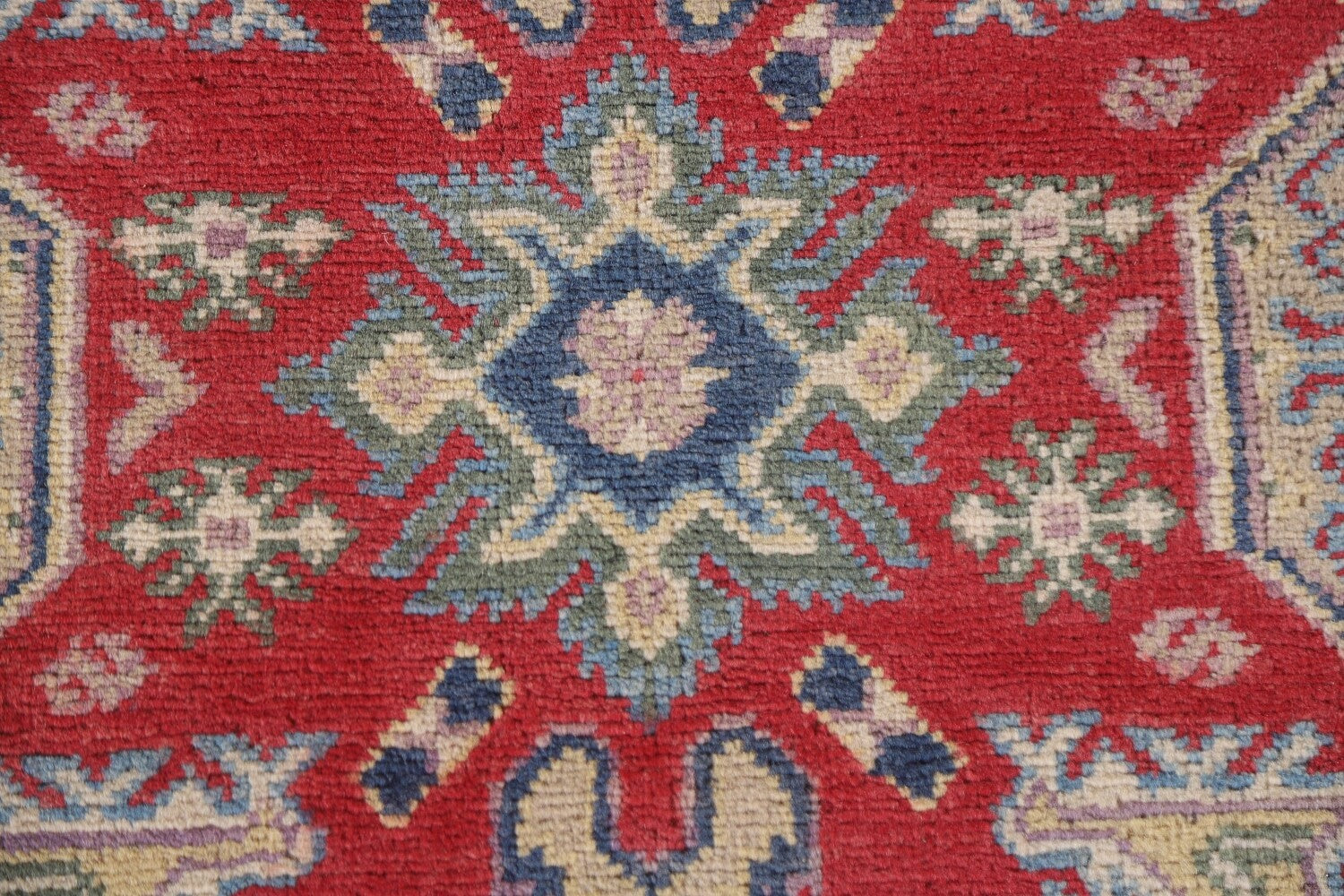 A Beautiful Genuine Pakistan Kazak rug is Hand Knotted by skillful weavers in Pakistan with 100% Wool Material. This rug is in New, First Quality condition. dimensions are 9' 9'' X 6' 7'' in foot and 297 X 201 in centimeter. the primary color is Red.