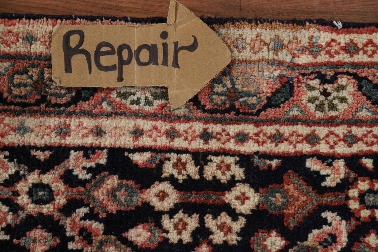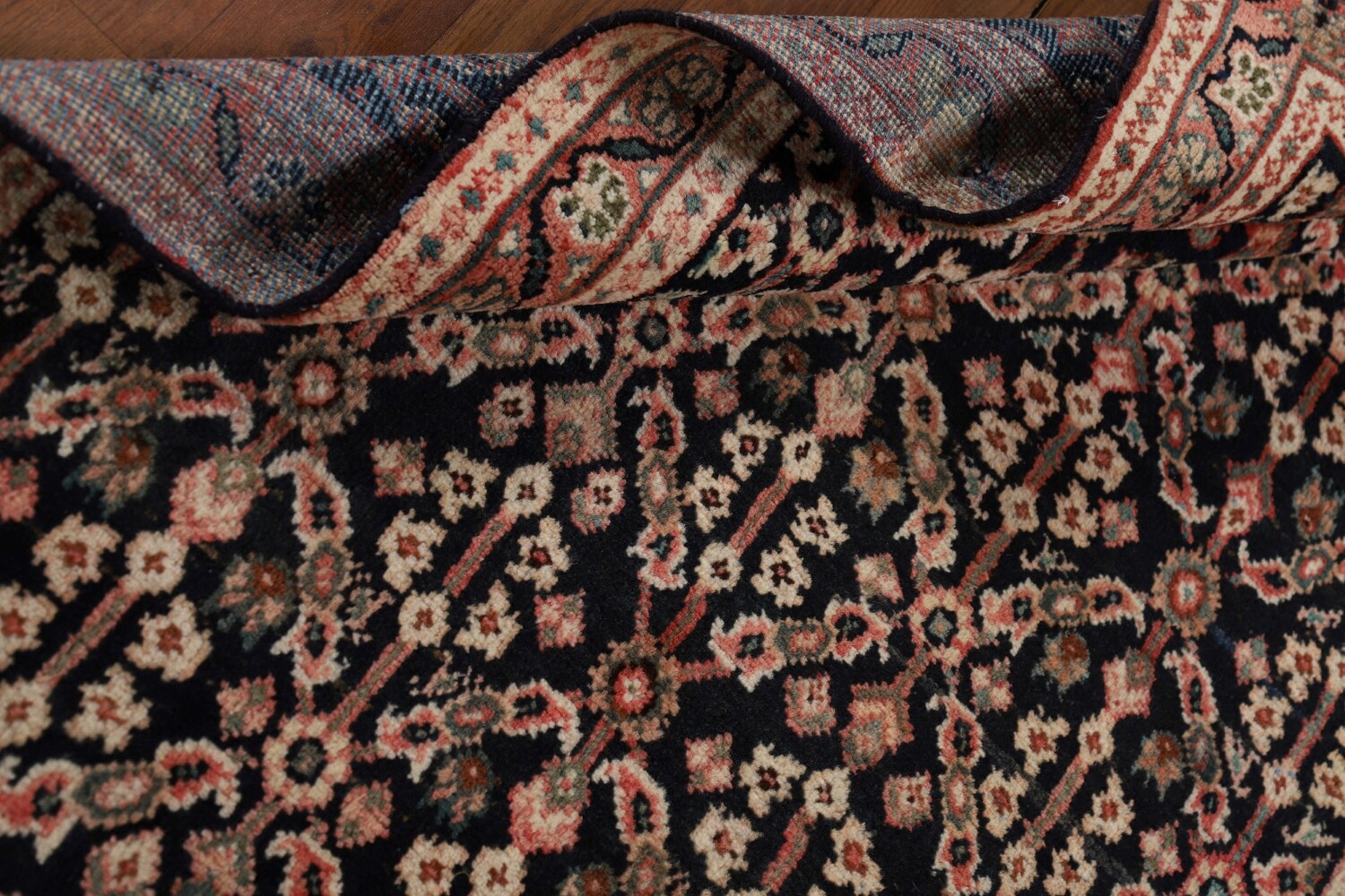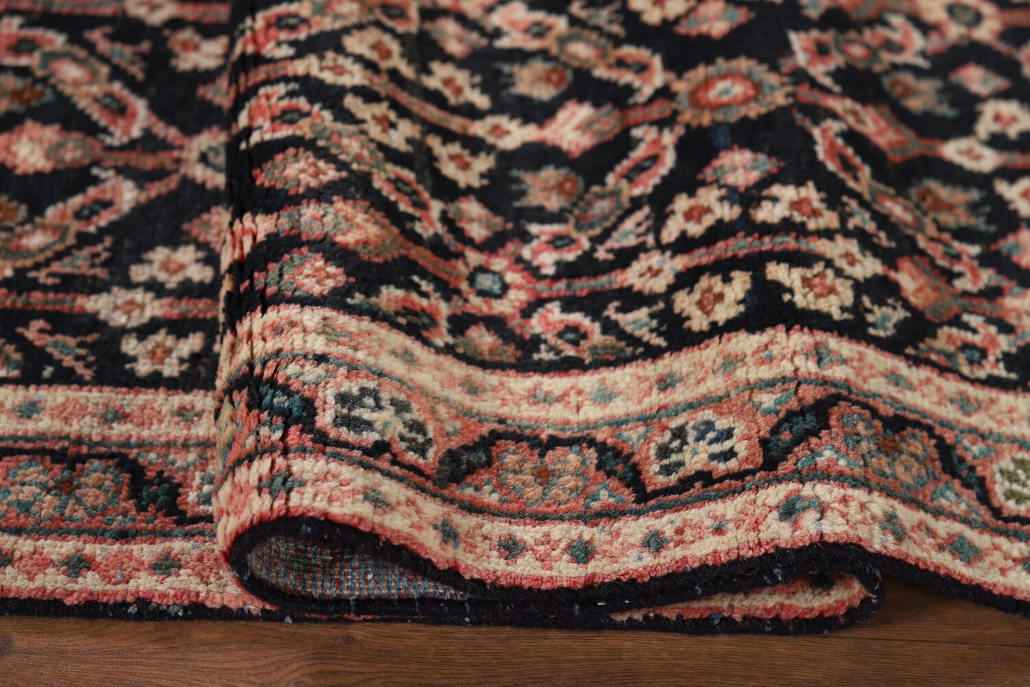 A Beautiful Genuine Persia ( Persia ) Mahal rug is Hand Knotted by skillful weavers in Persia ( Persia ) with 100% Wool Material. This rug is in Very Good (Repair) condition. dimensions are 11' 1'' X 3' 5'' in foot and 338 X 104 in centimeter. the primary color is Black.