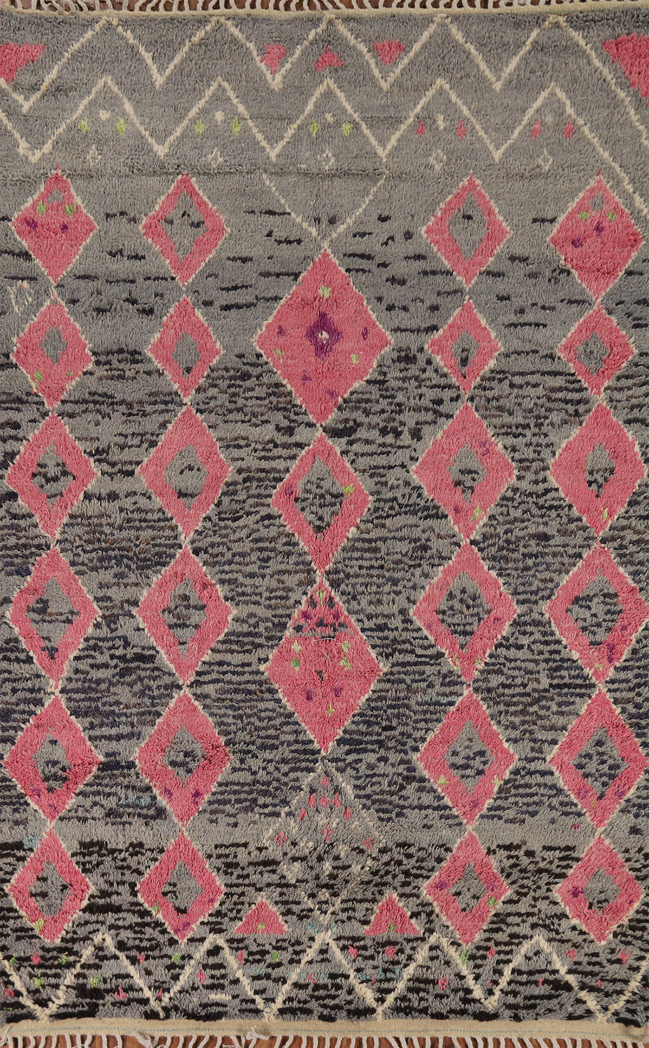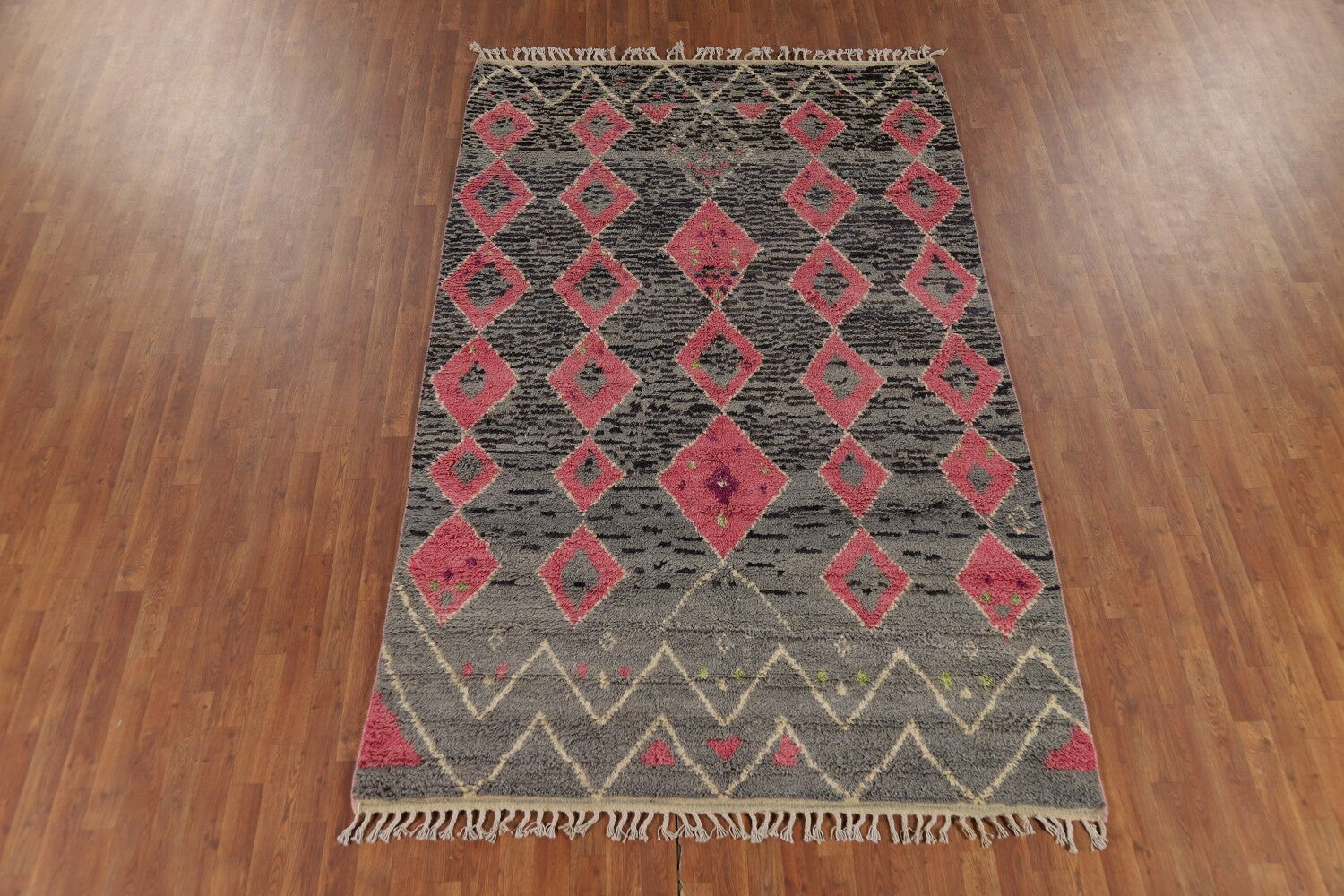 A Beautiful Genuine Pakistan Moroccan rug is Hand Knotted by skillful weavers in Pakistan with 100% Wool Material. This rug is in condition. dimensions are 9' 7'' X 5' 10'' in foot and 292 X 178 in centimeter. the primary color is Greys & Charcoal.