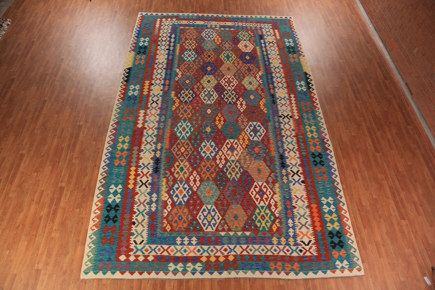 All-Over Geometric Wool Kilim Oriental Large Rug 10x16