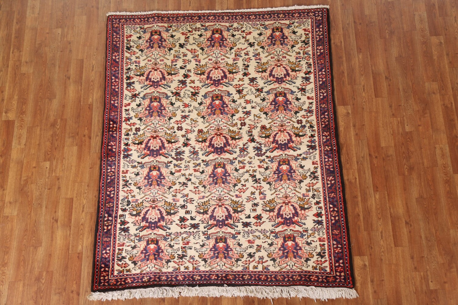 A Beautiful Genuine Persia ( Persia ) Gharajeh rug is Hand Knotted by skillful weavers in Persia ( Persia ) with 100% Wool Material. This rug is in Very Good condition. dimensions are 6' 4'' X 5' 1'' in foot and 193 X 155 in centimeter. the primary color is Beige & Ivories.