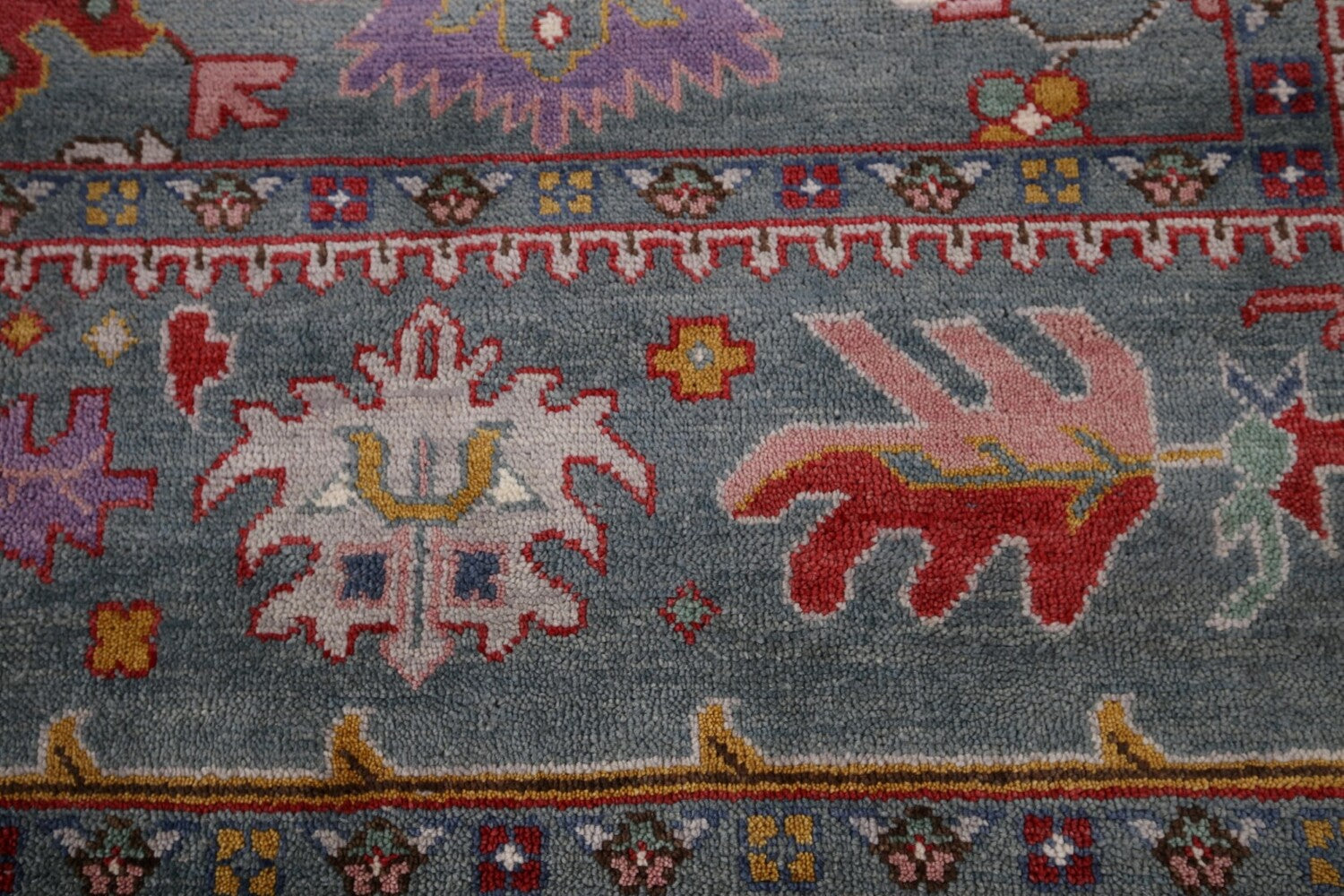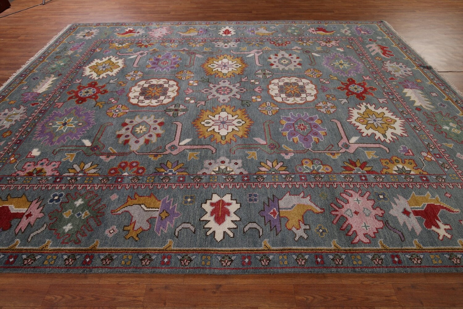 A Beautiful Genuine India Oushak rug is Hand Knotted by skillful weavers in India with 100% Wool Material. This rug is in New, First Quality condition. dimensions are 11' 7'' X 9' 3'' in foot and 353 X 282 in centimeter. the primary color is Greys & Charcoal.