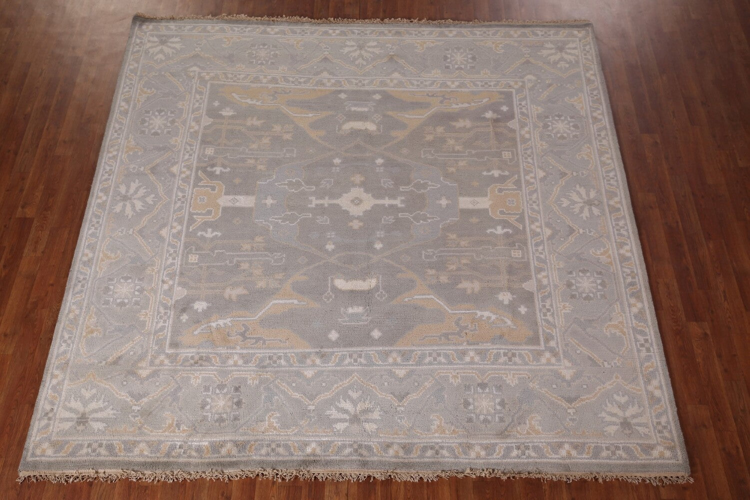 All-Over Gray Wool Oushak Indian Square Rug 8x8