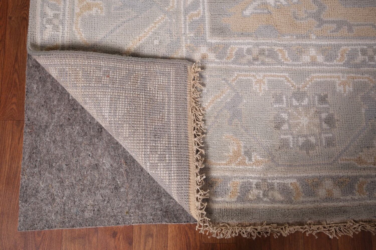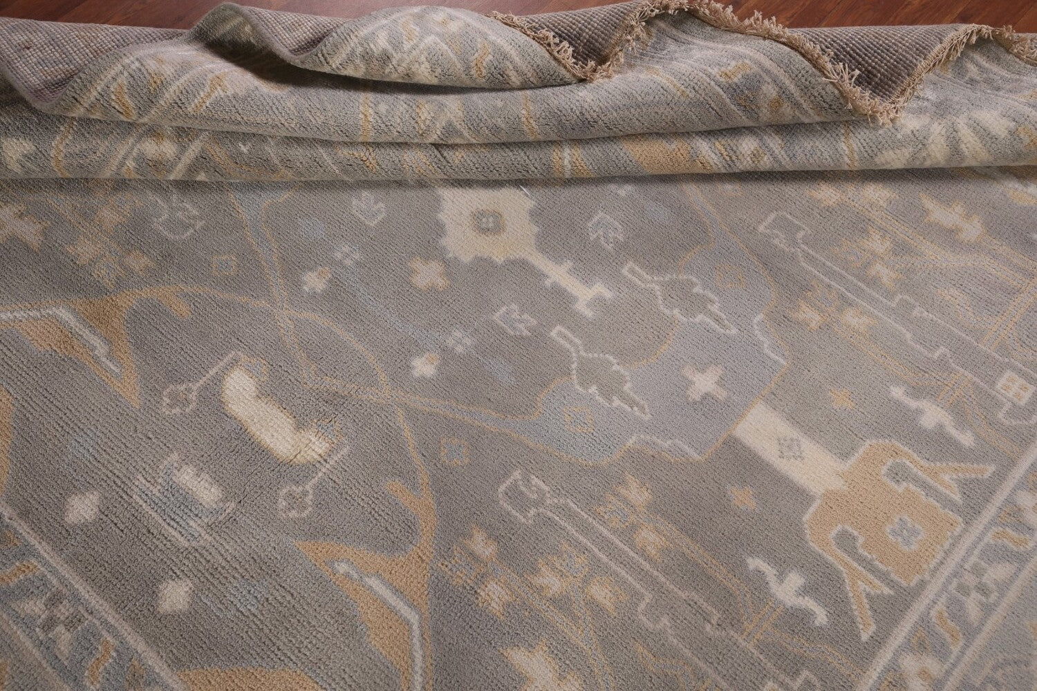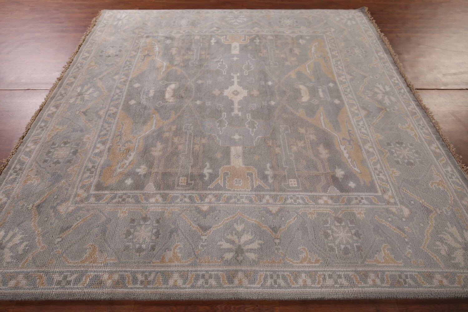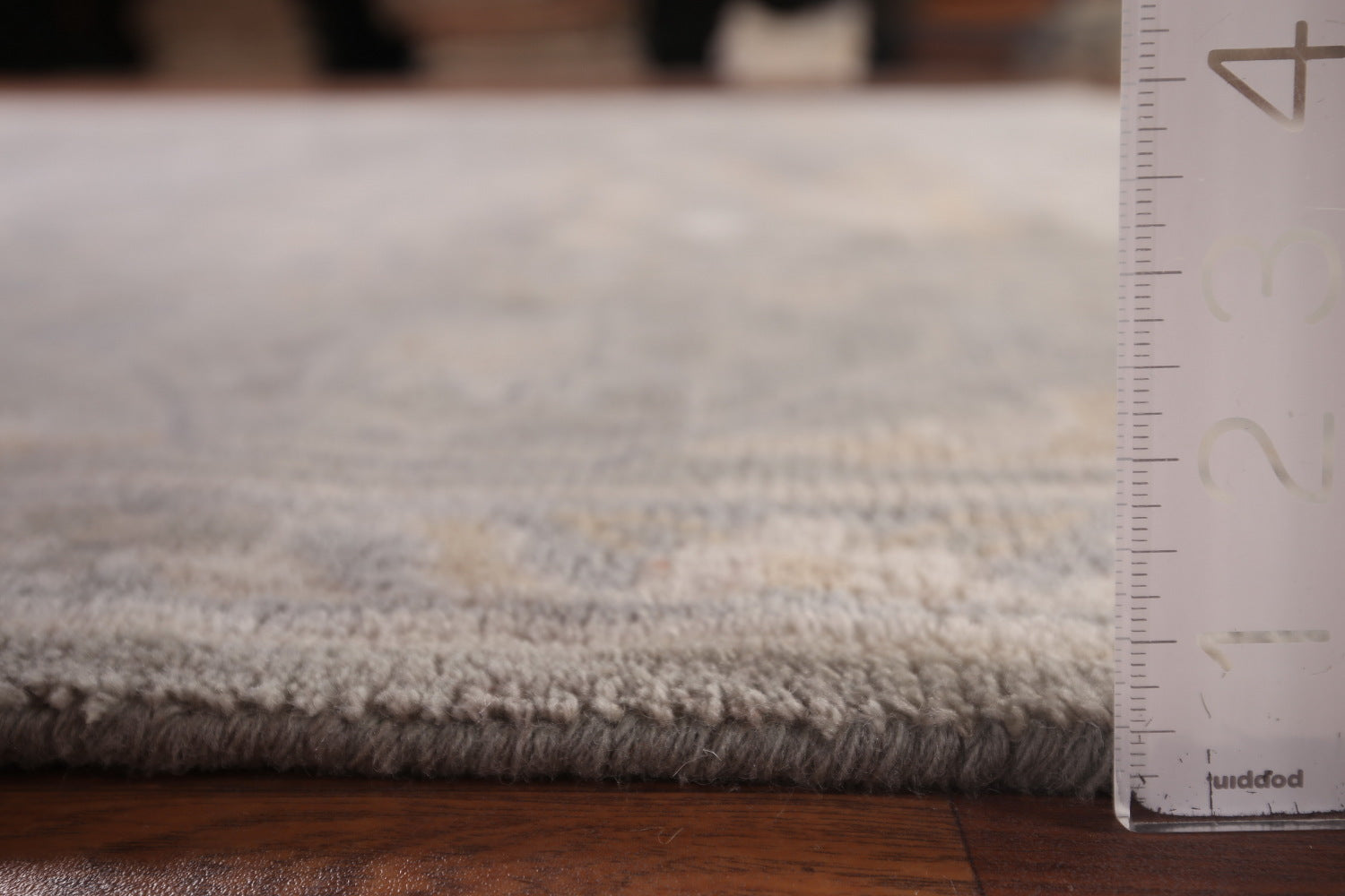 A Beautiful Genuine India Oushak rug is Hand Knotted by skillful weavers in India with 100% Wool Material. This rug is in New, First Quality condition. dimensions are 7' 8'' X 8' 0'' in foot and 234 X 244 in centimeter. the primary color is Greys & Charcoal.