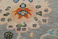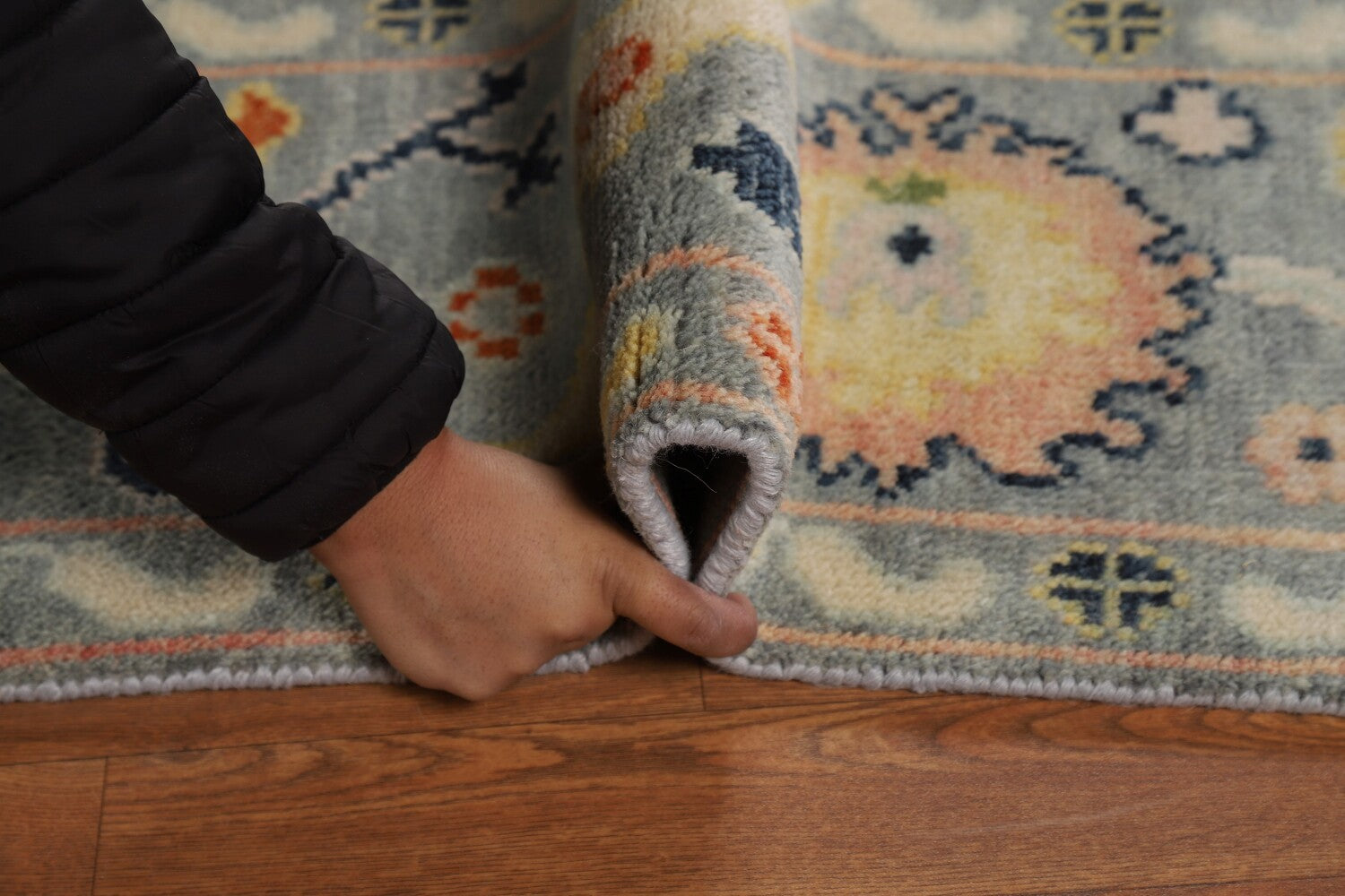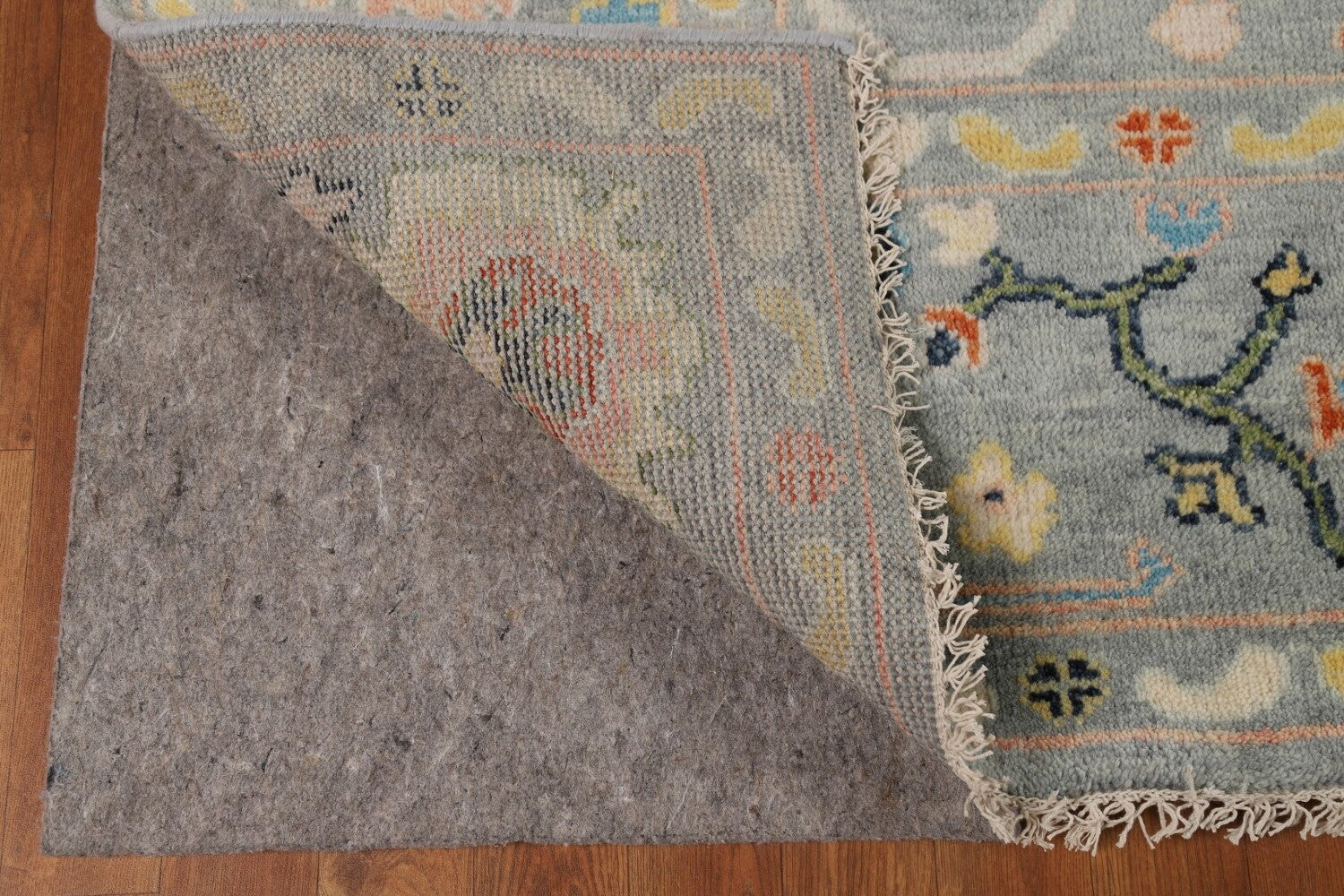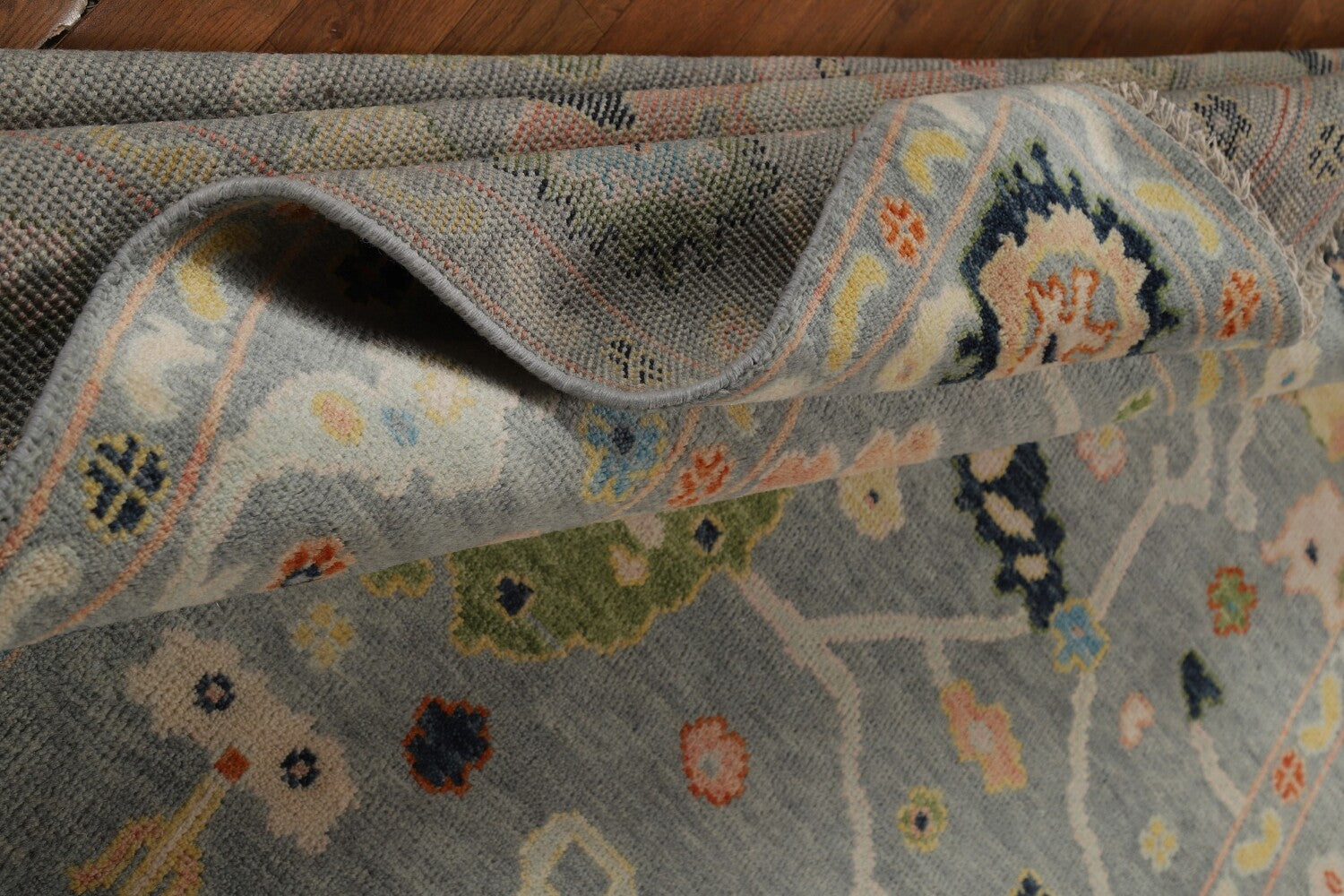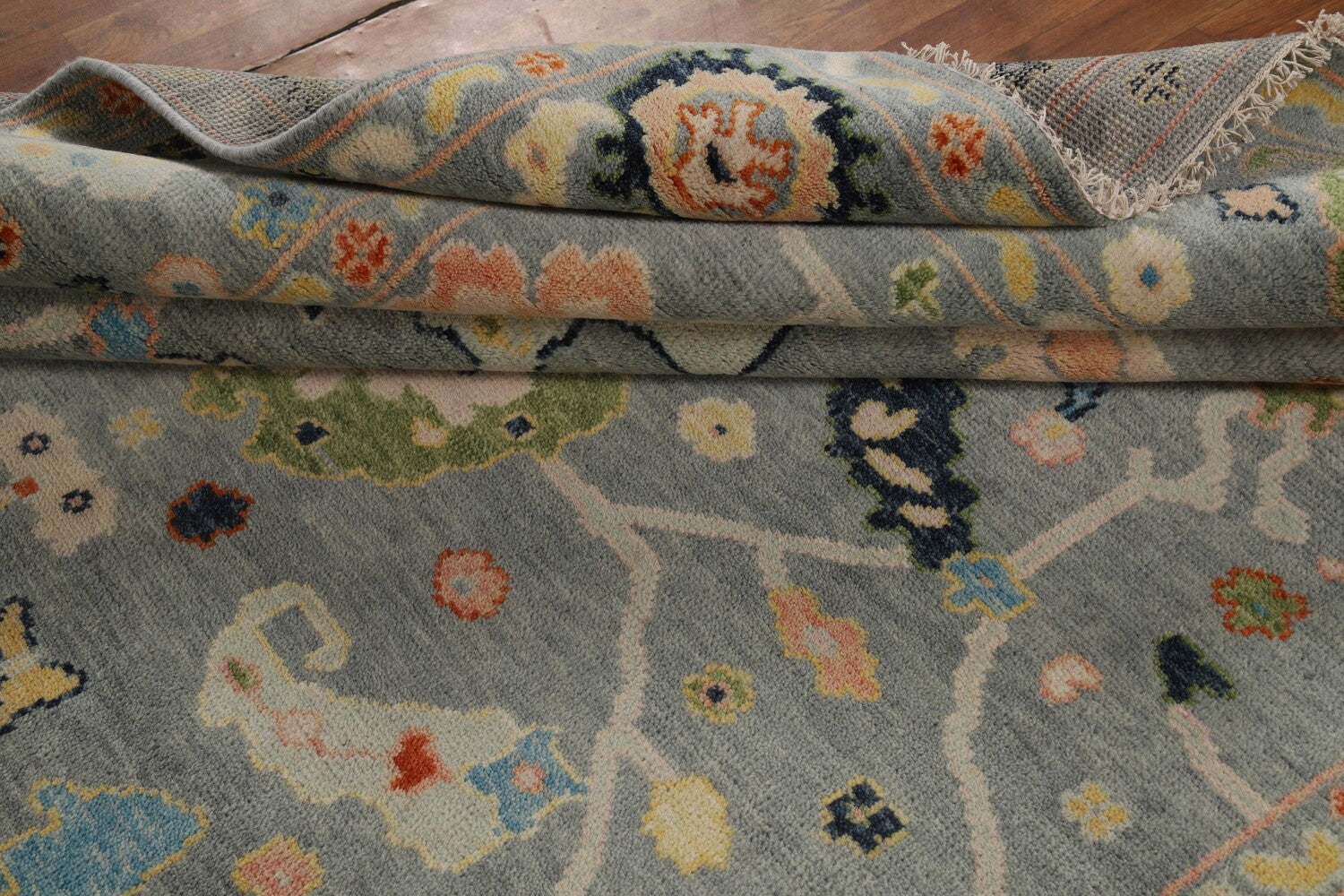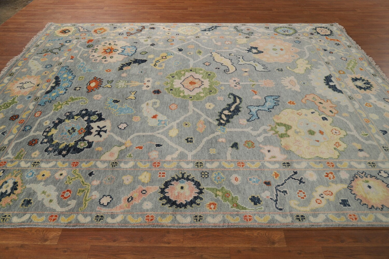 A Beautiful Genuine India Oushak rug is Hand Knotted by skillful weavers in India with 100% Wool Material. This rug is in New, First Quality condition. dimensions are 9' 11'' X 7' 11'' in foot and 302 X 241 in centimeter. the primary color is Greys & Charcoal.