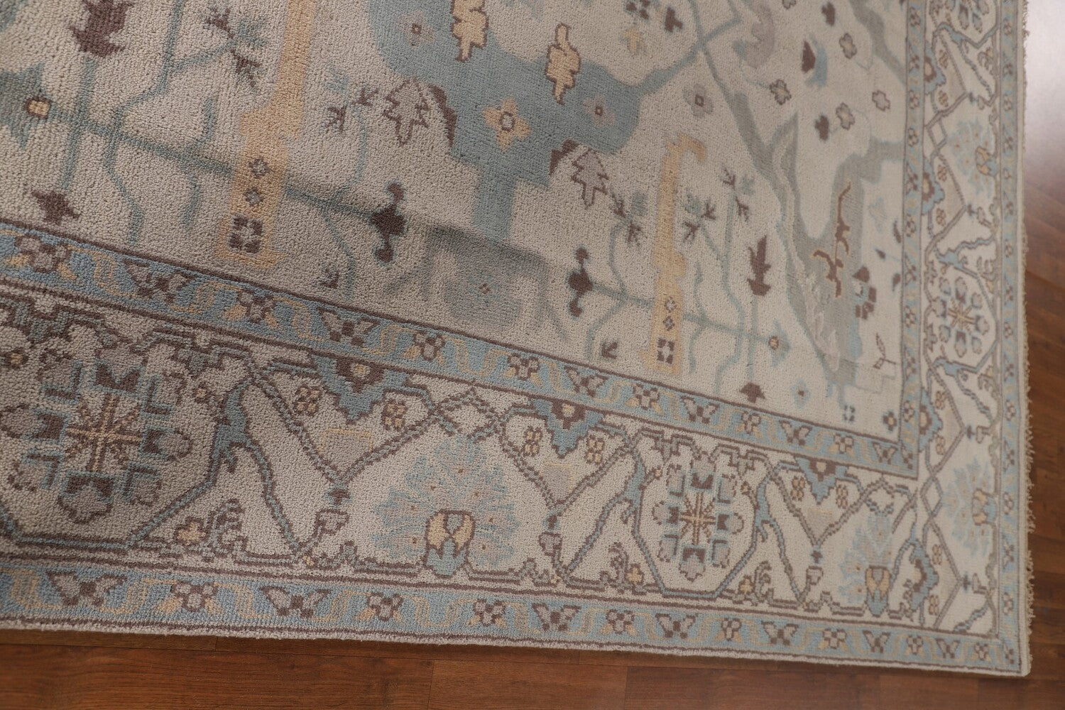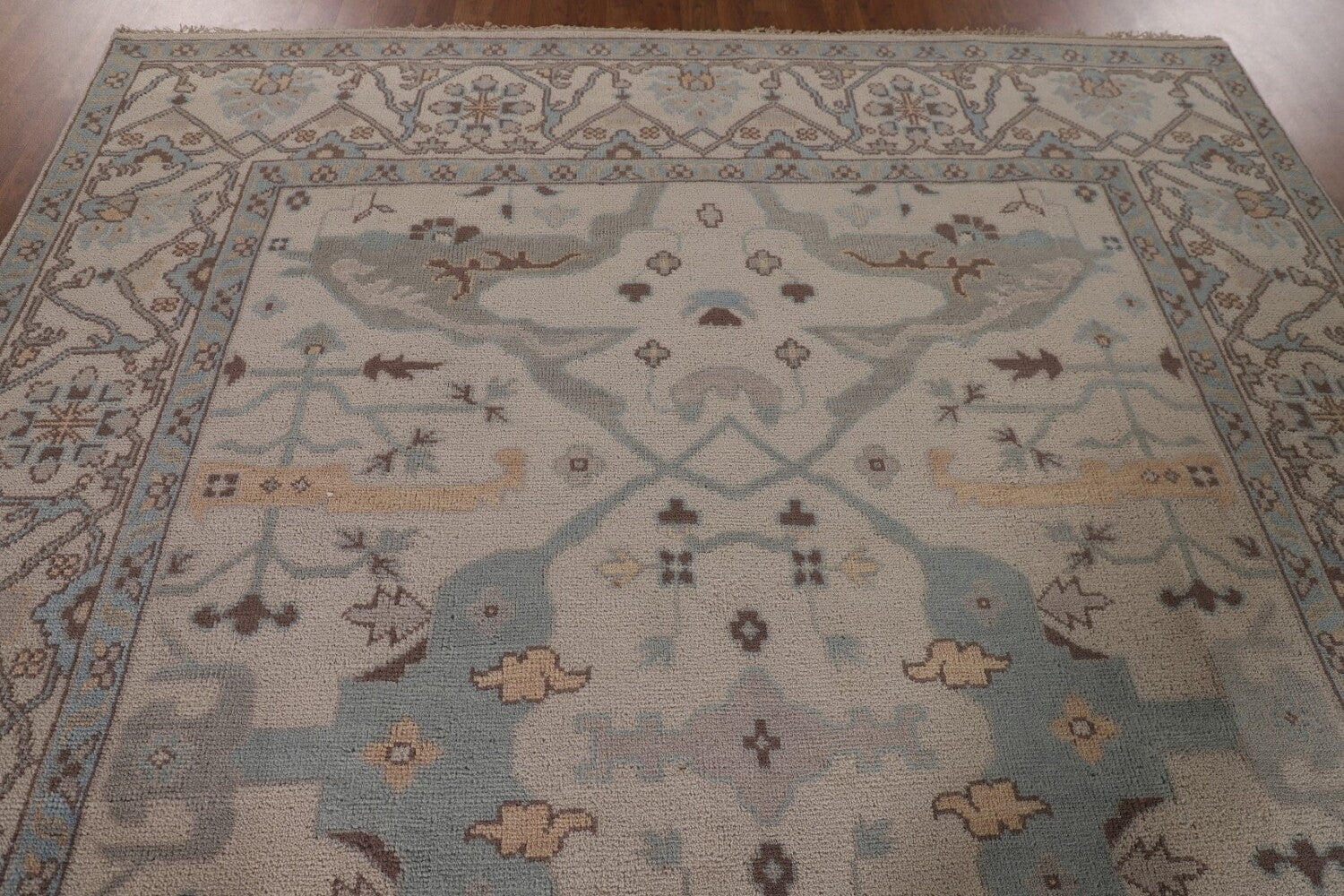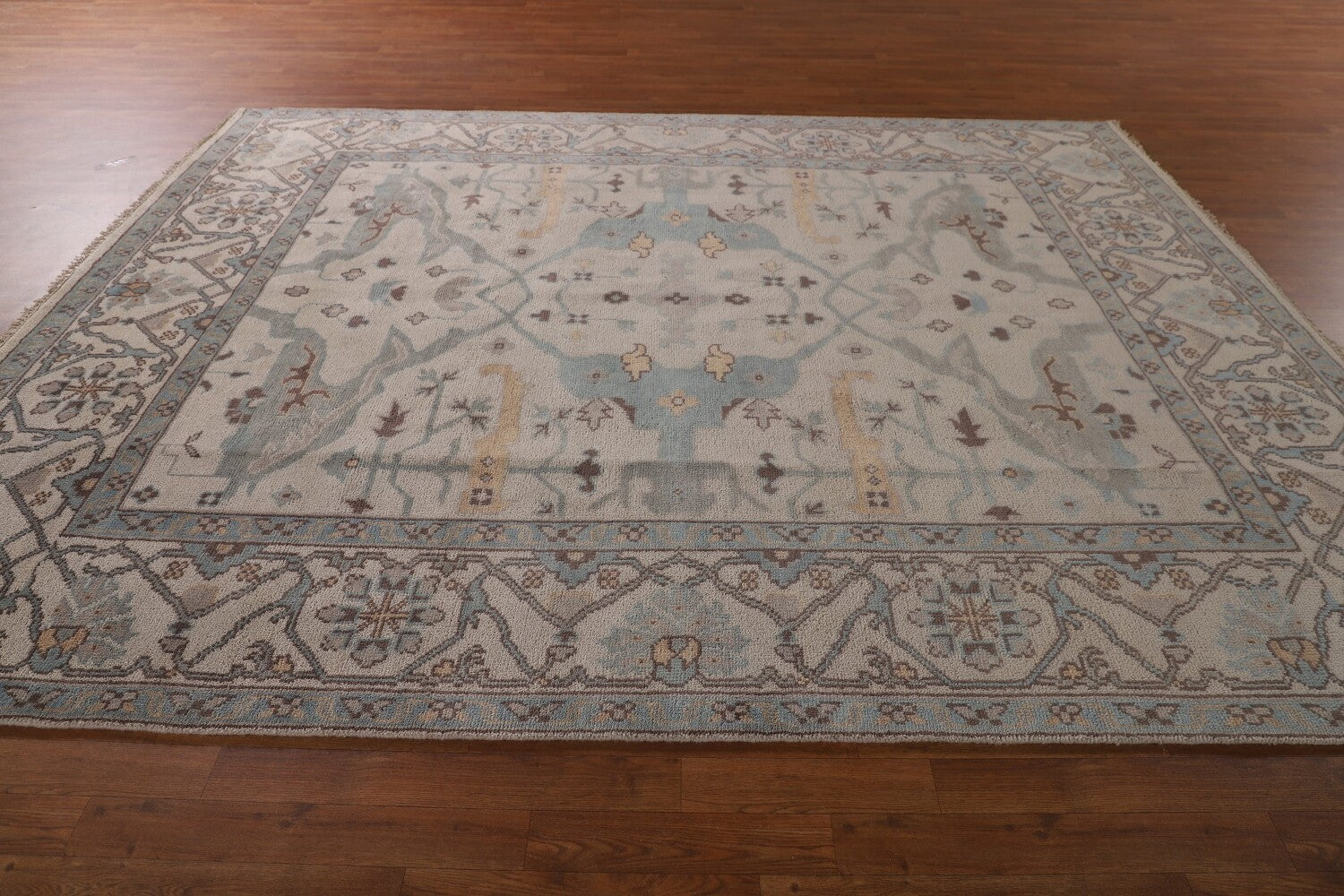 A Beautiful Genuine India Oushak rug is Hand Knotted by skillful weavers in India with 100% Wool Material. This rug is in New, First Quality condition. dimensions are 9' 11'' X 7' 11'' in foot and 302 X 241 in centimeter. the primary color is Beige & Ivories.