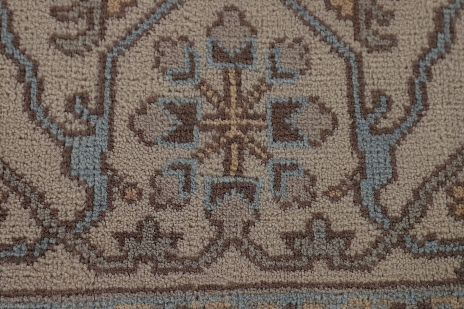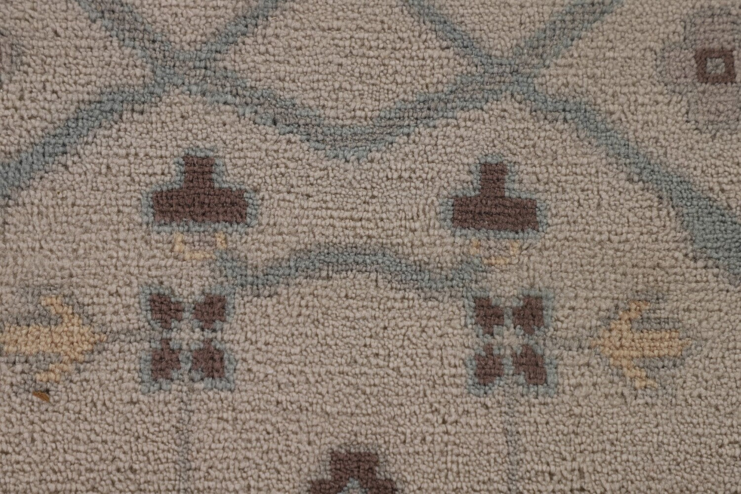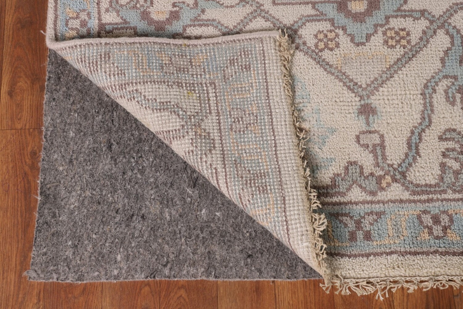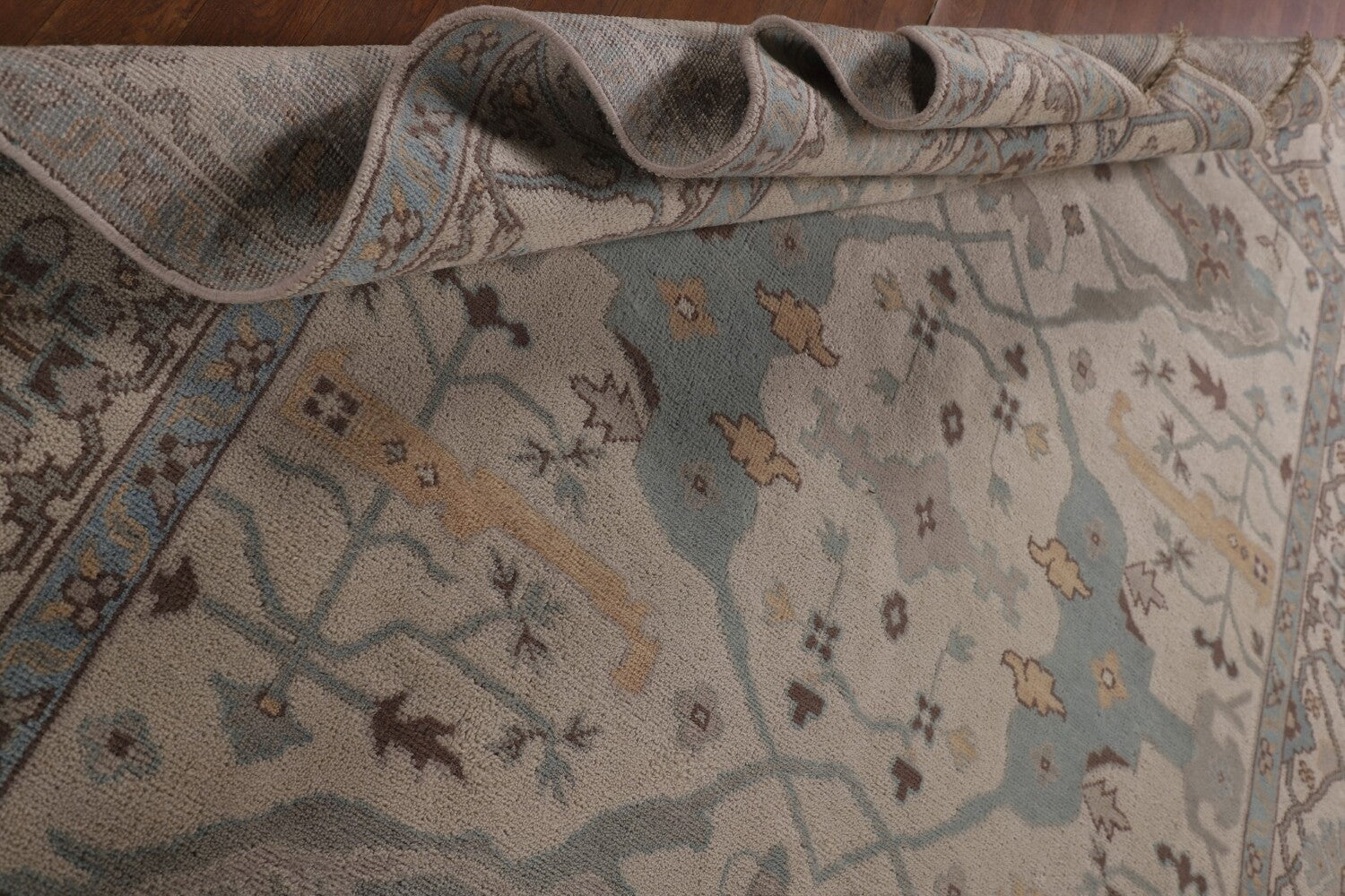 A Beautiful Genuine India Oushak rug is Hand Knotted by skillful weavers in India with 100% Wool Material. This rug is in New, First Quality condition. dimensions are 9' 11'' X 7' 11'' in foot and 302 X 241 in centimeter. the primary color is Beige & Ivories.
