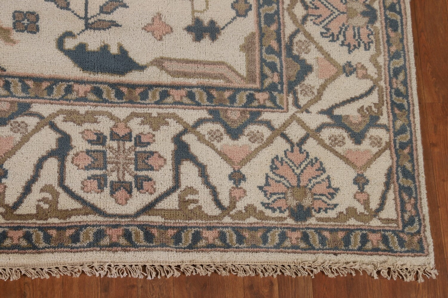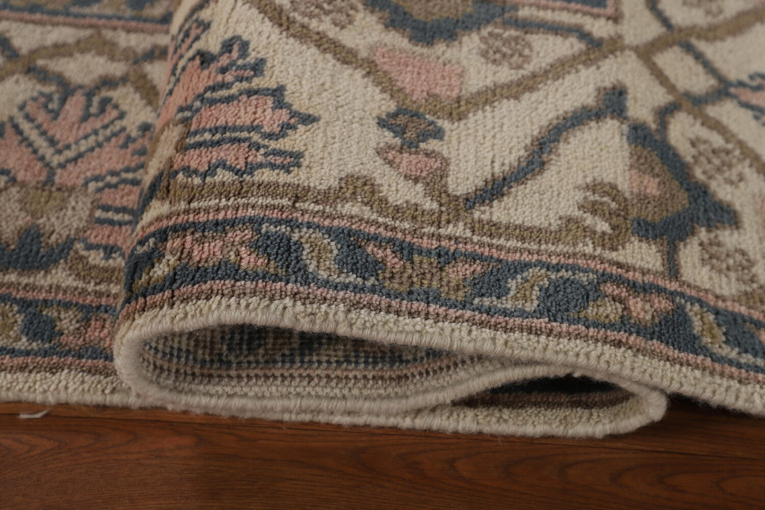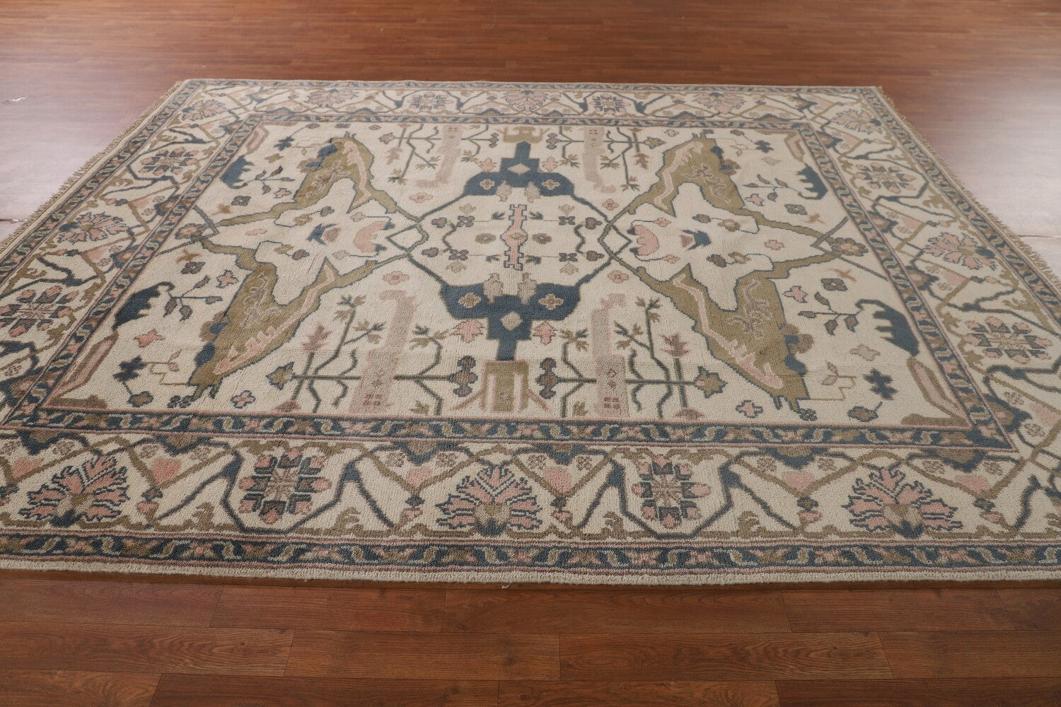 A Beautiful Genuine India Oushak rug is Hand Knotted by skillful weavers in India with 100% Wool Material. This rug is in New, First Quality condition. dimensions are 9' 11'' X 8' 0'' in foot and 302 X 244 in centimeter. the primary color is Beige & Ivories.