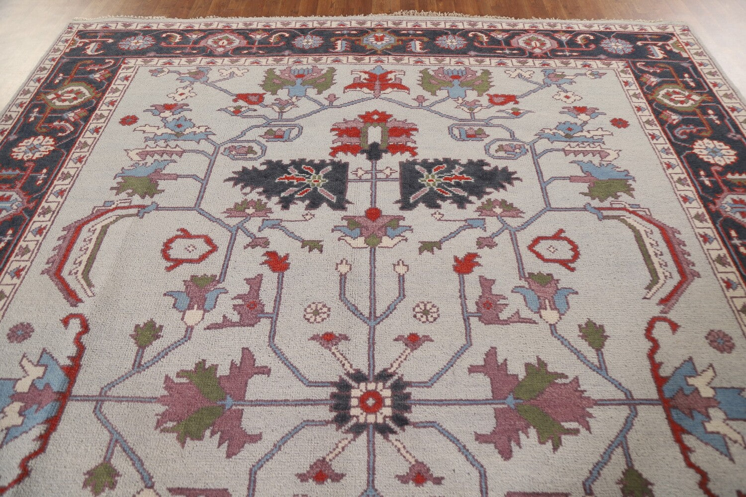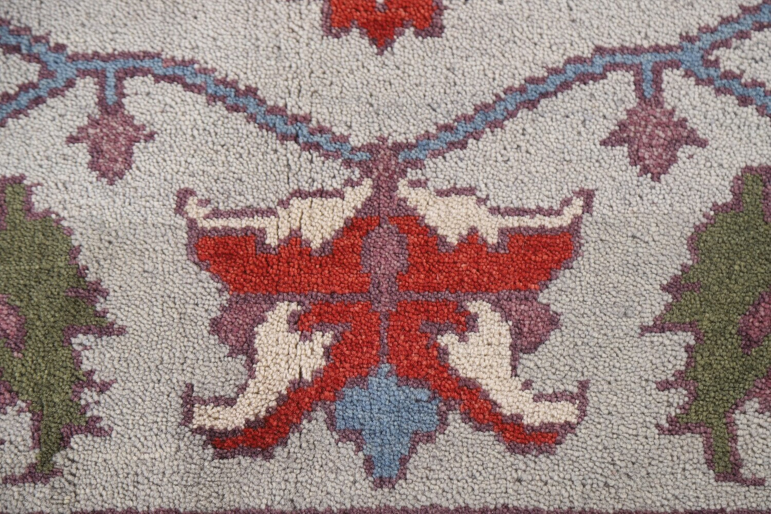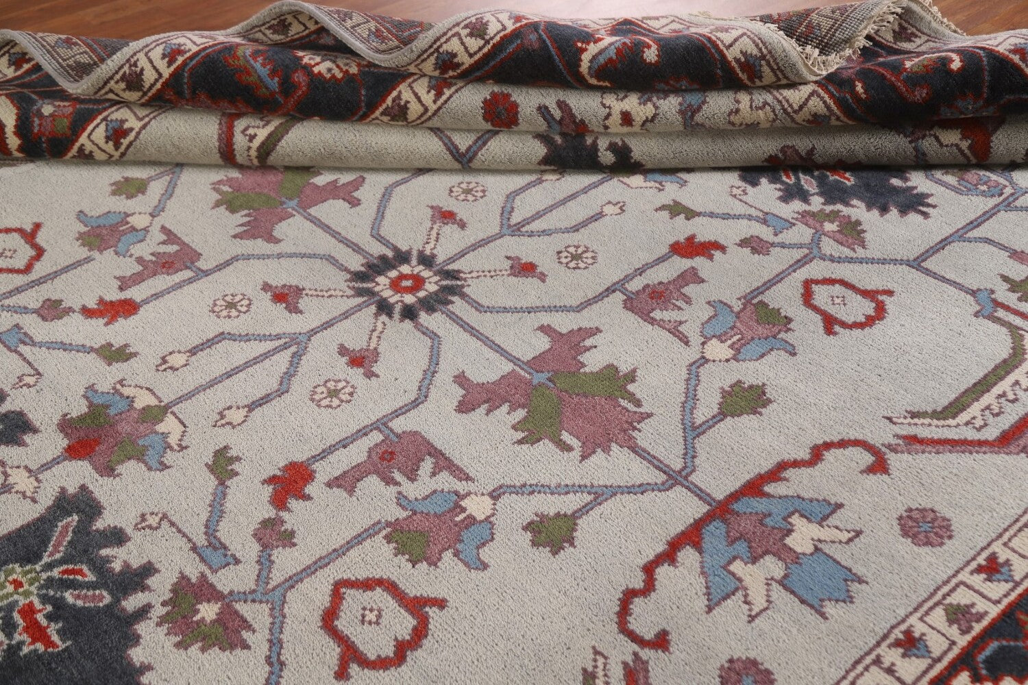 A Beautiful Genuine India Oushak rug is Hand Knotted by skillful weavers in India with 100% Wool Material. This rug is in New, First Quality condition. dimensions are 11' 11'' X 9' 0'' in foot and 363 X 274 in centimeter. the primary color is Beige & Ivories.