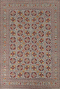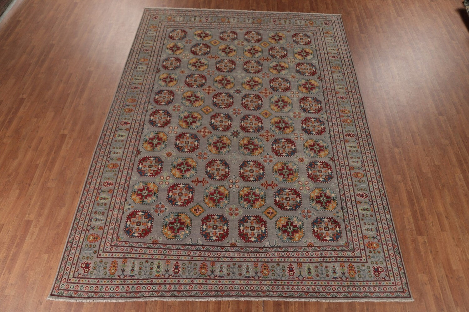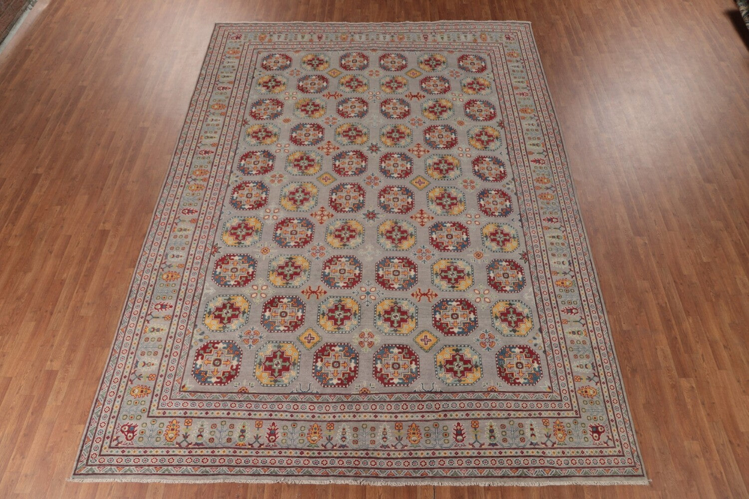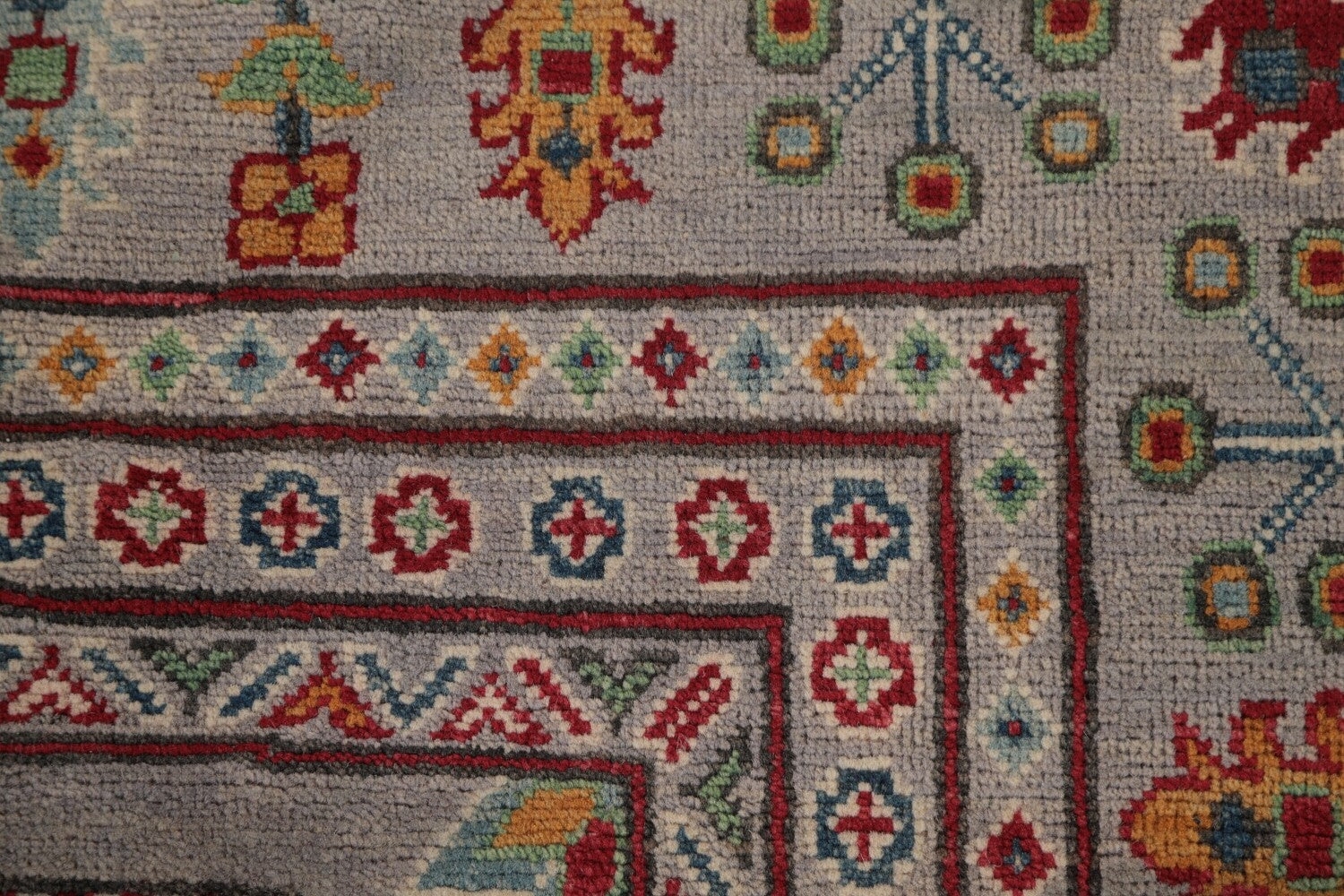 A Beautiful Genuine Pakistan Kazak rug is Hand Knotted by skillful weavers in Pakistan with 100% Wool Material. This rug is in New, First Quality condition. dimensions are 13' 1'' X 9' 7'' in foot and 399 X 292 in centimeter. the primary color is Greys & Charcoal.