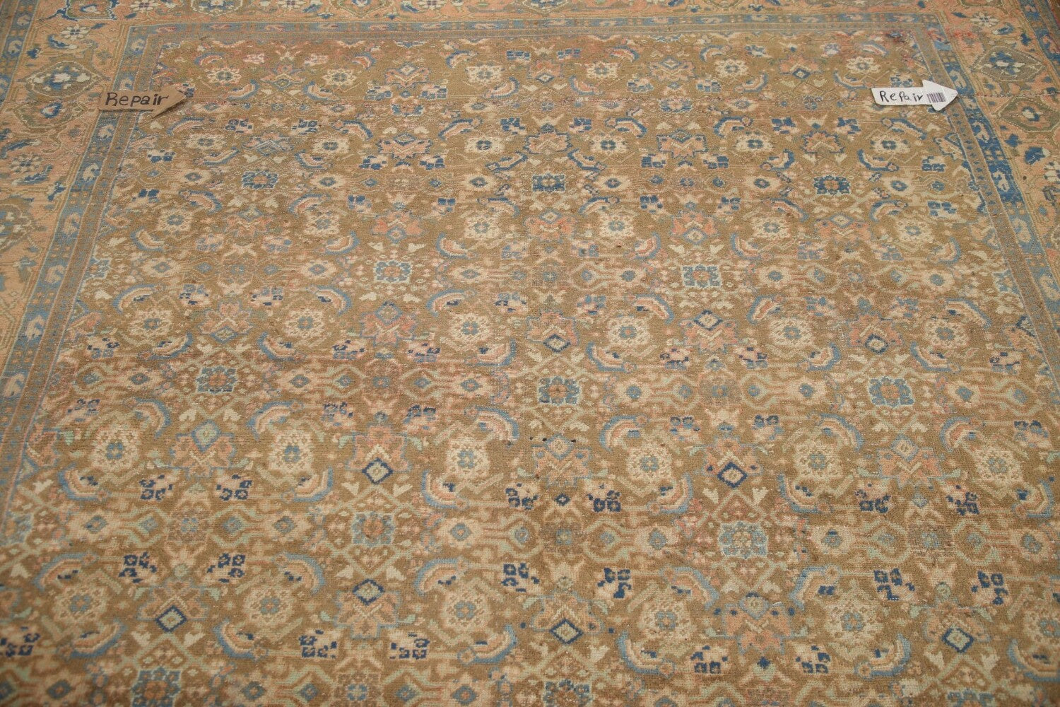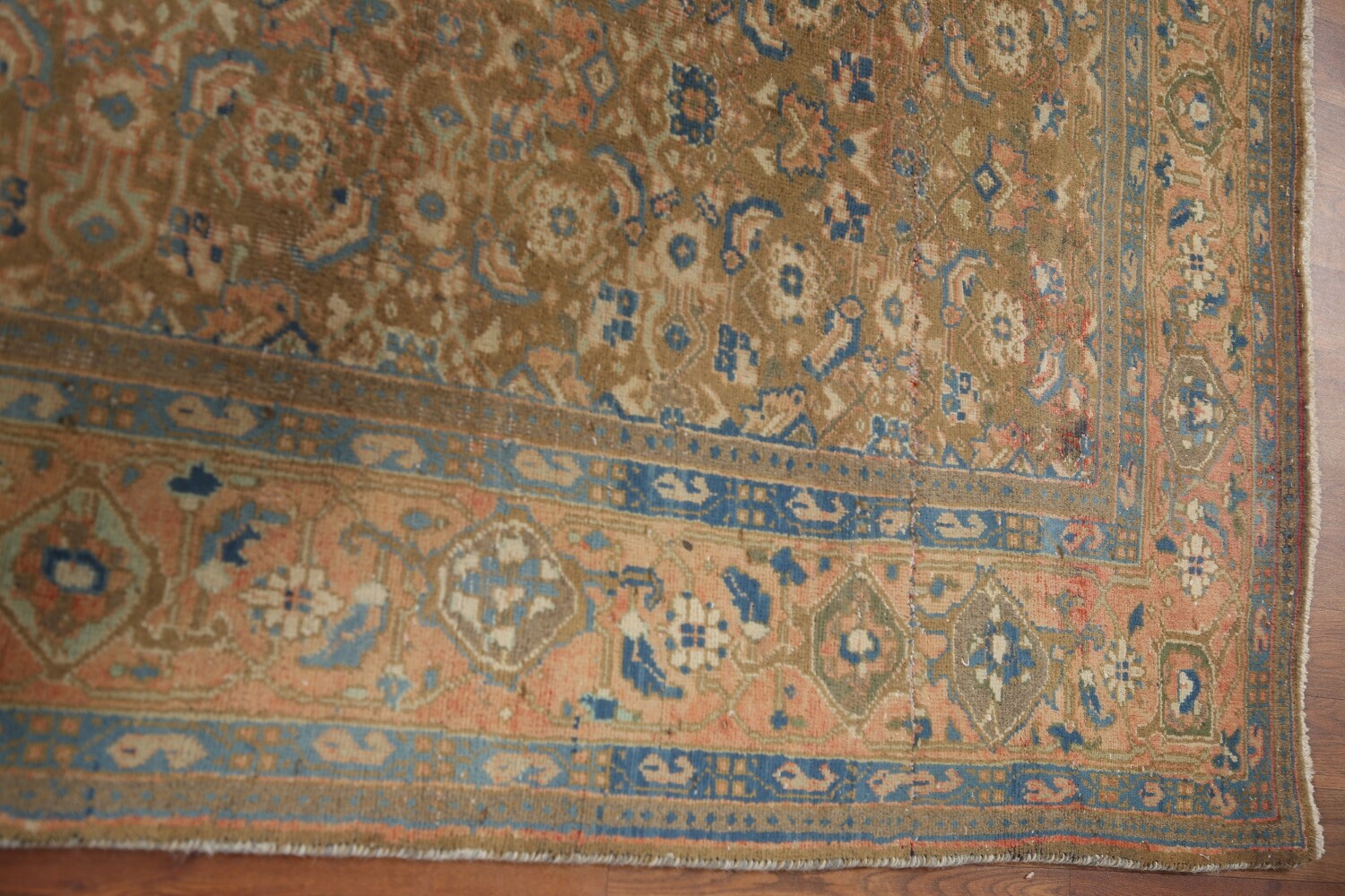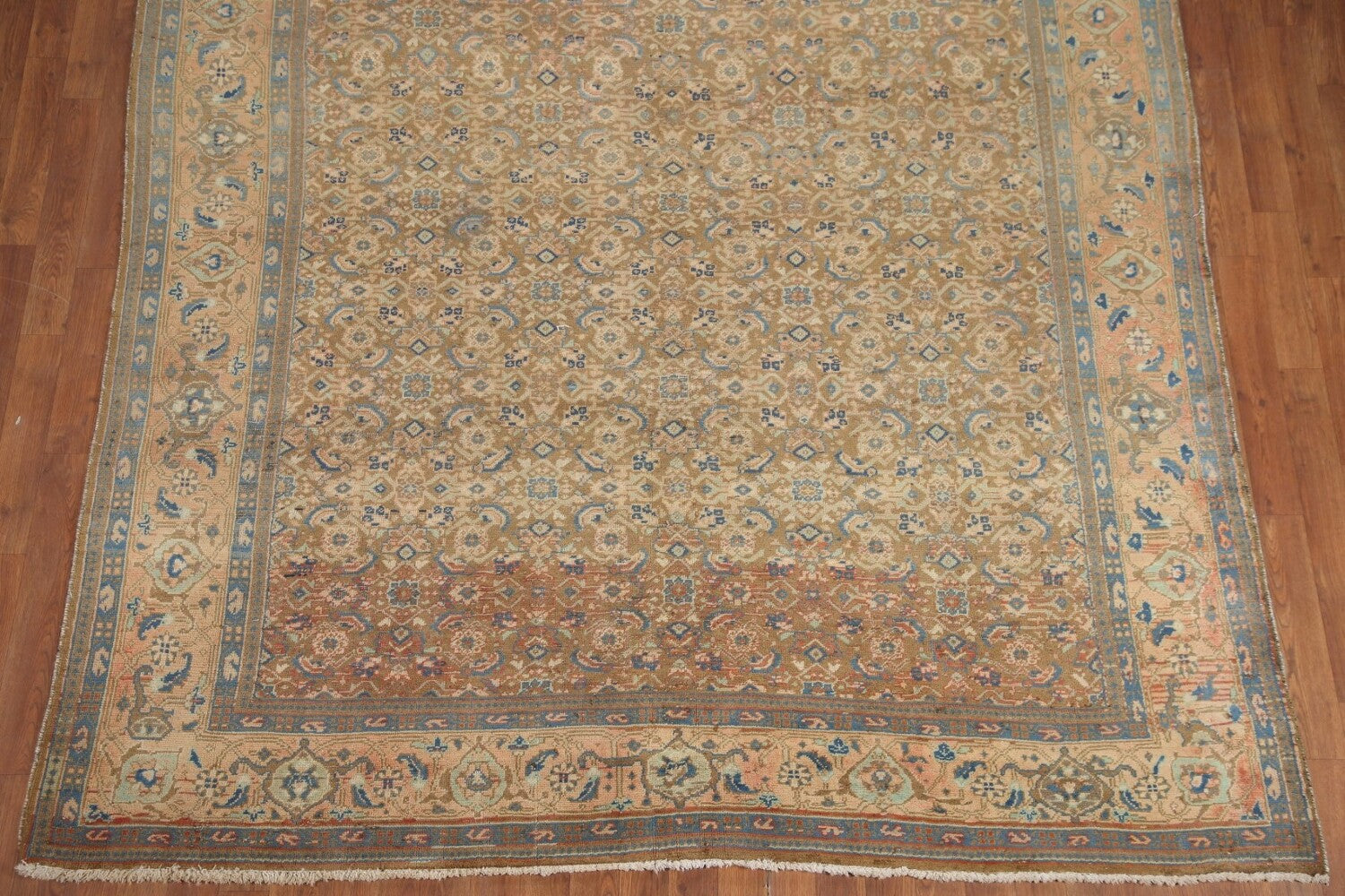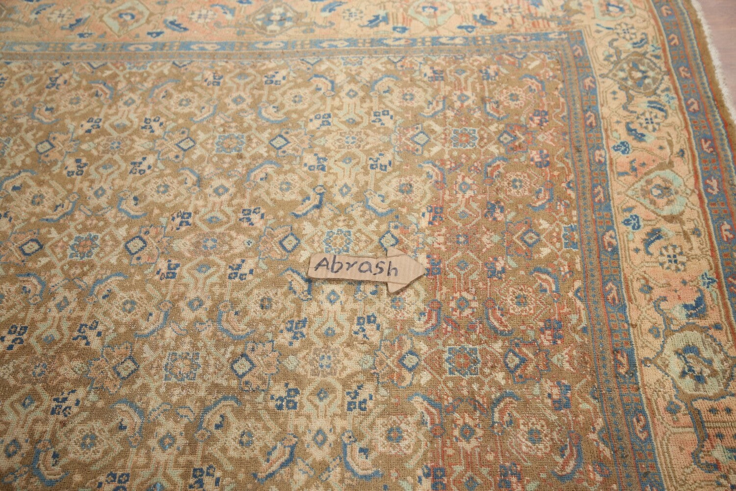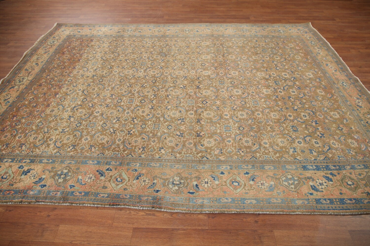 A Beautiful Genuine Persia ( Persia ) Mahal rug is Hand Knotted by skillful weavers in Persia ( Persia ) with 100% Wool Material. This rug is in Very Good (Evenly Low Pile-Abrash-Repair) condition. dimensions are 9' 5'' X 7' 1'' in foot and 287 X 216 in centimeter. the primary color is Yellow & Gold.