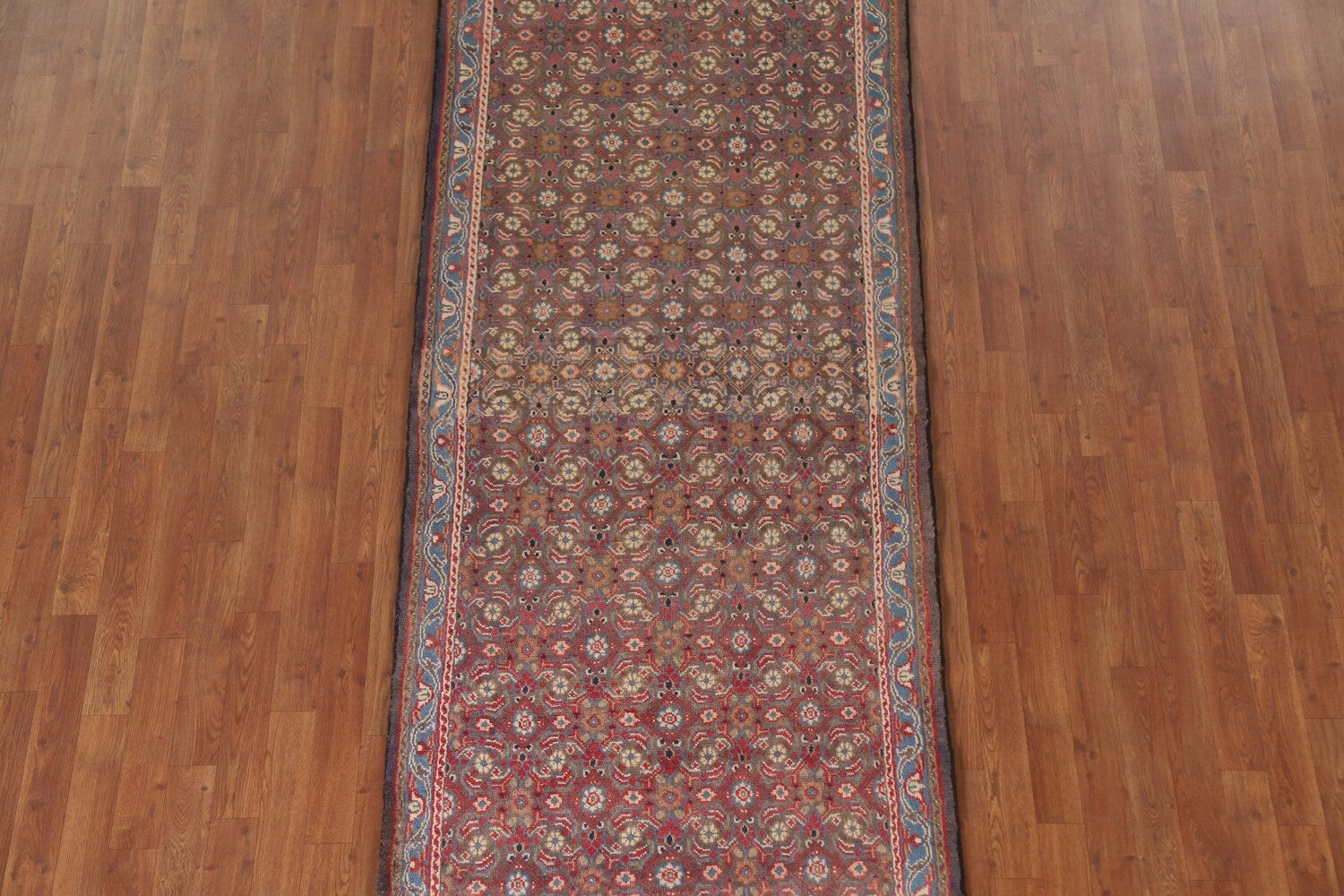 A Beautiful Genuine Persia ( Persia ) Mahal rug is Hand Knotted by skillful weavers in Persia ( Persia ) with 100% Wool Material. This rug is in Very Good (Abrash) condition. dimensions are 10' 6'' X 3' 5'' in foot and 320 X 104 in centimeter. the primary color is Multi-Colored.