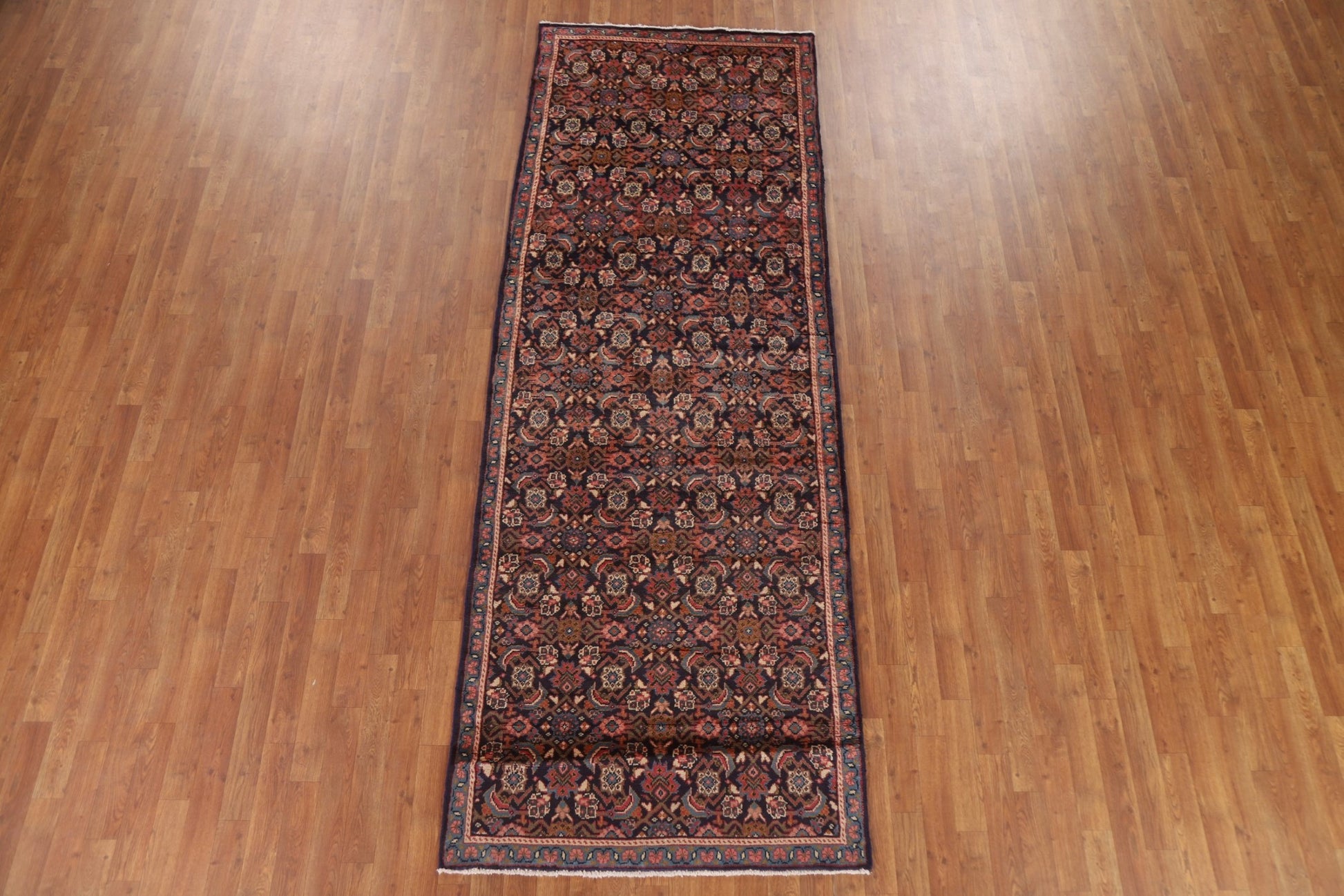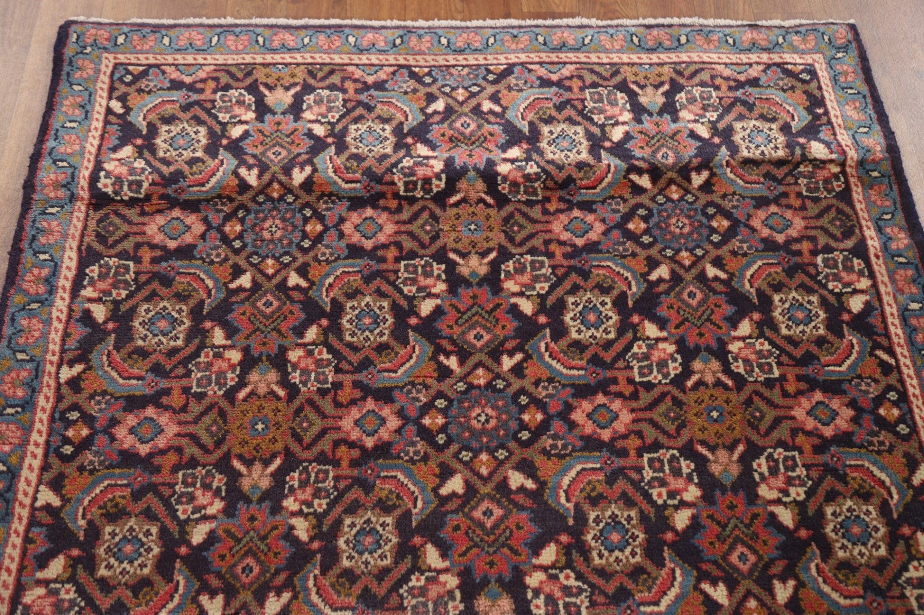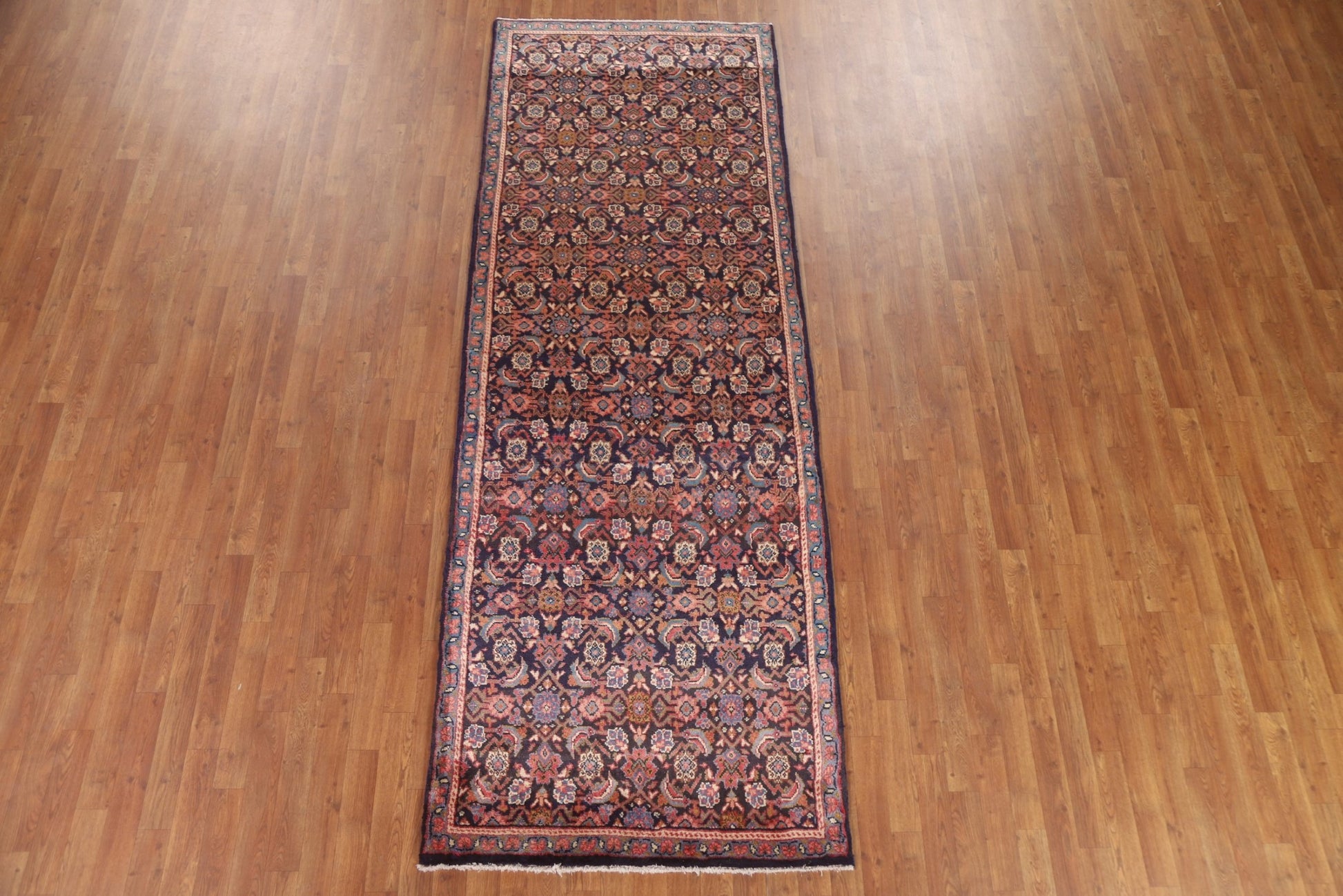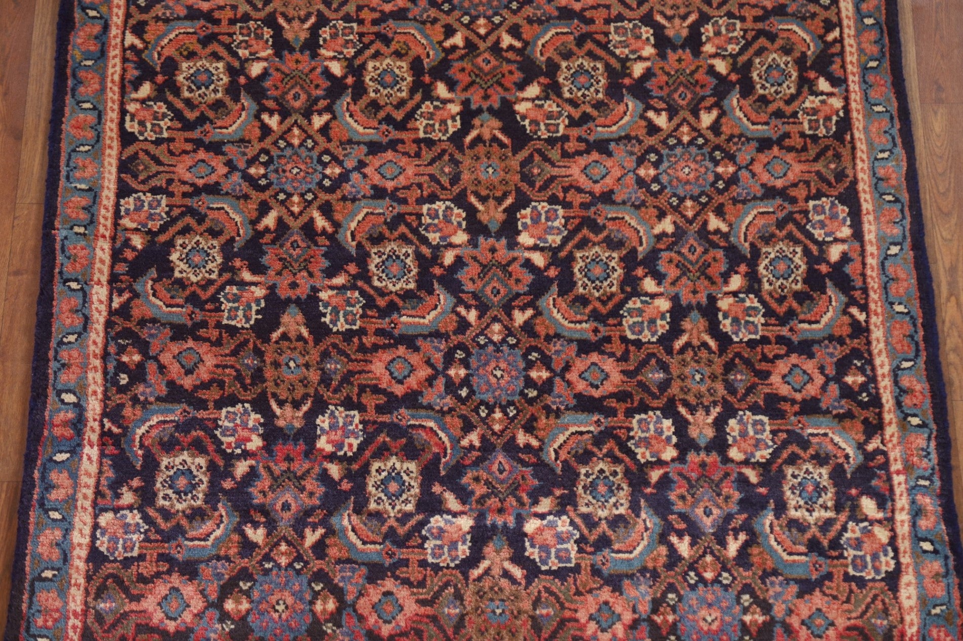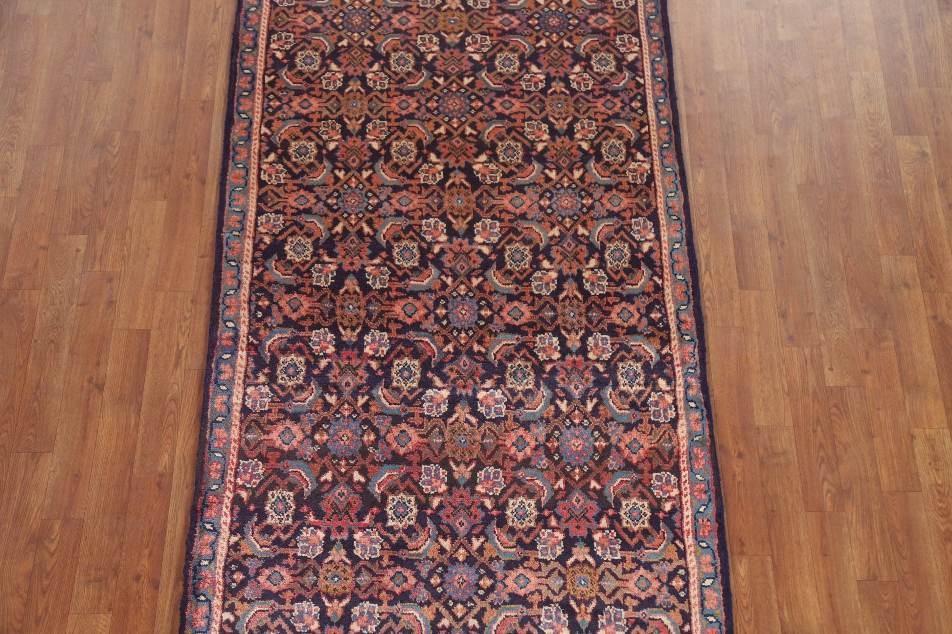 A Beautiful Genuine Persia ( Persia ) Mahal rug is Hand Knotted by skillful weavers in Persia ( Persia ) with 100% Wool Material. This rug is in Very Good condition. dimensions are 10' 3'' X 3' 8'' in foot and 312 X 112 in centimeter. the primary color is Navy Blue & Blues.