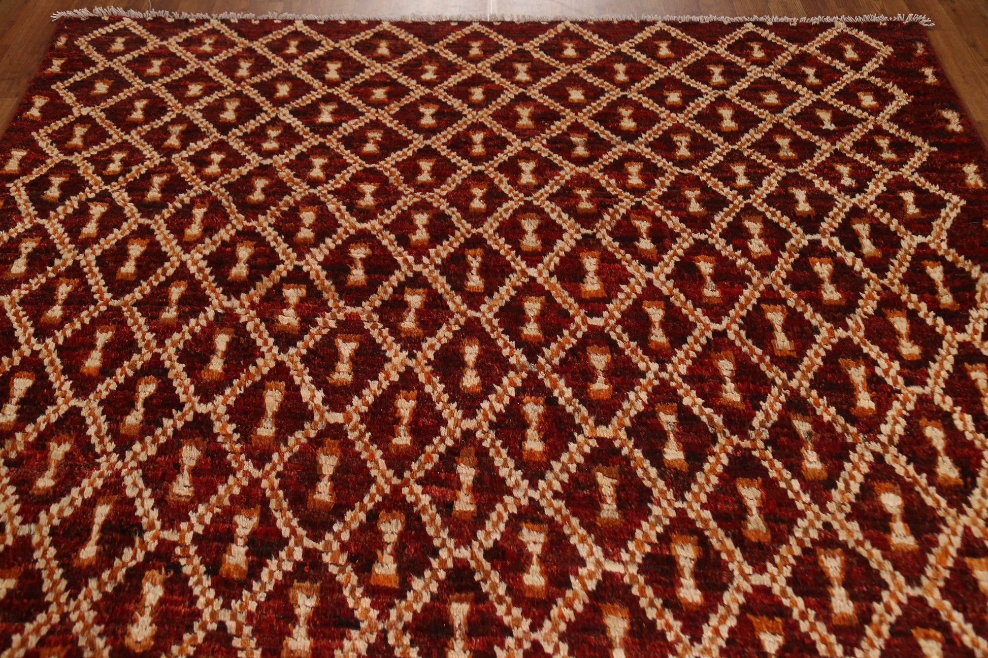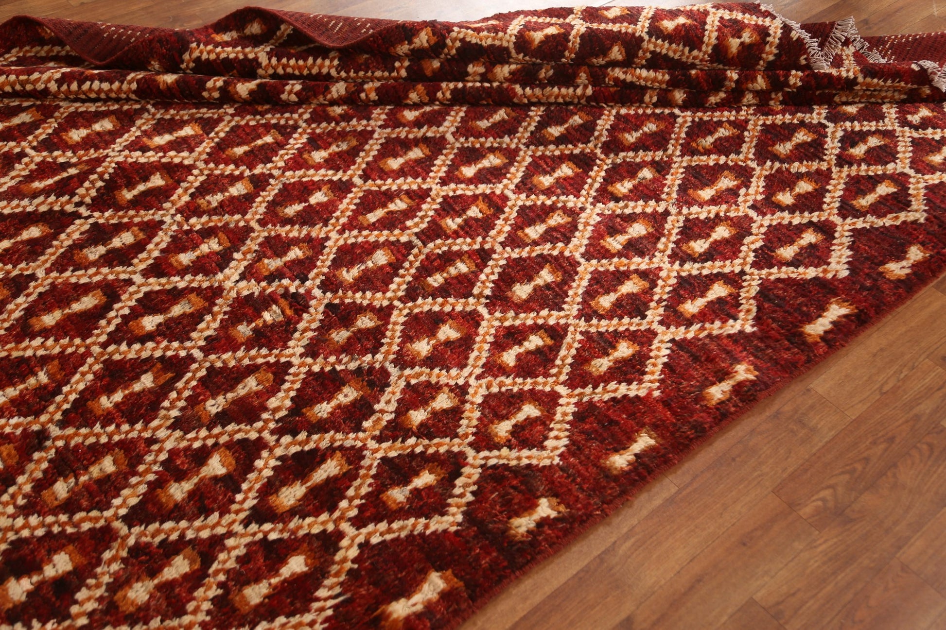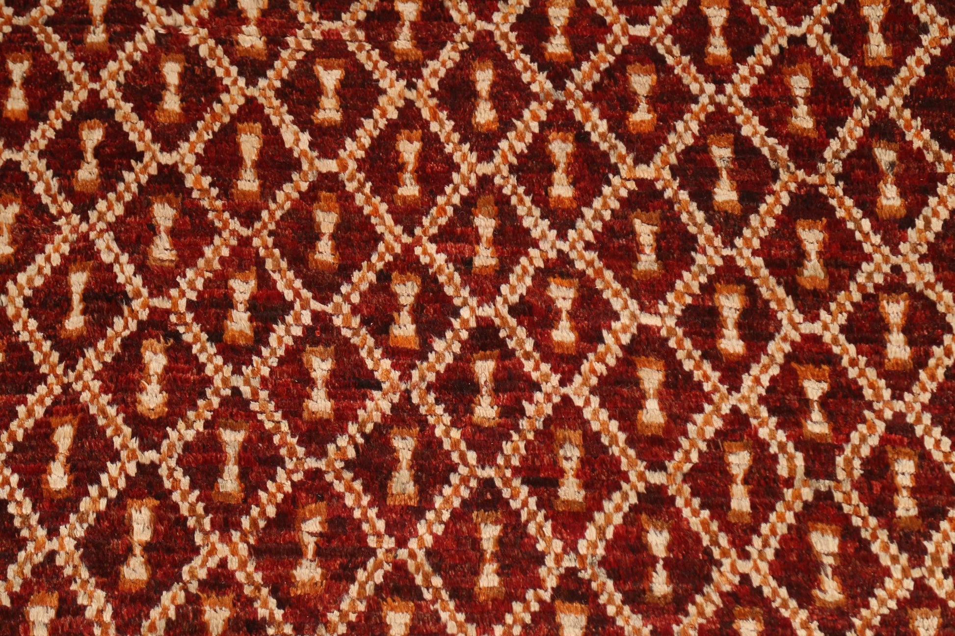 A Beautiful Genuine Pakistan Moroccan rug is Hand Knotted by skillful weavers in Pakistan with 100% Wool Material. This rug is in condition. dimensions are 9' 0'' X 6' 4'' in foot and 274 X 193 in centimeter. the primary color is Red.