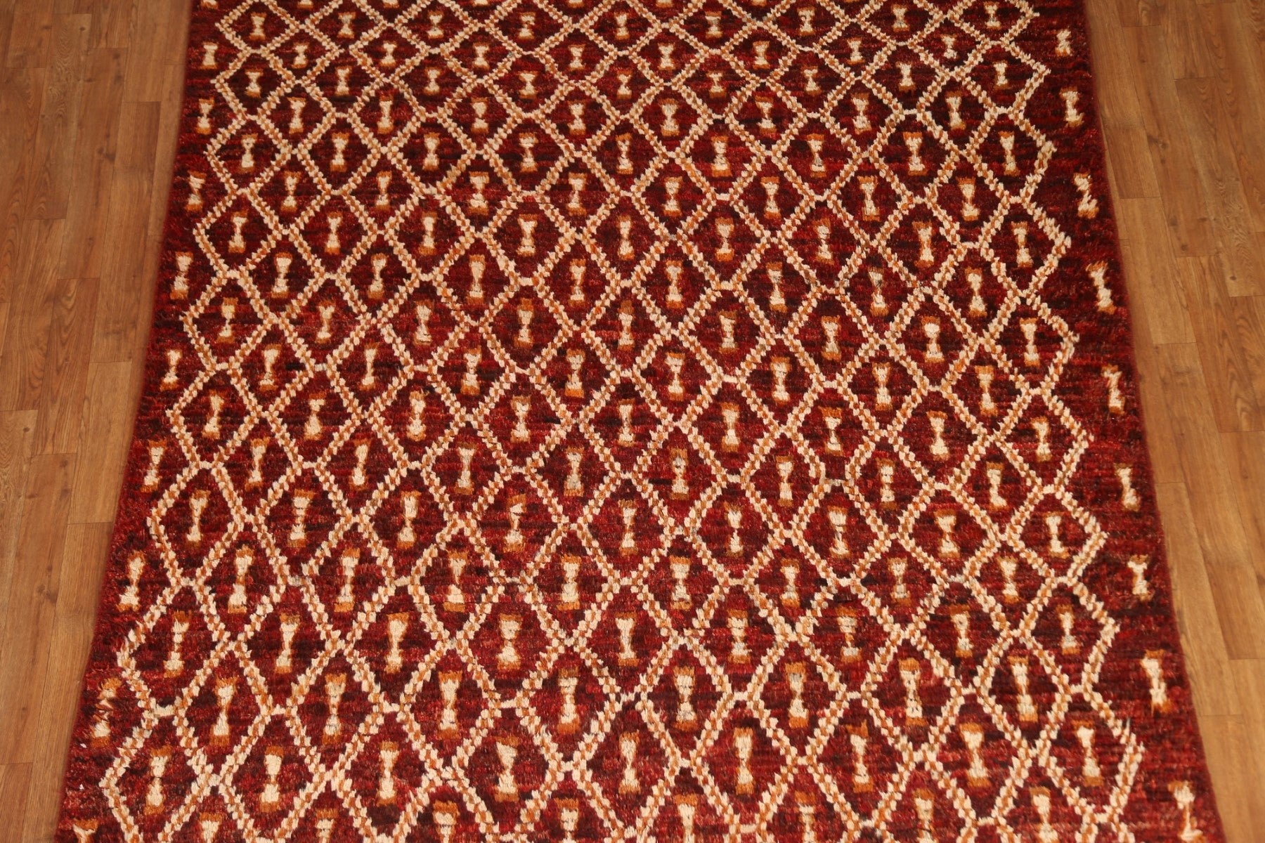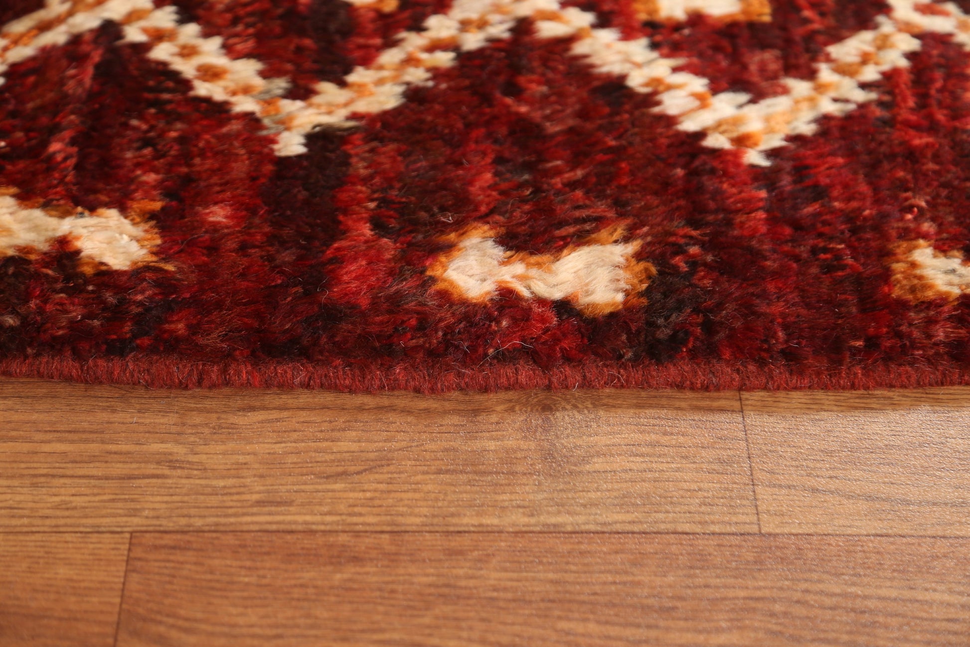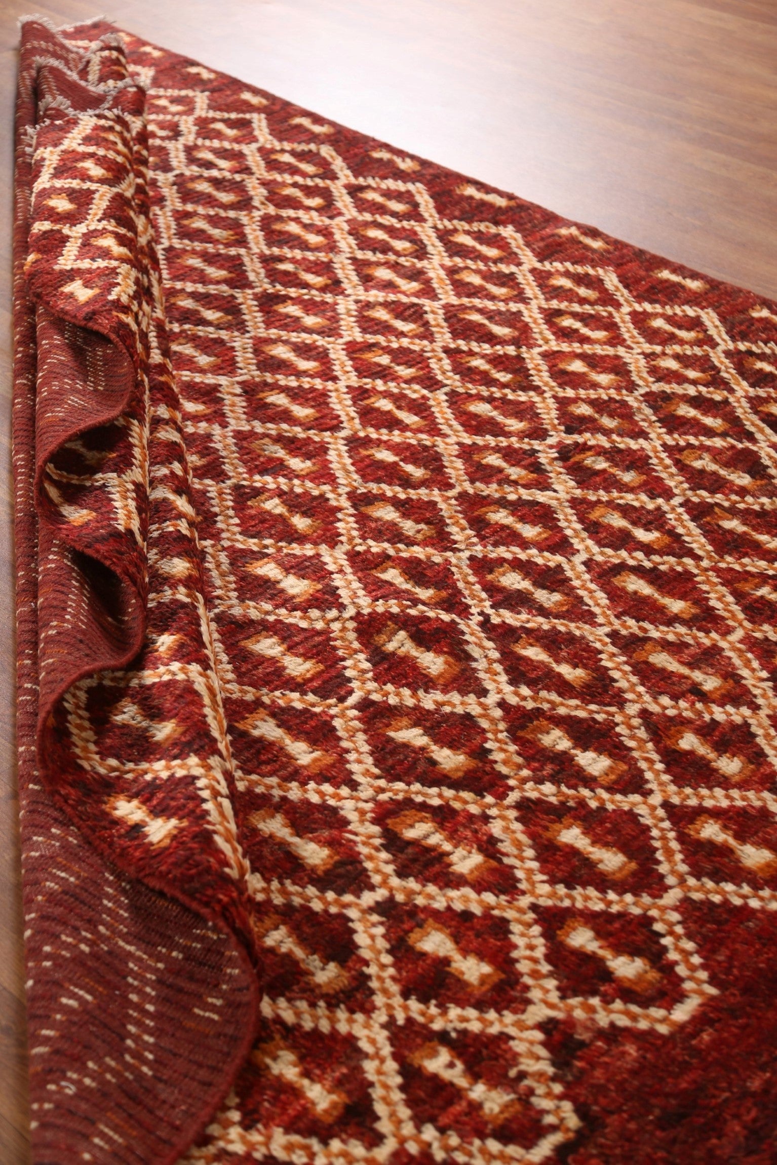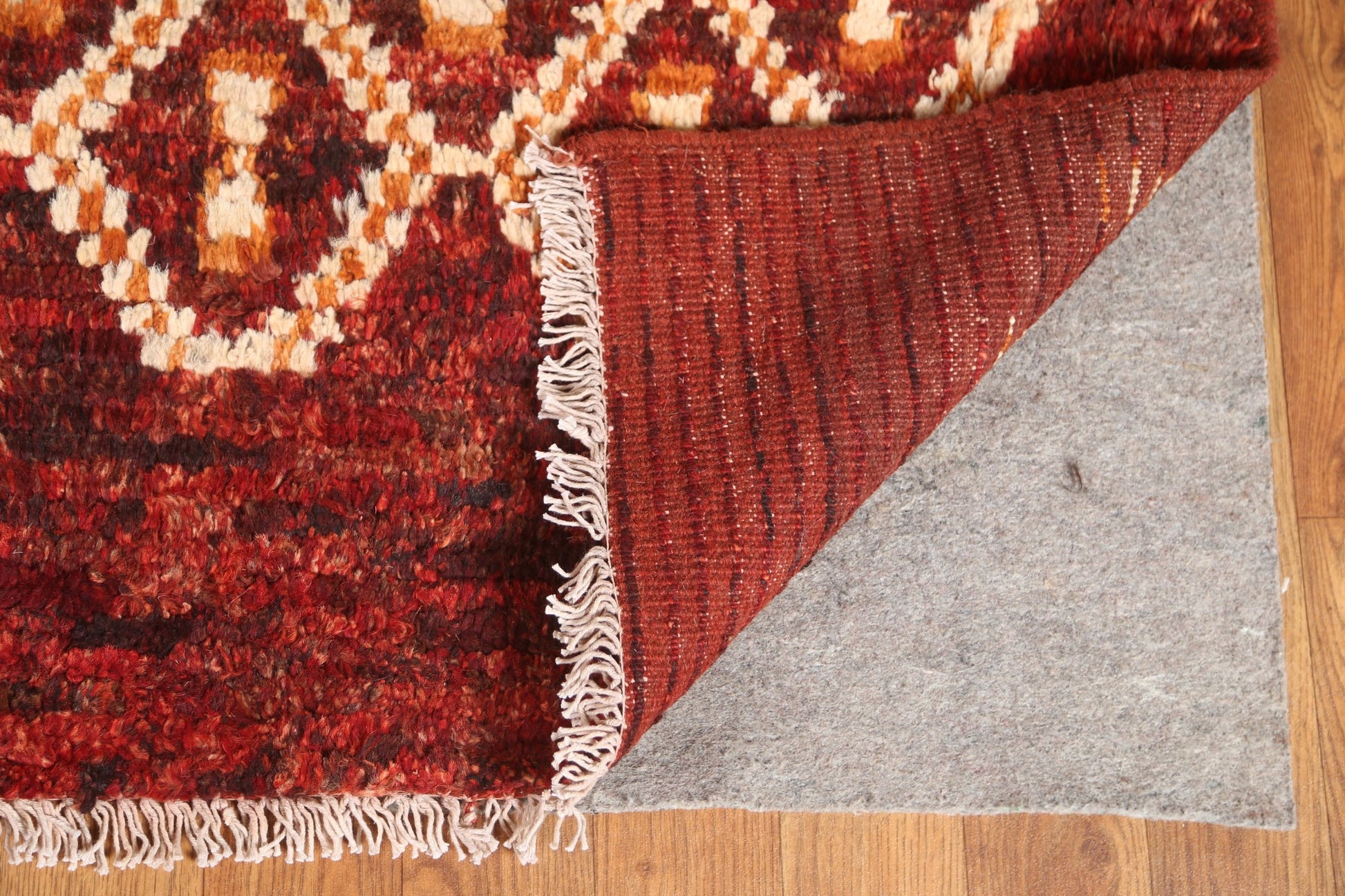 A Beautiful Genuine Pakistan Moroccan rug is Hand Knotted by skillful weavers in Pakistan with 100% Wool Material. This rug is in condition. dimensions are 9' 0'' X 6' 4'' in foot and 274 X 193 in centimeter. the primary color is Red.