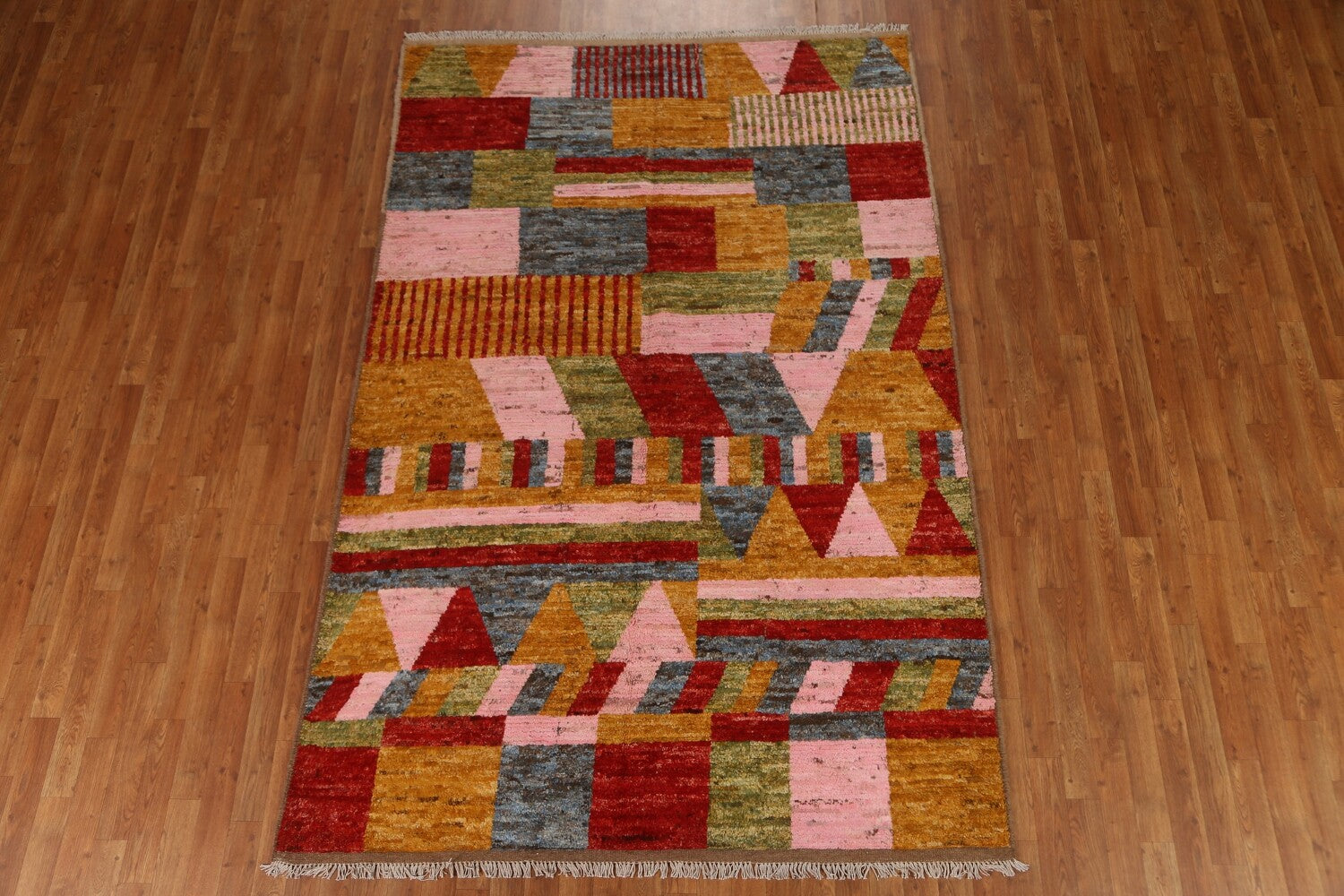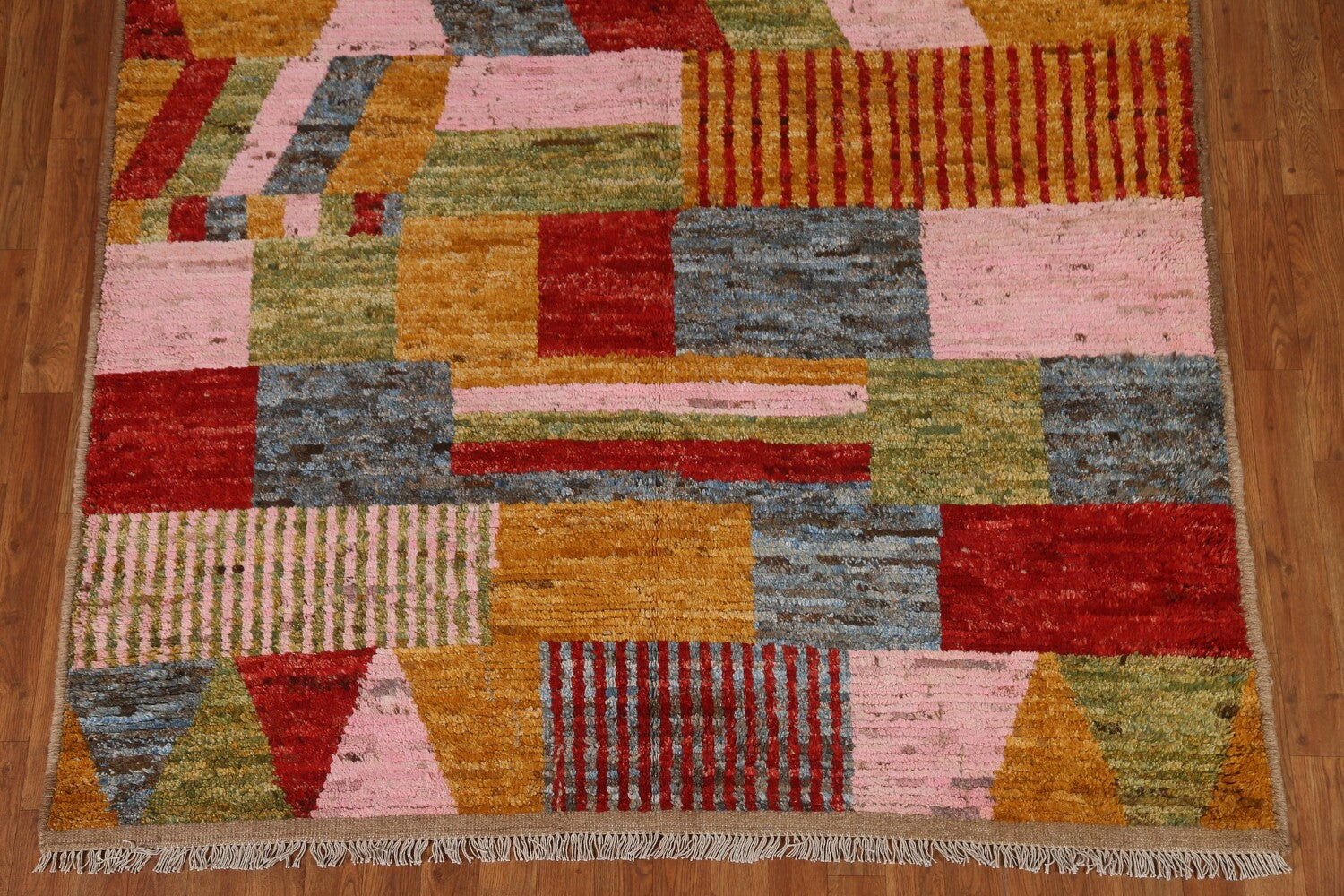 A Beautiful Genuine Pakistan Moroccan rug is Hand Knotted by skillful weavers in Pakistan with 100% Wool Material. This rug is in condition. dimensions are 8' 10'' X 5' 11'' in foot and 269 X 180 in centimeter. the primary color is Multi-Colored.