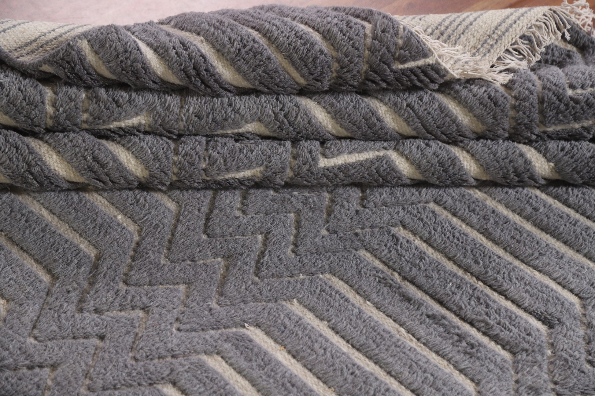 A Beautiful Genuine India Moroccan rug is Hand Knotted by skillful weavers in India with 100% Wool Material. This rug is in New, First Quality condition. dimensions are 10' 0'' X 8' 0'' in foot and 305 X 244 in centimeter. the primary color is Greys & Charcoal.