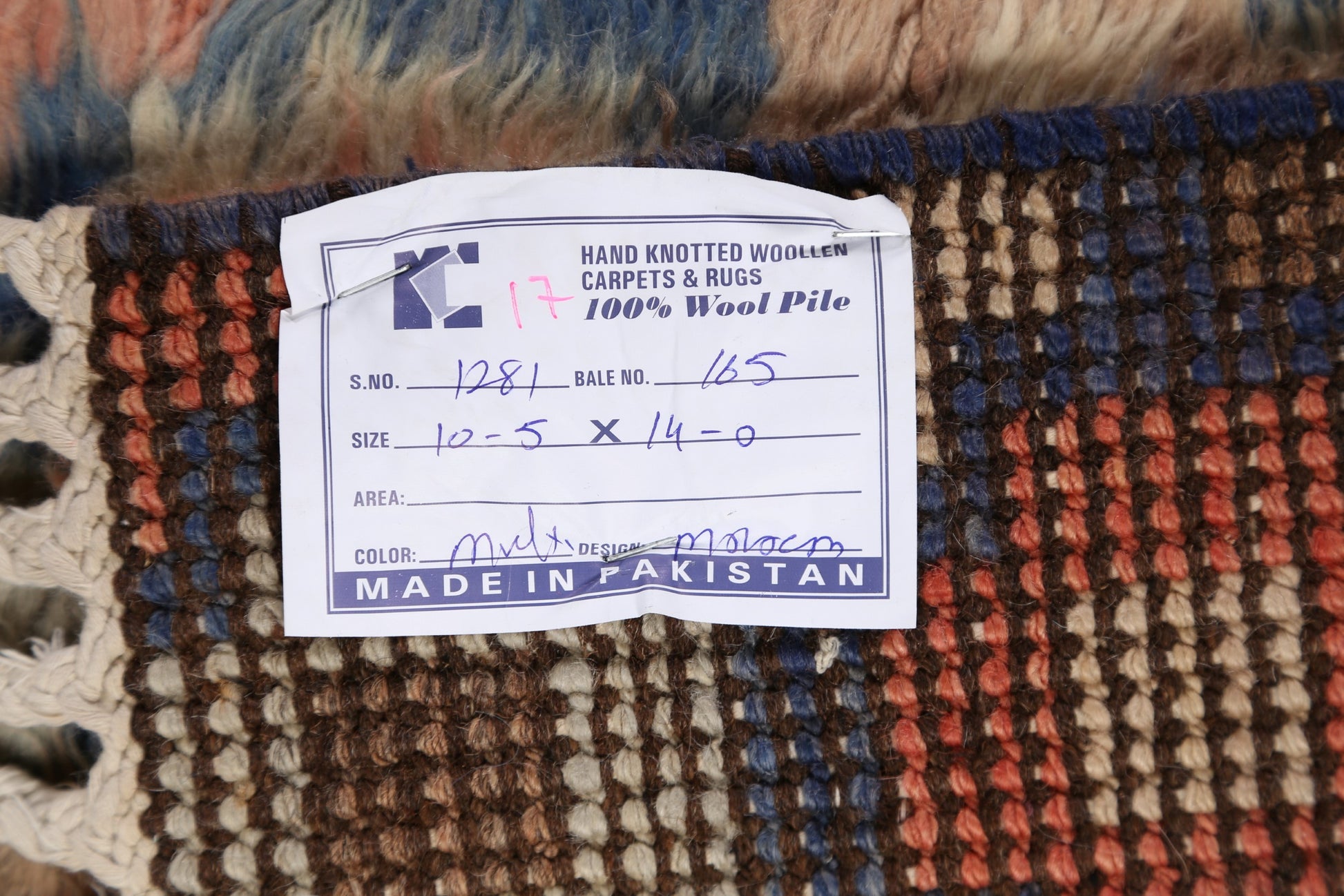 A Beautiful Genuine Pakistan Moroccan rug is Hand Knotted by skillful weavers in Pakistan with 100% Wool Material. This rug is in New, First Quality condition. dimensions are 14' 0'' X 10' 4'' in foot and 427 X 315 in centimeter. the primary color is Multi-Colored.