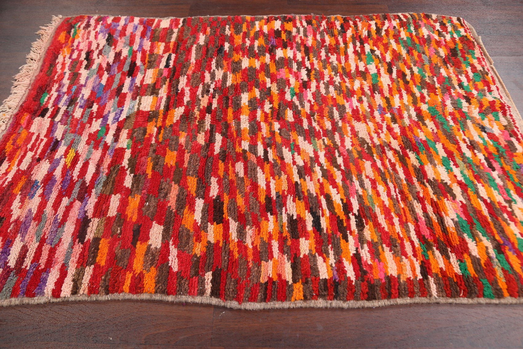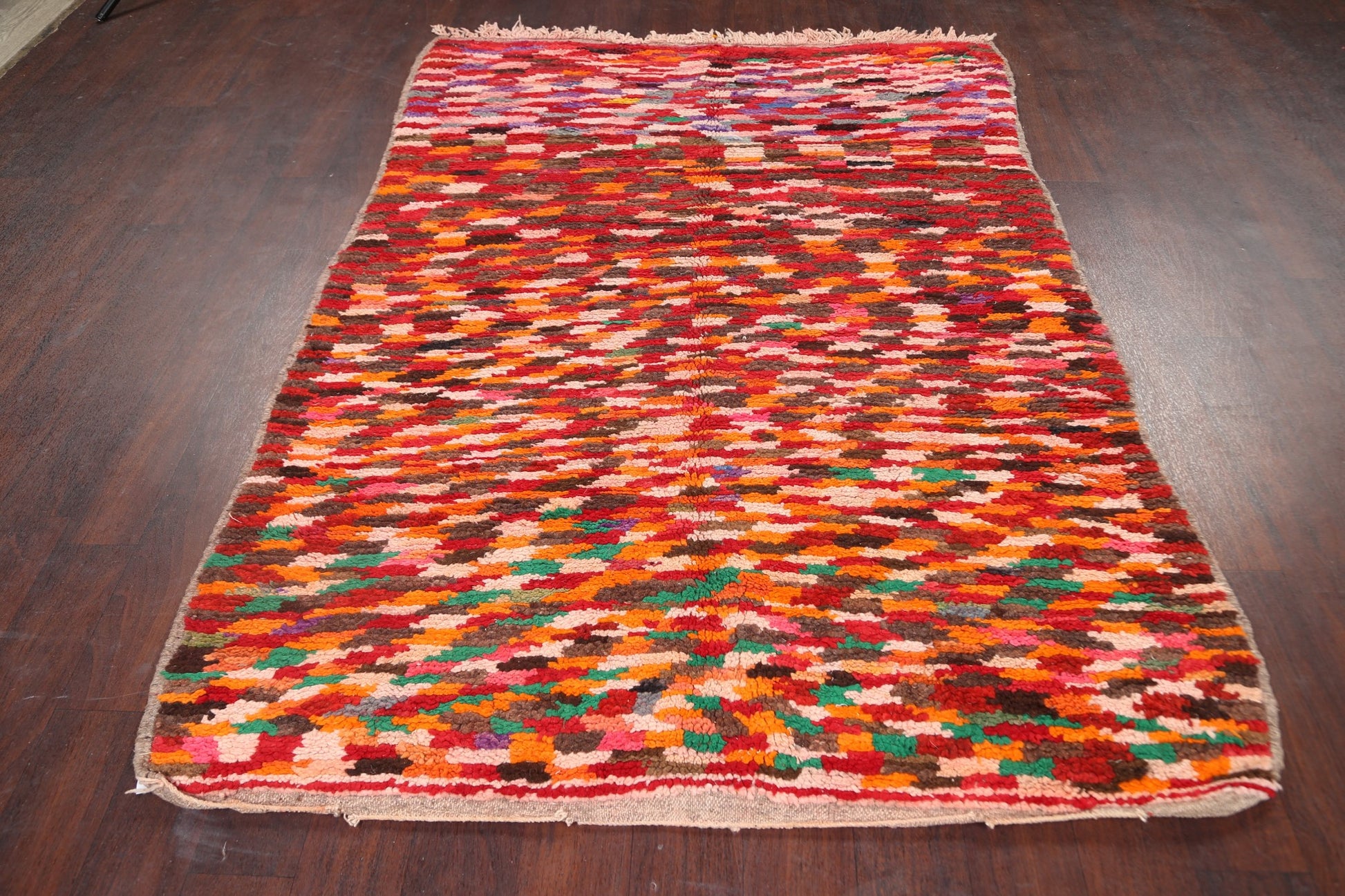 A Beautiful Genuine Morocco Moroccan rug is Hand Knotted by skillful weavers in Morocco with 100% Wool Material. This rug is in Very Good condition. dimensions are 6' 5'' X 4' 6'' in foot and 196 X 137 in centimeter. the primary color is Multi-Colored.