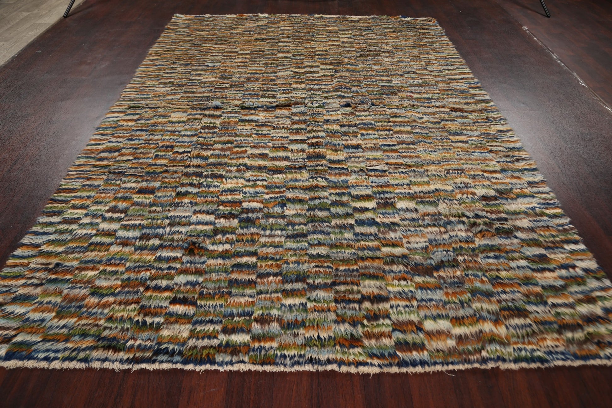 A Beautiful Genuine Pakistan Moroccan rug is Hand Knotted by skillful weavers in Pakistan with 100% Wool Material. This rug is in New, First Quality condition. dimensions are 9' 6'' X 6' 9'' in foot and 290 X 206 in centimeter. the primary color is Multi-Colored.