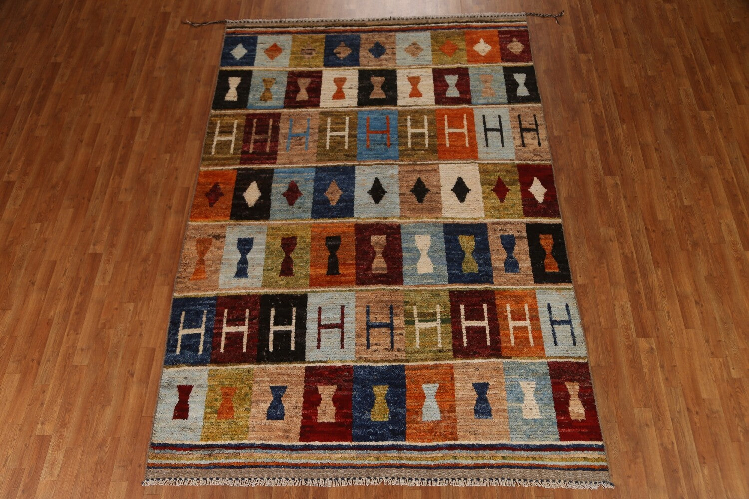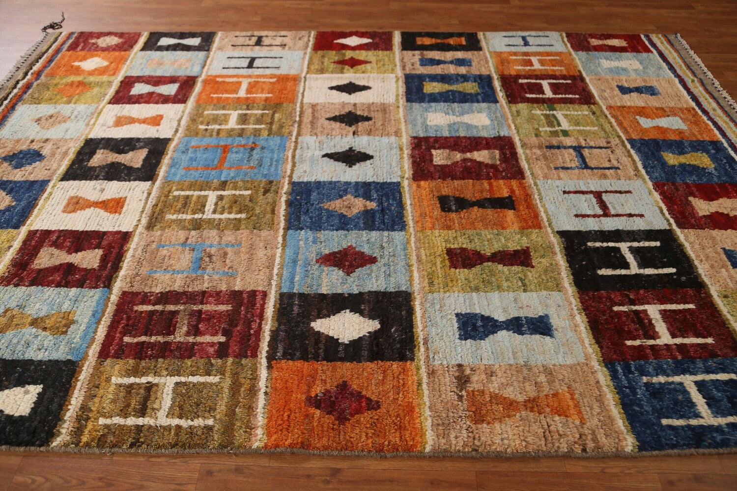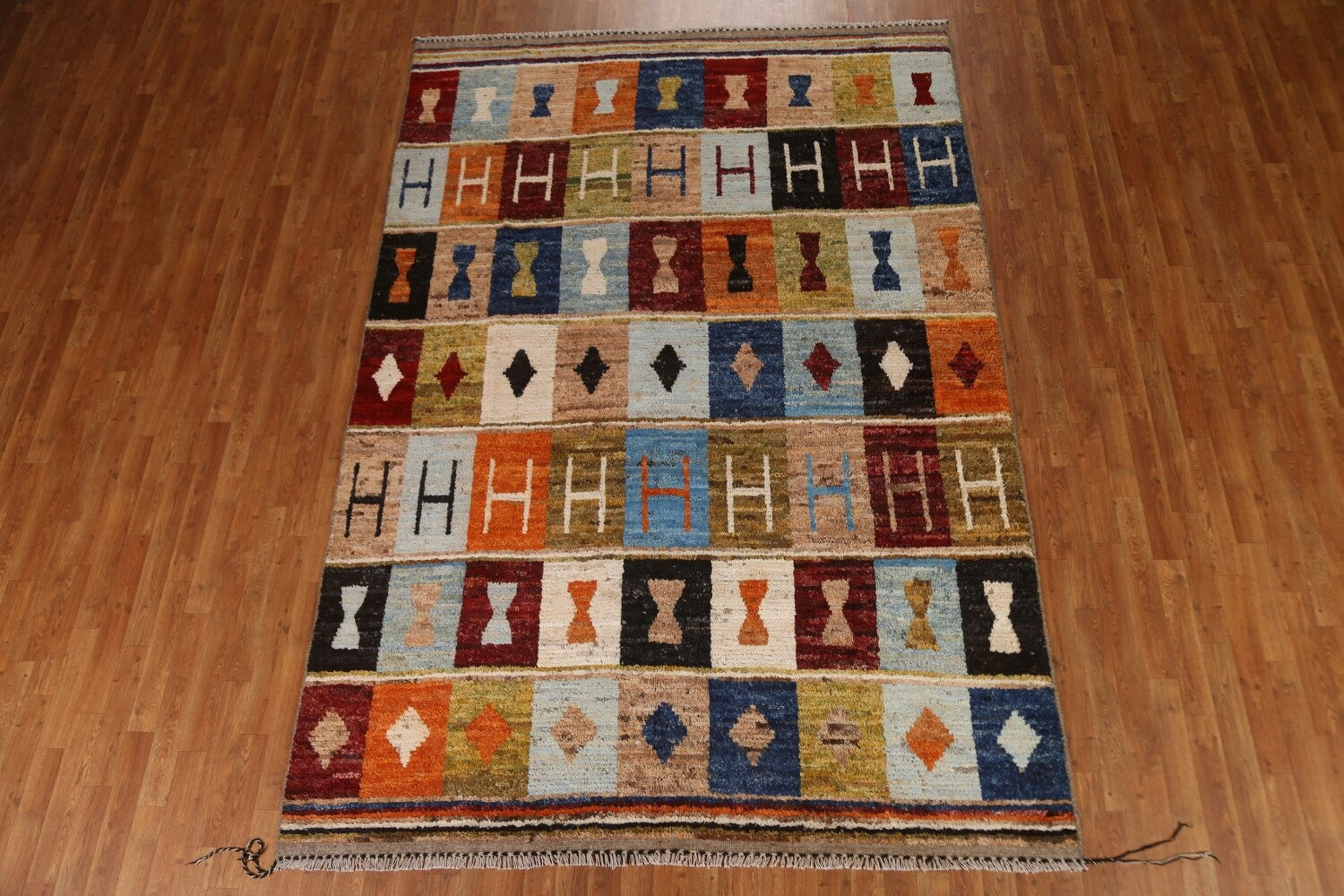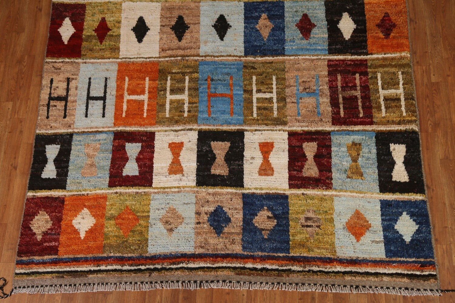 A Beautiful Genuine Pakistan Moroccan rug is Hand Knotted by skillful weavers in Pakistan with 100% Wool Material. This rug is in condition. dimensions are 10' 0'' X 6' 11'' in foot and 305 X 211 in centimeter. the primary color is Multi-Colored.